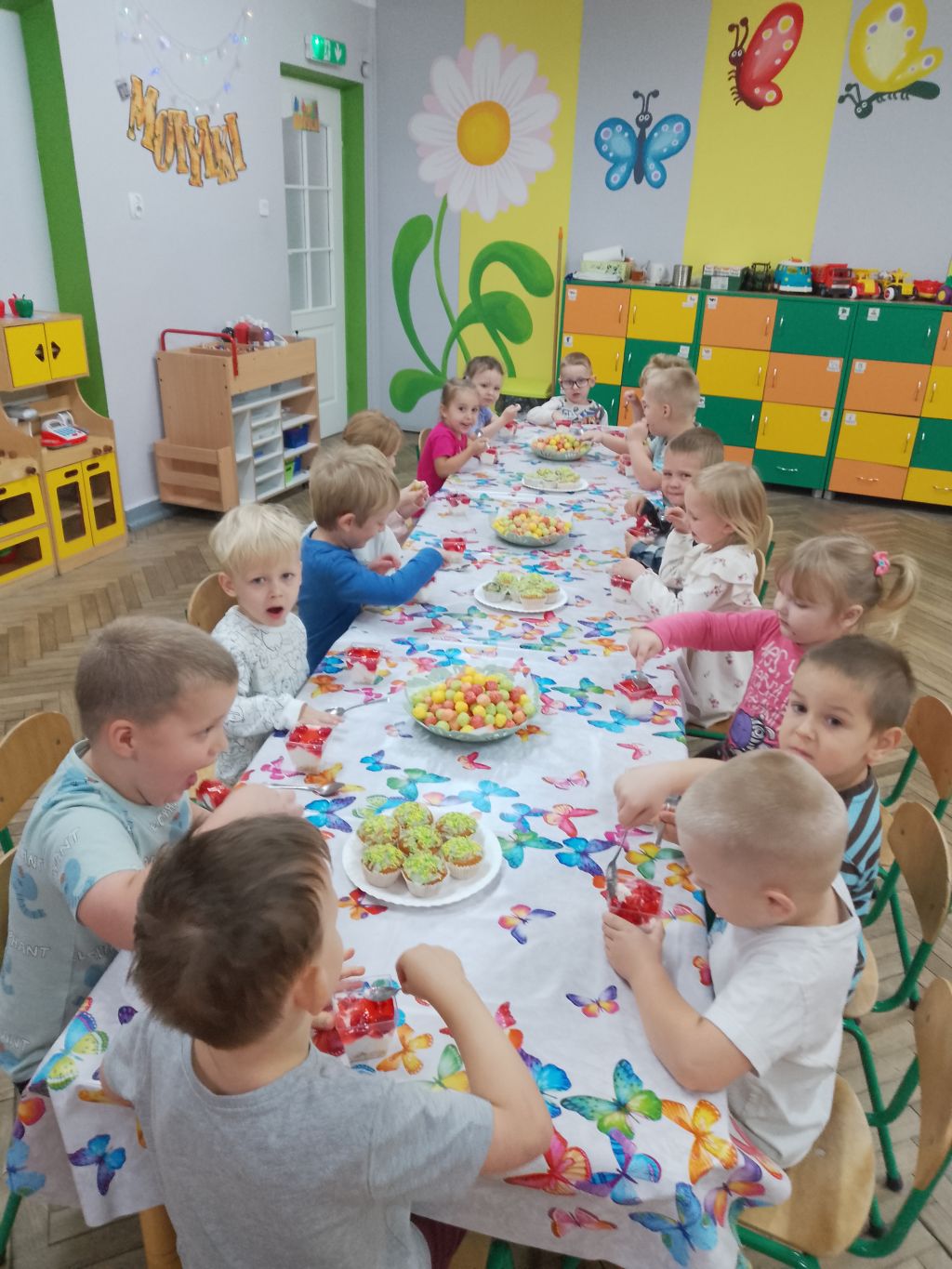 Dzień chłopców to dobra okazja do wspólnego świętowania. Dziewczynki złożyły kolegom życzenia i wręczyły drobne prezenty. Były też tańce, wspólne zabawy, oraz pamiątkowe zdjęcia. Na wszystkich czekał słodki poczęstunek, który sprawił dzieciom dużo radości. Dzień upłynął nam bardzo przyjemnie.