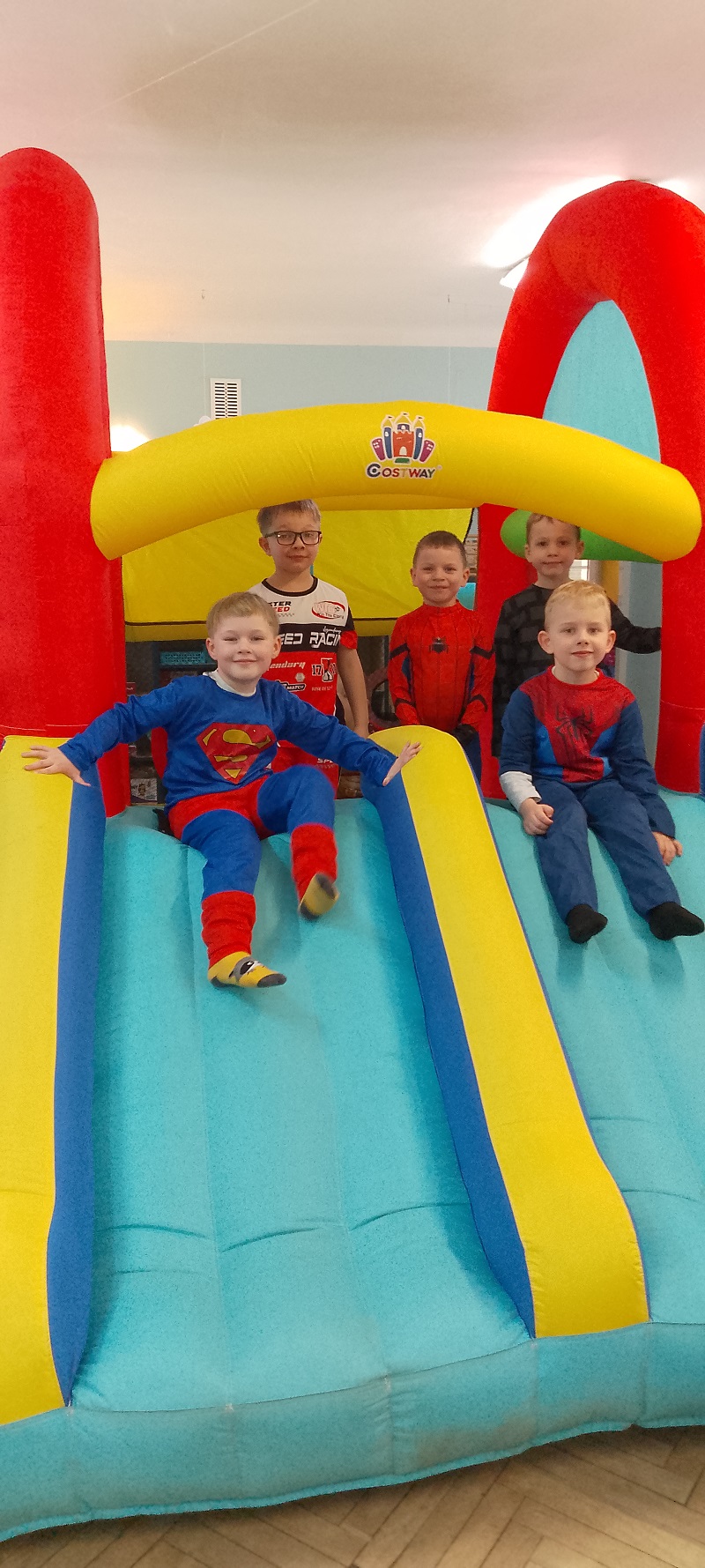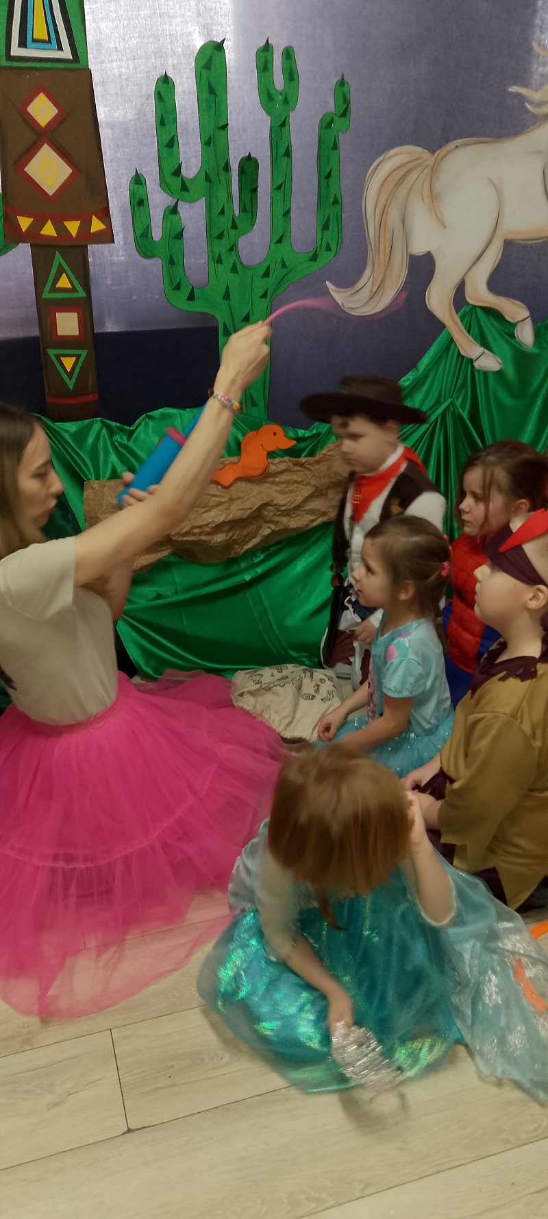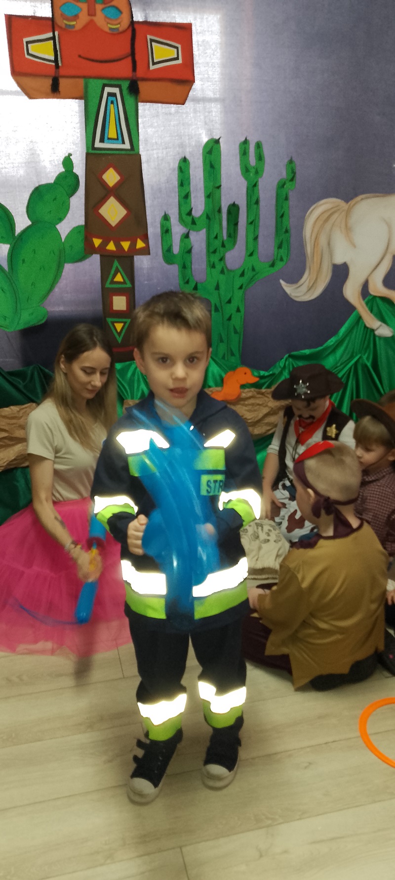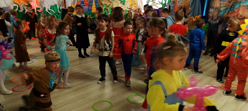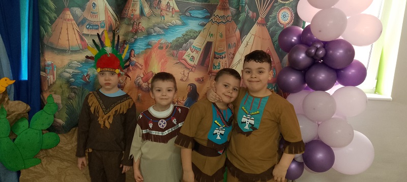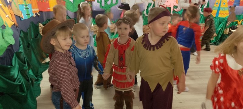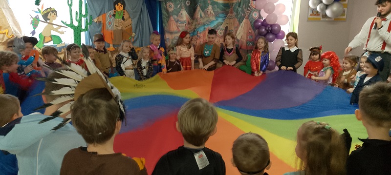 17.02.2026 r. odbył się w naszym przedszkolu Bal Karnawałowy pod hasłem "W wiosce indiańskiej". Przedszkolaki z radością prezentowały pomysłowe, balowe stroje. Na pięknie udekorowanej sali w stylu indiańskim, pojawiły się indianie, spidermany, księżniczki, śnieżynki, wróżki, piraci, policjanci - nie sposób ich wszystkich wymienić. Tańce przy muzyce i konkursy dostarczyły dzieciom wielu niezapomnianych wrażeń i emocji. Jedną z atrakcji dla przedszkolaków były zabawy z animatorami z Leo-Marketu, robienie tatuaży, dmuchana zjeżdżalnia. W trakcie balu był również czas na pyszny poczęstunek.