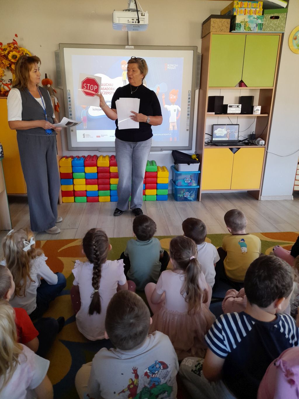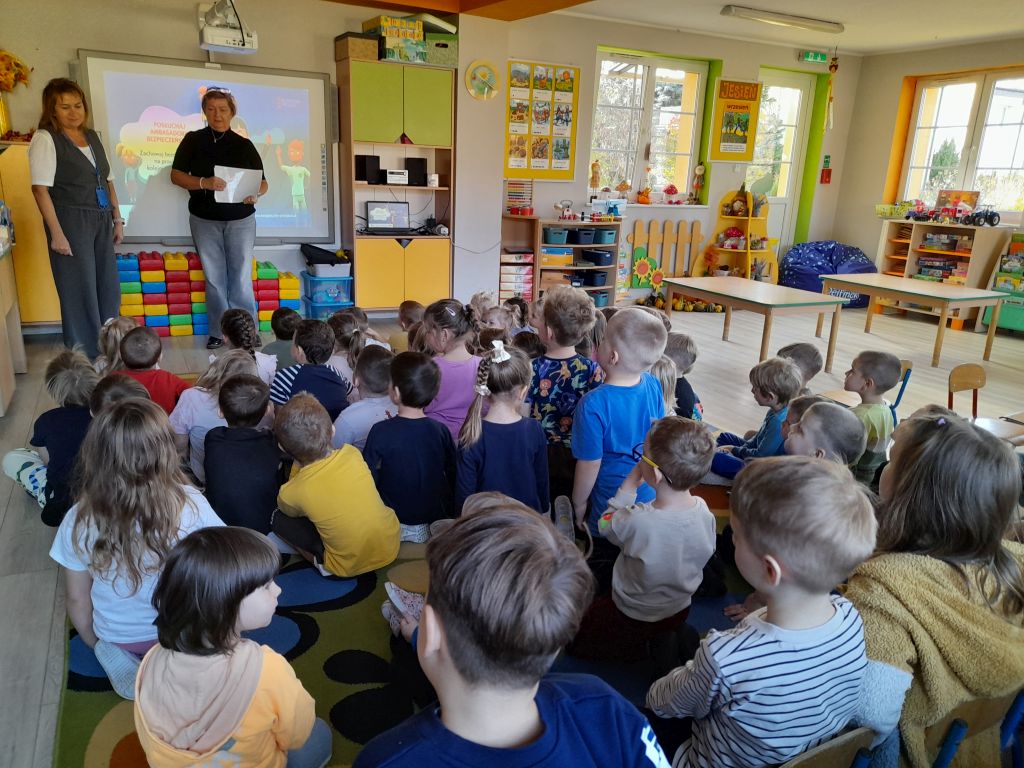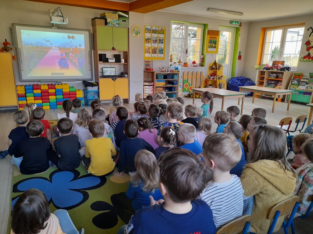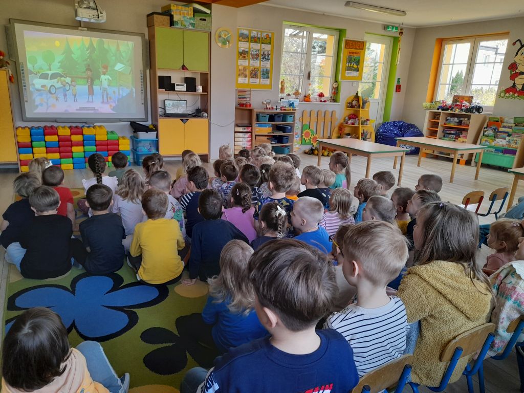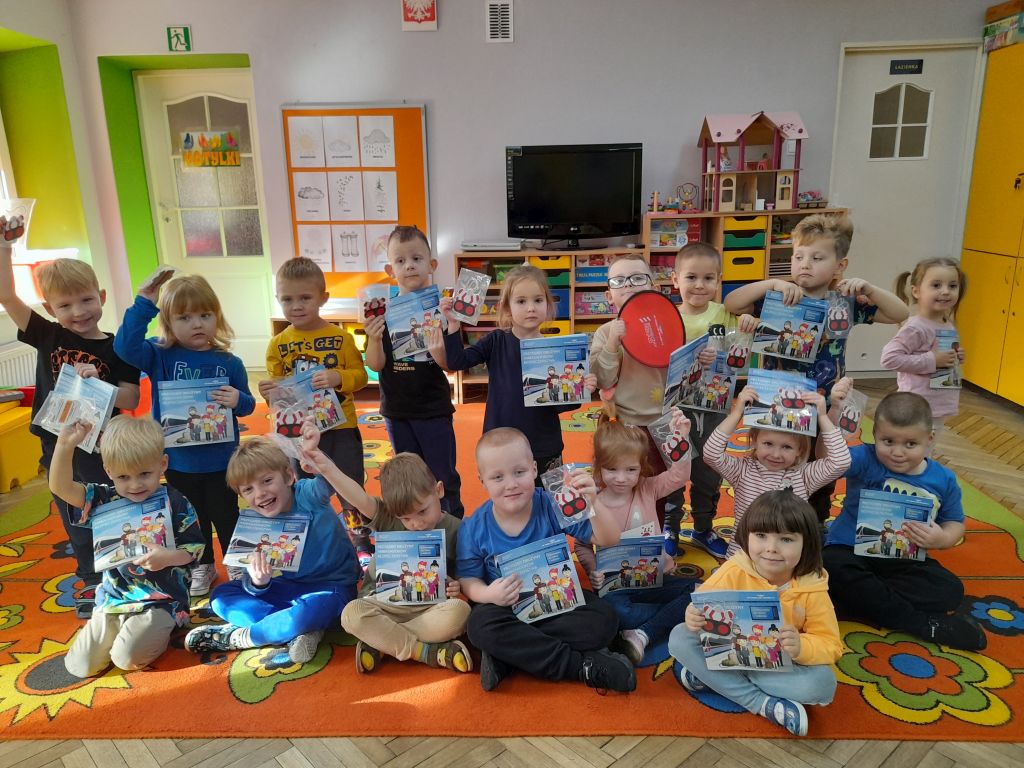 Dnia 29.10.2025 r. w naszym przedszkolu odbyło się spotkanie z przedstawicielkami PKP Polskie Linie Kolejowe S.A. w ramach kampanii "Bezpieczny przejazd". Przedszkolaki obejrzały film edukacyjny pt. "Podróże z Ambasadorką Bezpieczeństwa". Poznały podstawowe zasady przekraczania przejazdów kolejowo-drogowych, znaki znajdujące się przy przejazdach. Na koniec zajęć otrzymały zawieszki i kolorowanki edukacyjne.