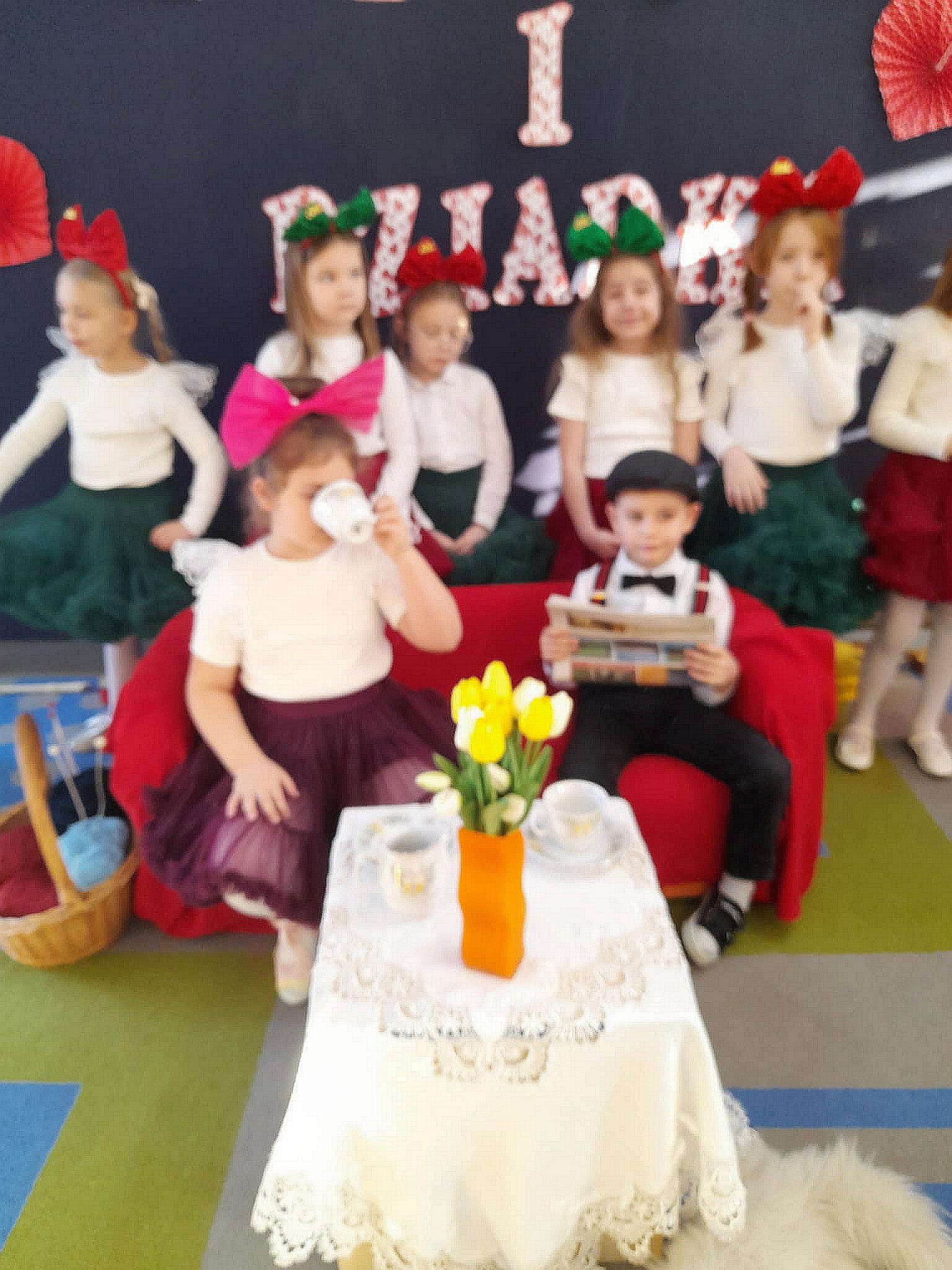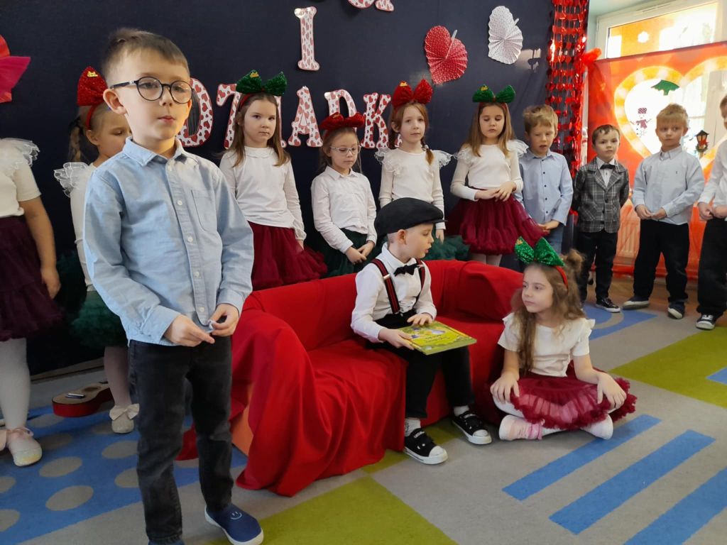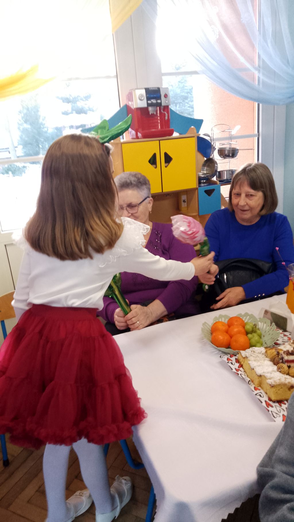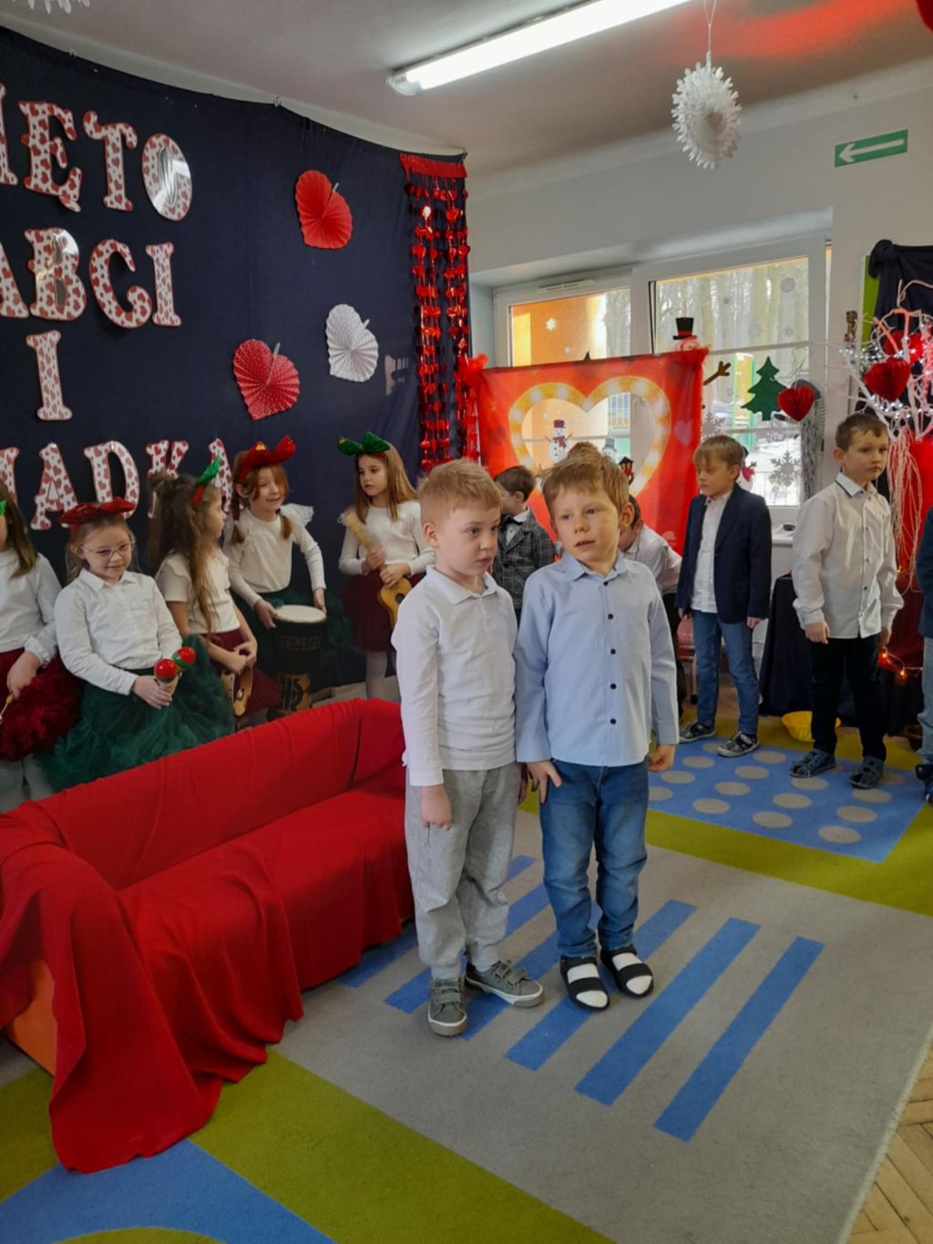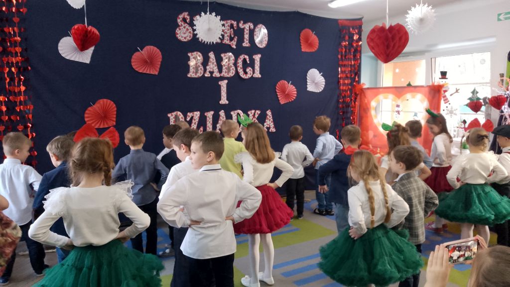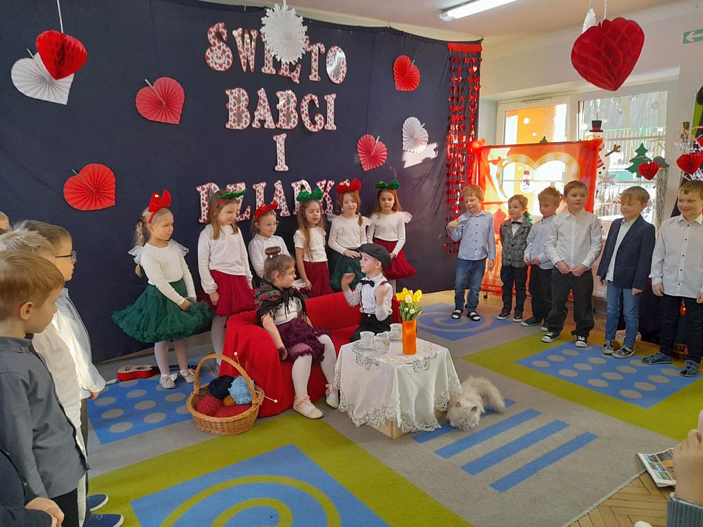 Dnia 22.02.2026 r. odbyła się w naszej grupie uroczystość z okazji Dnia Babci i Dziadka. Dzieci przygotowały dla zaproszonych gości program artystyczny, podczas którego śpiewały piosenki, recytowały wiersze, tańczyły Jive, przedstawiły inscenizację "Prezenty dla Babci i Dziadka” oraz instrumentację piosenki "Koncert dla Babci i dziadka". Wnuczęta złożyły również życzenia i wręczyły upominki. Babcie i Dziadkowie ze wzruszeniem patrzyli na swoje wnuki i brawami dziękowali za występy. Na koniec wszyscy mogli świętować przy wspólnym poczęstunku.