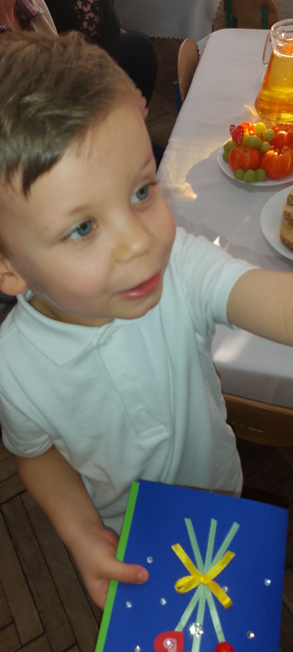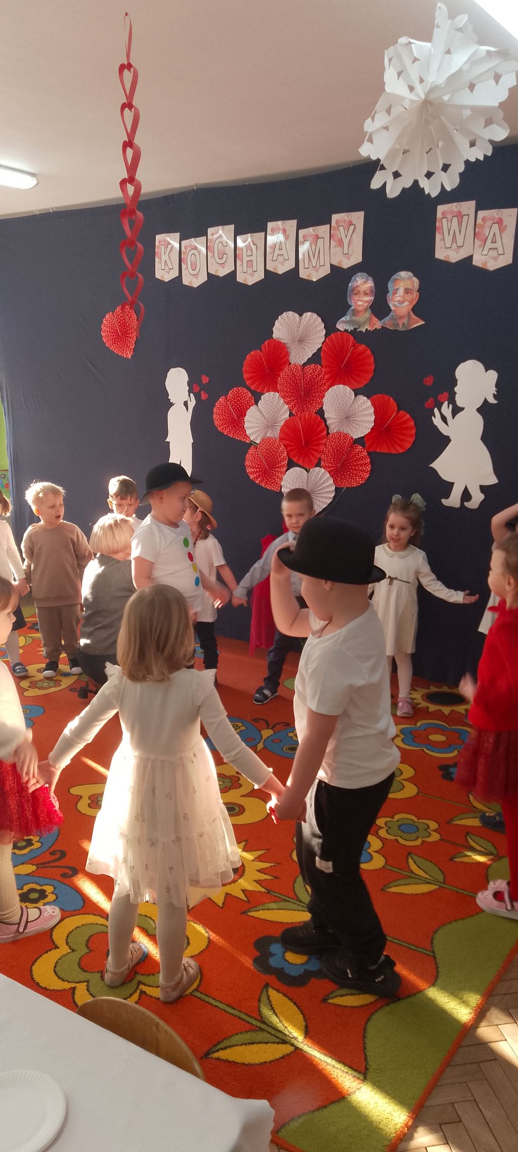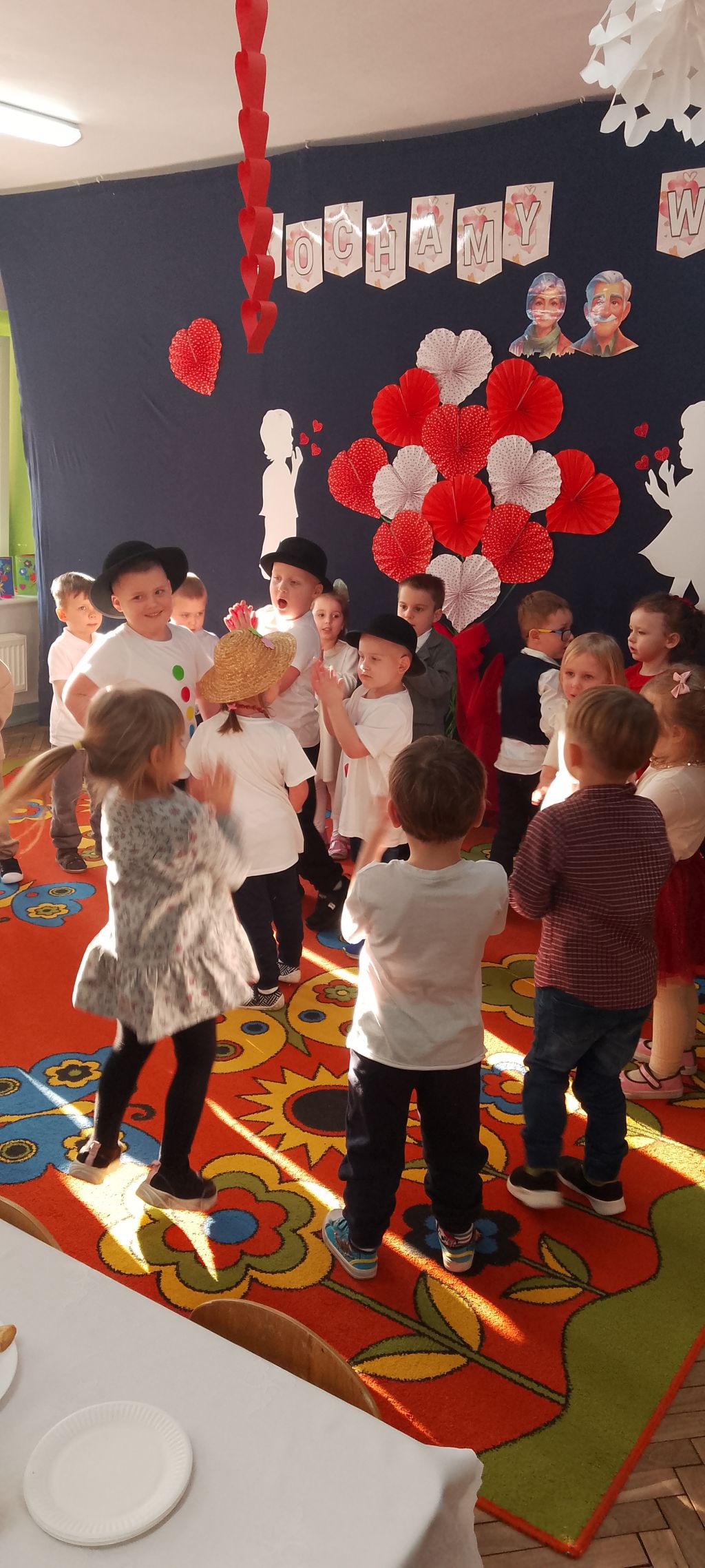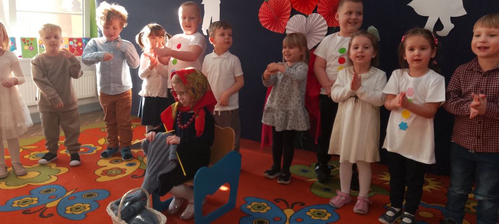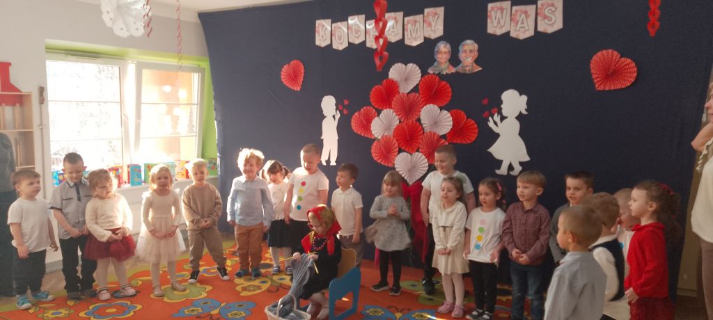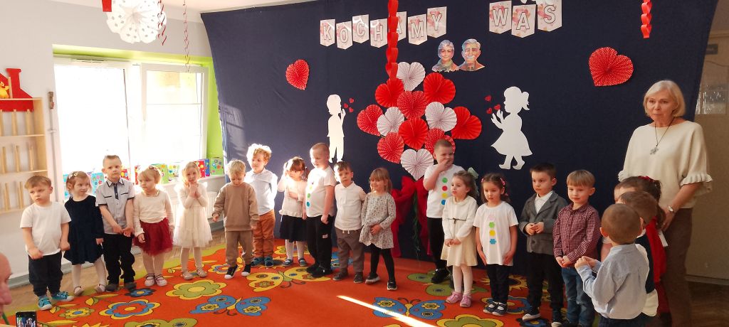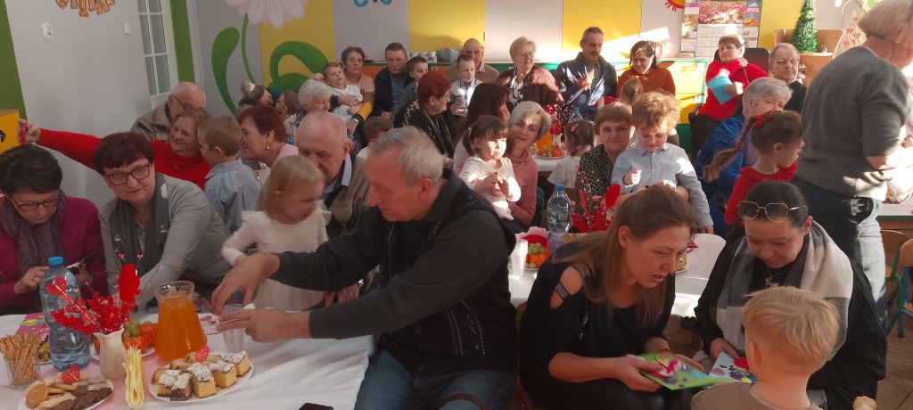Tym wierszykiem dzieci z grupy "Motylków" rozpoczęły występ dla swoich ukochanych Babć i Dziadków. W przygotowanym na tę uroczystość programie były życzenia, wierszyki, piosenki i tańce, które zaproszeni goście obserwowali z zaciekawieniem i wzruszeniem. Następnie przedszkolaki wręczyły babciom i dziadkom przygotowane przez siebie upominki, złożyły życzenia i zaprosiły ich na wspólny poczęstunek. Wspólnie spędzone chwile na długo pozostaną w pamięci dzieci i ich dziadków.