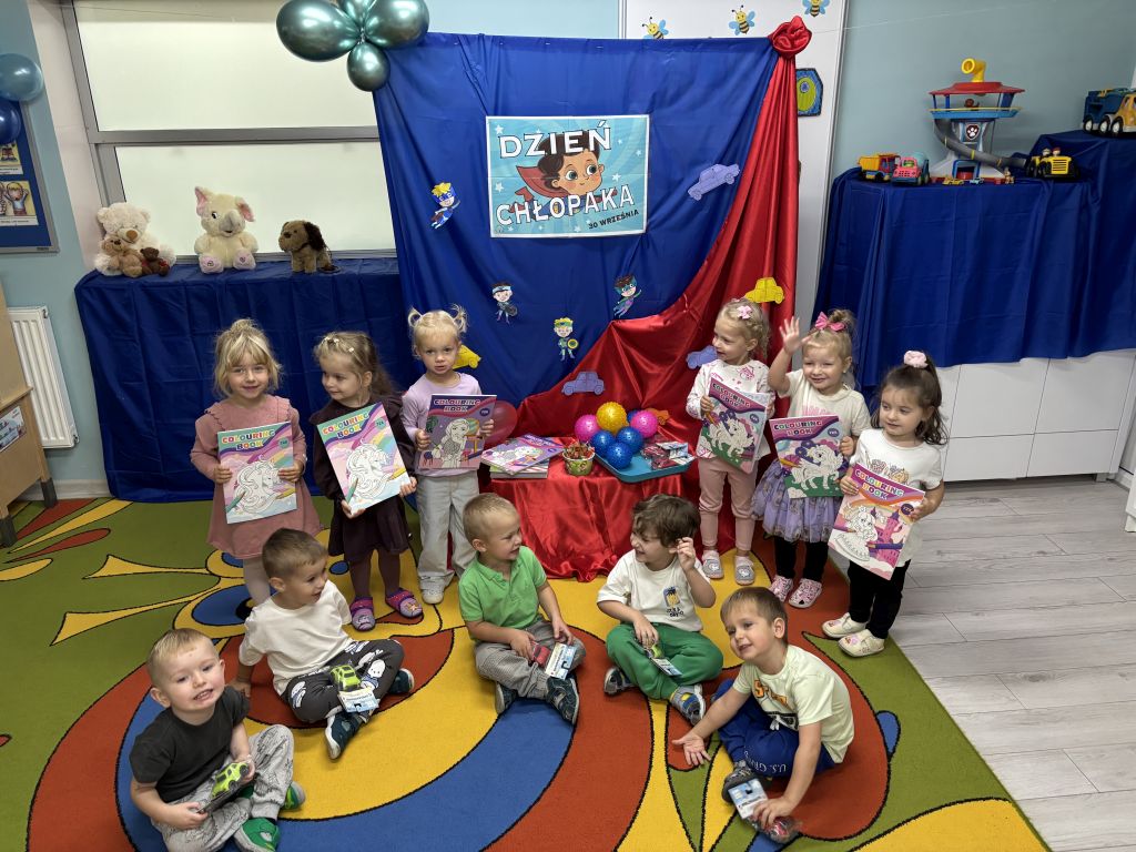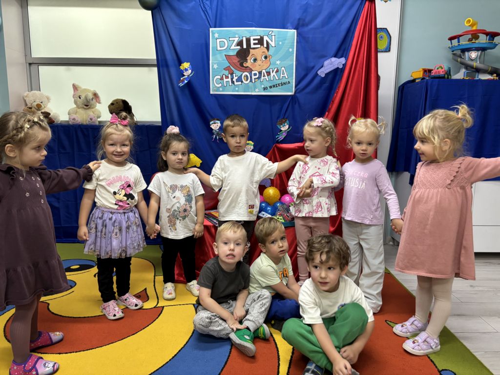 W dniu 30 września w naszej grupie świętowaliśmy Dzień Chłopaka. Nie obyło się bez życzeń oraz prezentów dla naszych najmłodszych dżentelmenów. Atrakcji tego dnia nie brakowało - były zabawy ruchowe i taneczne na dywanie. Dzieci bawiły się znakomicie! Koniec imprezy zwieńczył poczęstunek w stylu psiego patrolu. Obchody Dnia Chłopaka w naszym przedszkolu stały się wspaniałą okazją do integracji grupy oraz wzmocnienia więzi między dziećmi.