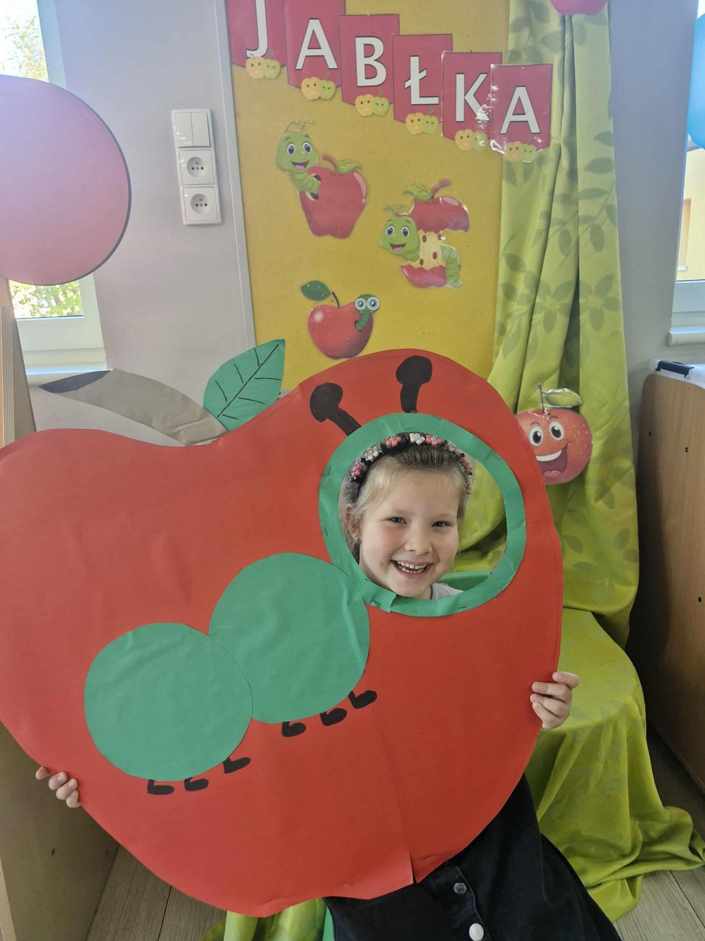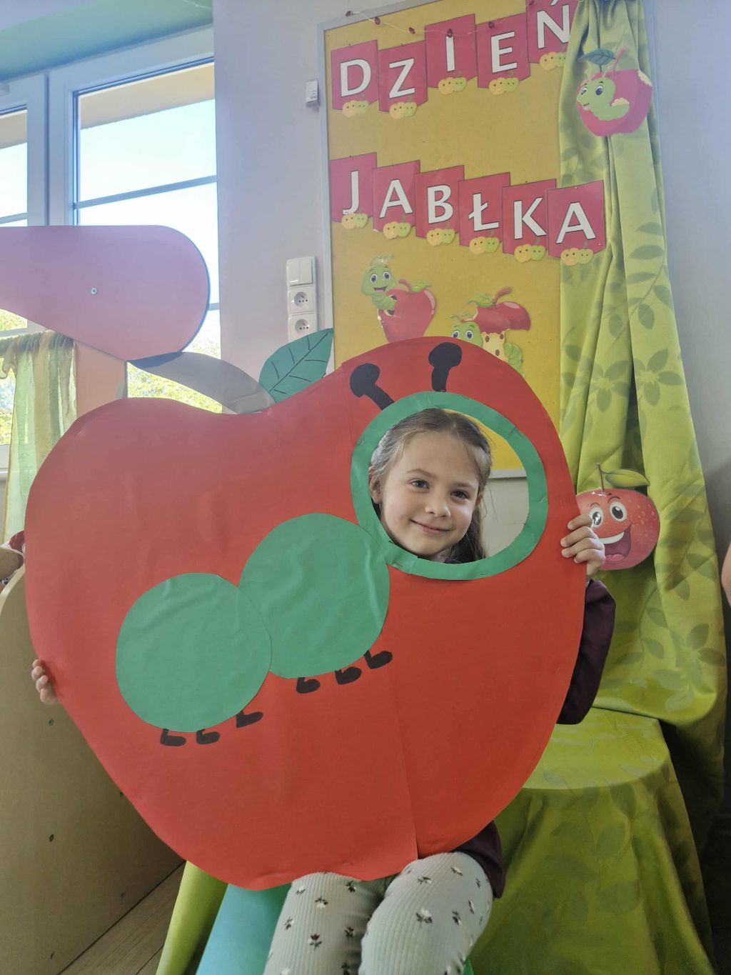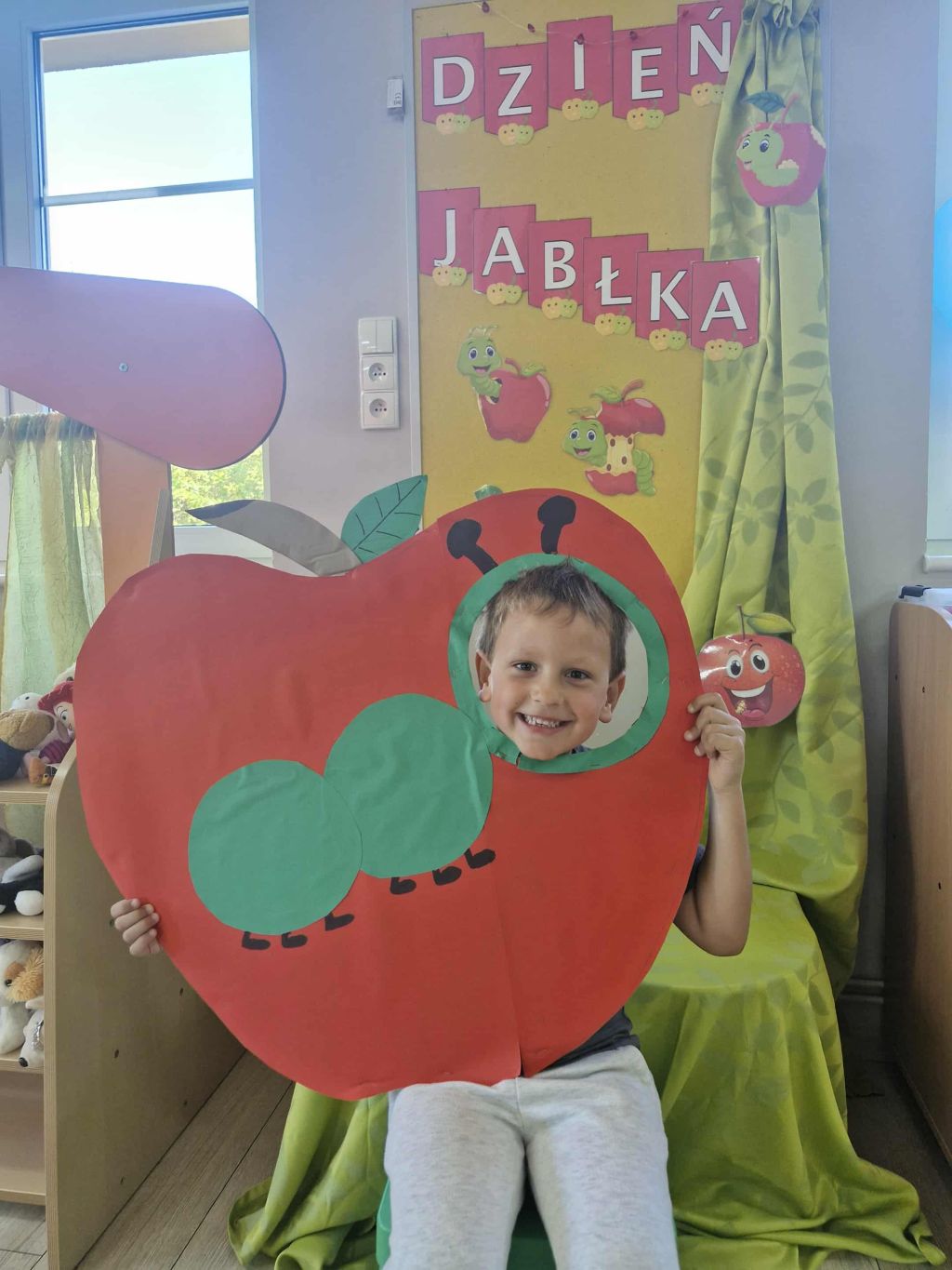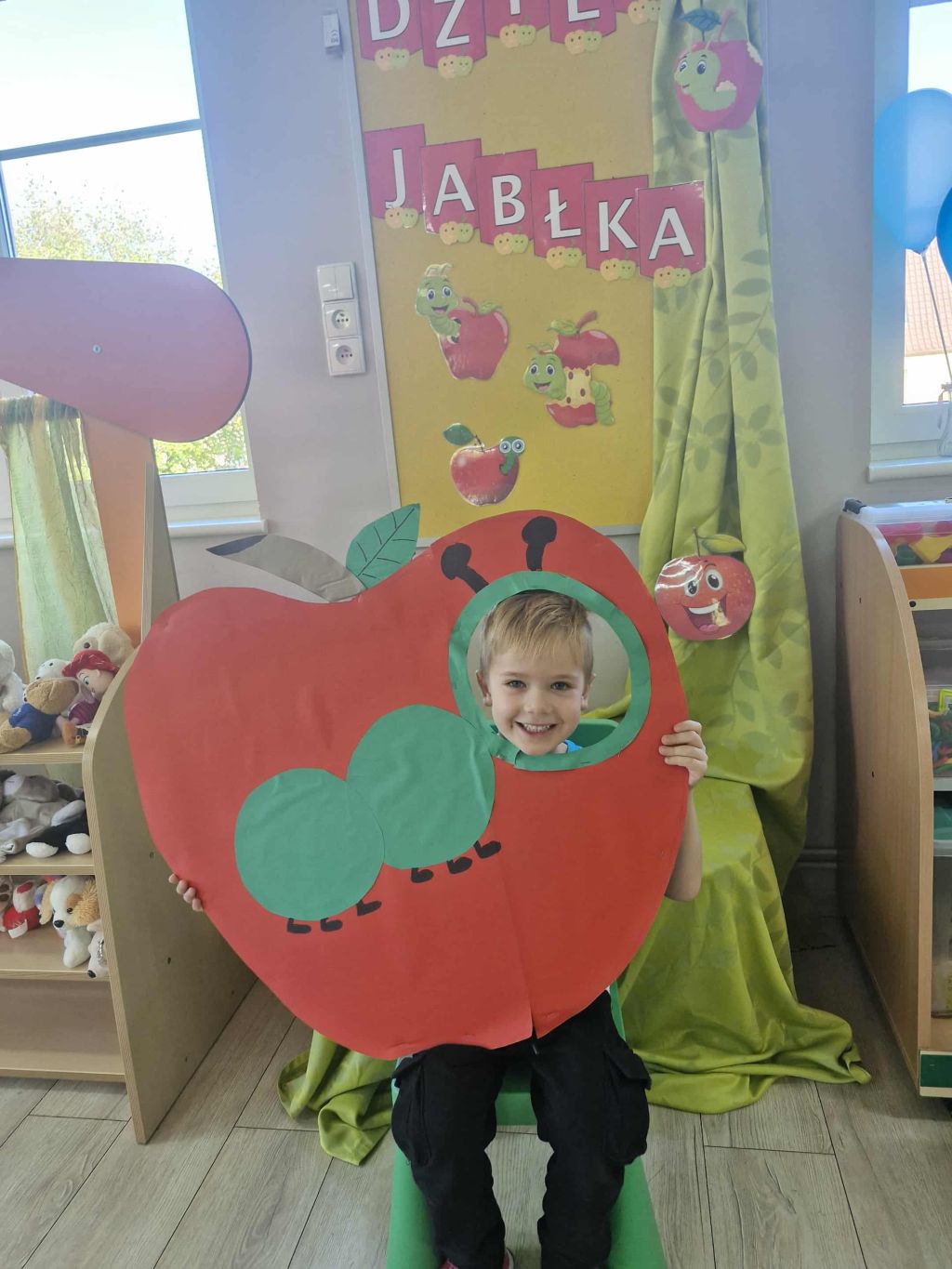 Jabłko jest jednym z najpopularniejszych owoców w naszym kraju i na świecie. Co czwarte jabłko w Europie pochodzi właśnie z Polski. Celem zajęć było zachęcenie dzieci do spożywania jabłek i ich przetworów jako źródła witamin. Obchody tego wyjątkowego dnia rozpoczęliśmy od rozmów na temat jego wyglądu, kolorów, wielkości, kształtu, smaku, różnych odmian, dlaczego warto je jeść, pod jaką postacią. Dzieci obejrzały film edukacyjny oraz bajkę „Jabłuszko”, wzięły udział w zabawie „slalom z jabłkiem, Przeliczały i segregowały jabłka ze względu na ich kolor oraz stworzyły zbiorowe prace plastyczne. Na koniec dnia nie mogło zabraknąć degustacji jabłek oraz oczywiście pamiątkowych zdjęć w foto – budce.