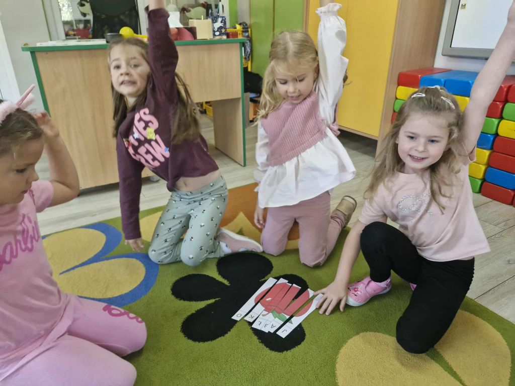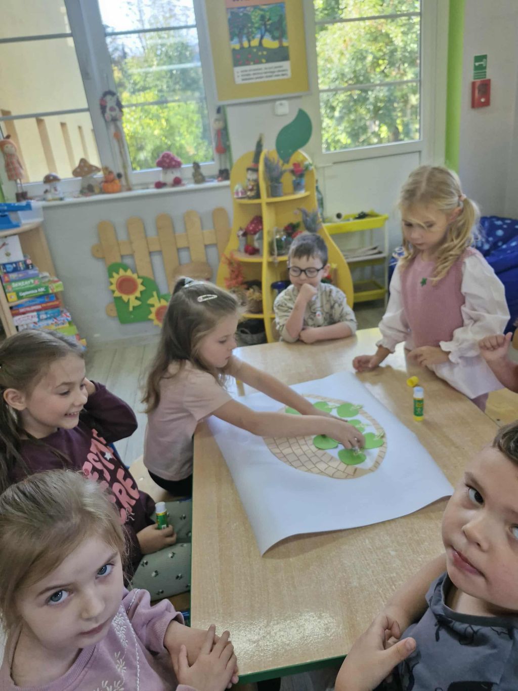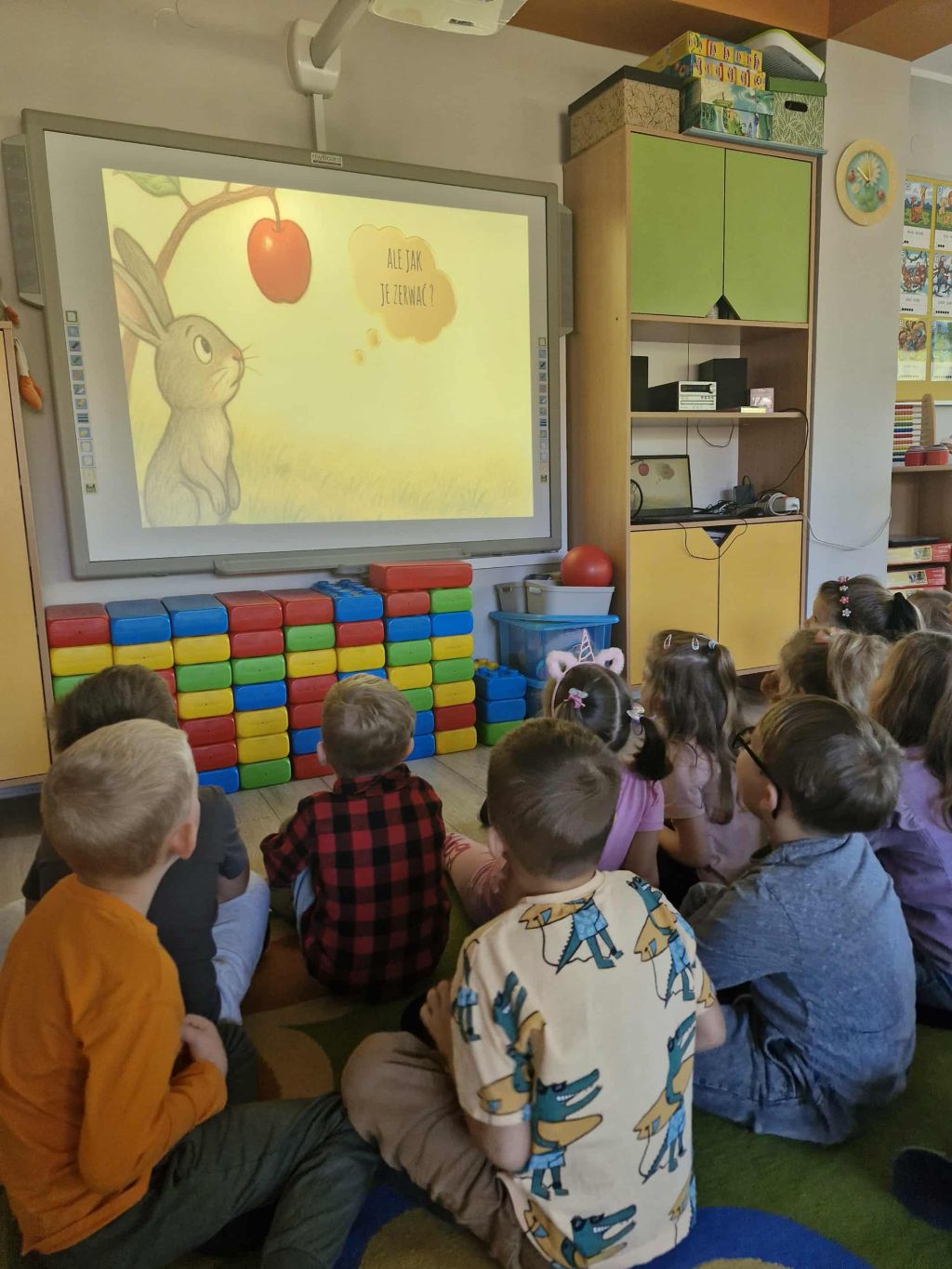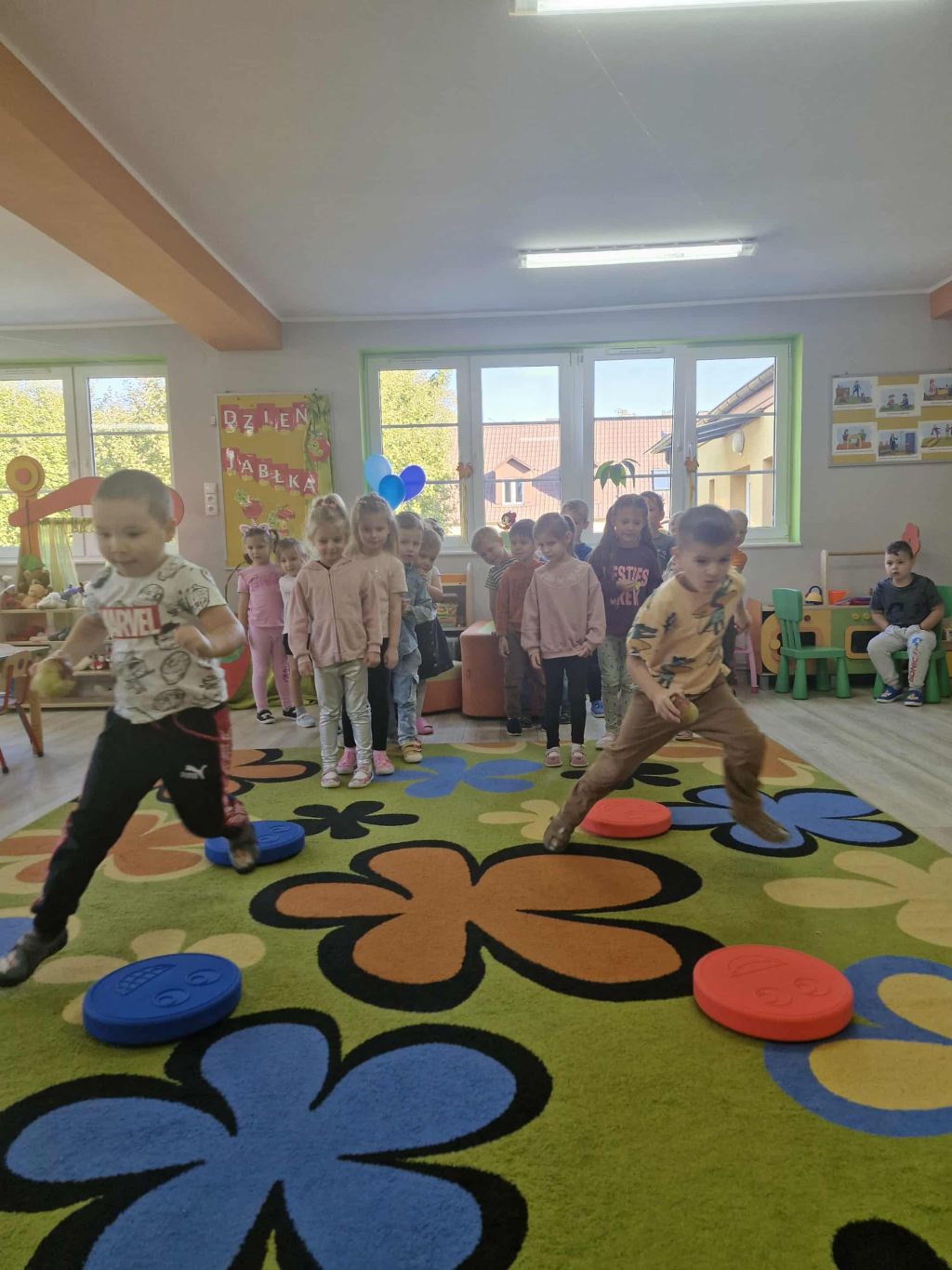 Jabłko jest jednym z najpopularniejszych owoców w naszym kraju i na świecie. Co czwarte jabłko w Europie pochodzi właśnie z Polski. Celem zajęć było zachęcenie dzieci do spożywania jabłek i ich przetworów jako źródła witamin. Obchody tego wyjątkowego dnia rozpoczęliśmy od rozmów na temat jego wyglądu, kolorów, wielkości, kształtu, smaku, różnych odmian, dlaczego warto je jeść, pod jaką postacią. Dzieci obejrzały film edukacyjny oraz bajkę „Jabłuszko”, wzięły udział w zabawie „slalom z jabłkiem, Przeliczały i segregowały jabłka ze względu na ich kolor oraz stworzyły zbiorowe prace plastyczne. Na koniec dnia nie mogło zabraknąć degustacji jabłek oraz oczywiście pamiątkowych zdjęć w foto – budce.