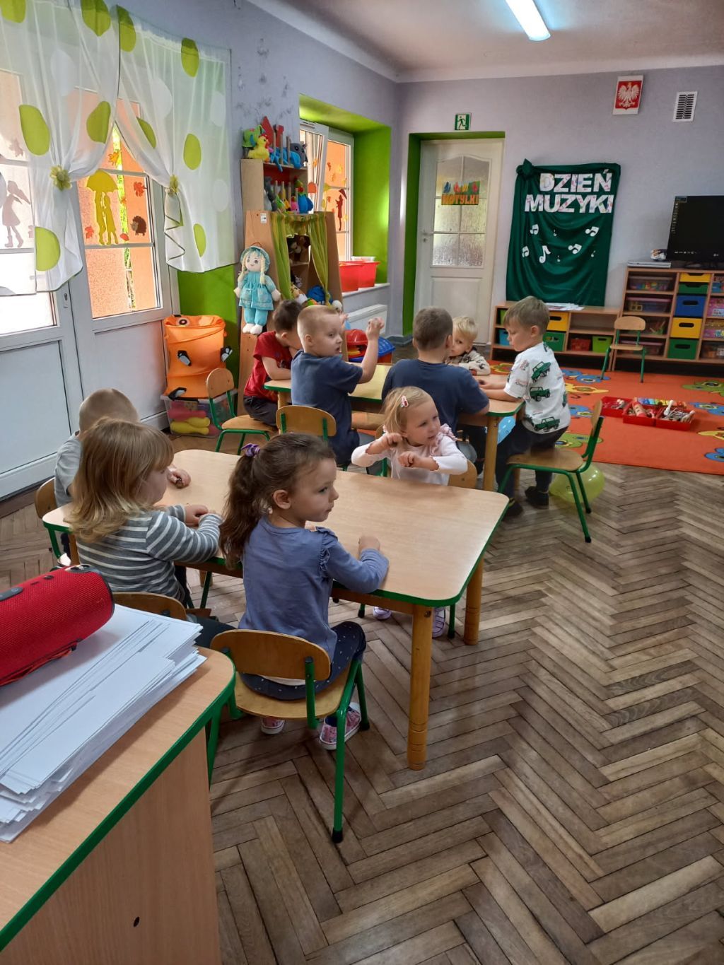 1.10.2025 obchodziliśmy w przedszkolu Dzień Muzyki. Dzieci miały możliwość poznać różnorodne instrumenty, doświadczyć radości wspólnego muzykowania oraz rozwijać swoje umiejętności rytmiczne i słuch muzyczny. Na koniec dnia wybraliśmy się pod Szkołę Muzyczną w Kutnie i wykonaliśmy pamiątkowe zdjęcie.