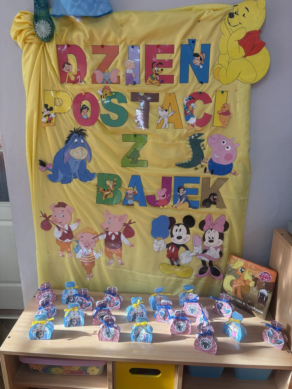 5 listopada obchodziliśmy Dzień Postaci z Bajek. Z tej okazji chętne dzieci przebrały się za ulubione postacie z bajek. W tym dniu rozwiązywaliśmy zagadki dotyczące bajek. Graliśmy w gry na dywanie, słuchaliśmy bajki czytanej przez nauczycielkę. Wykonaliśmy pracę plastyczną, a na koniec dostaliśmy słodką przekąskę. Ten dzień był pełen uśmiechu.