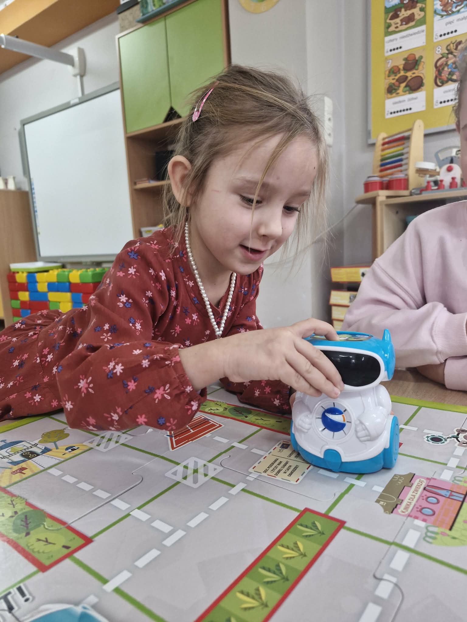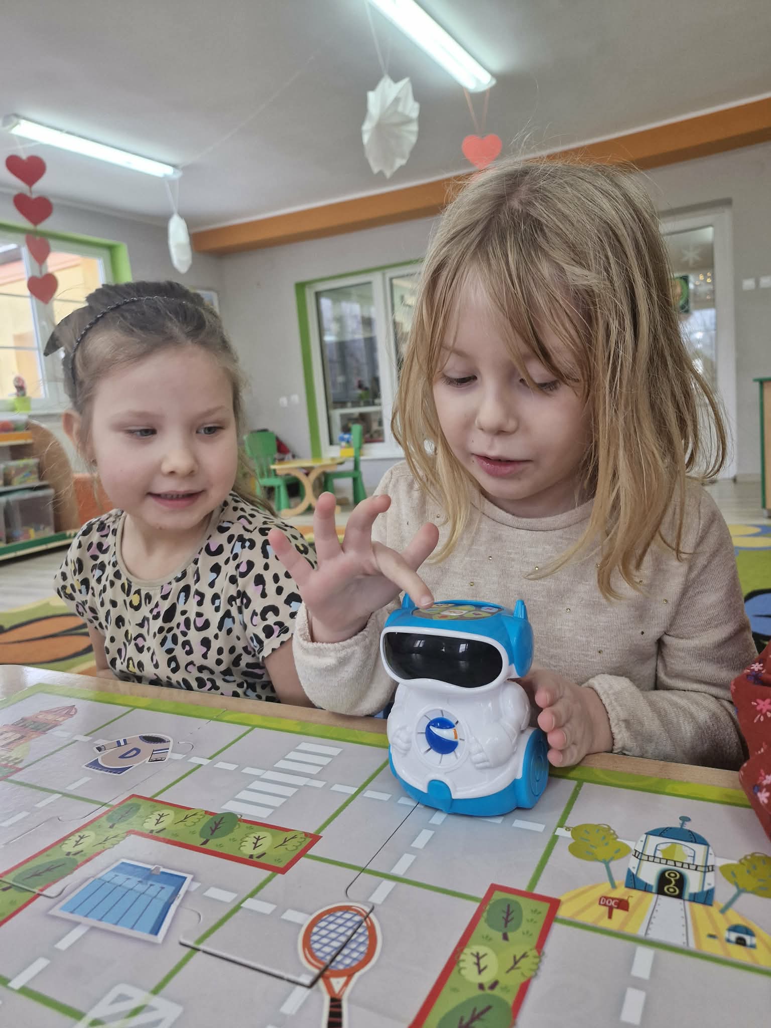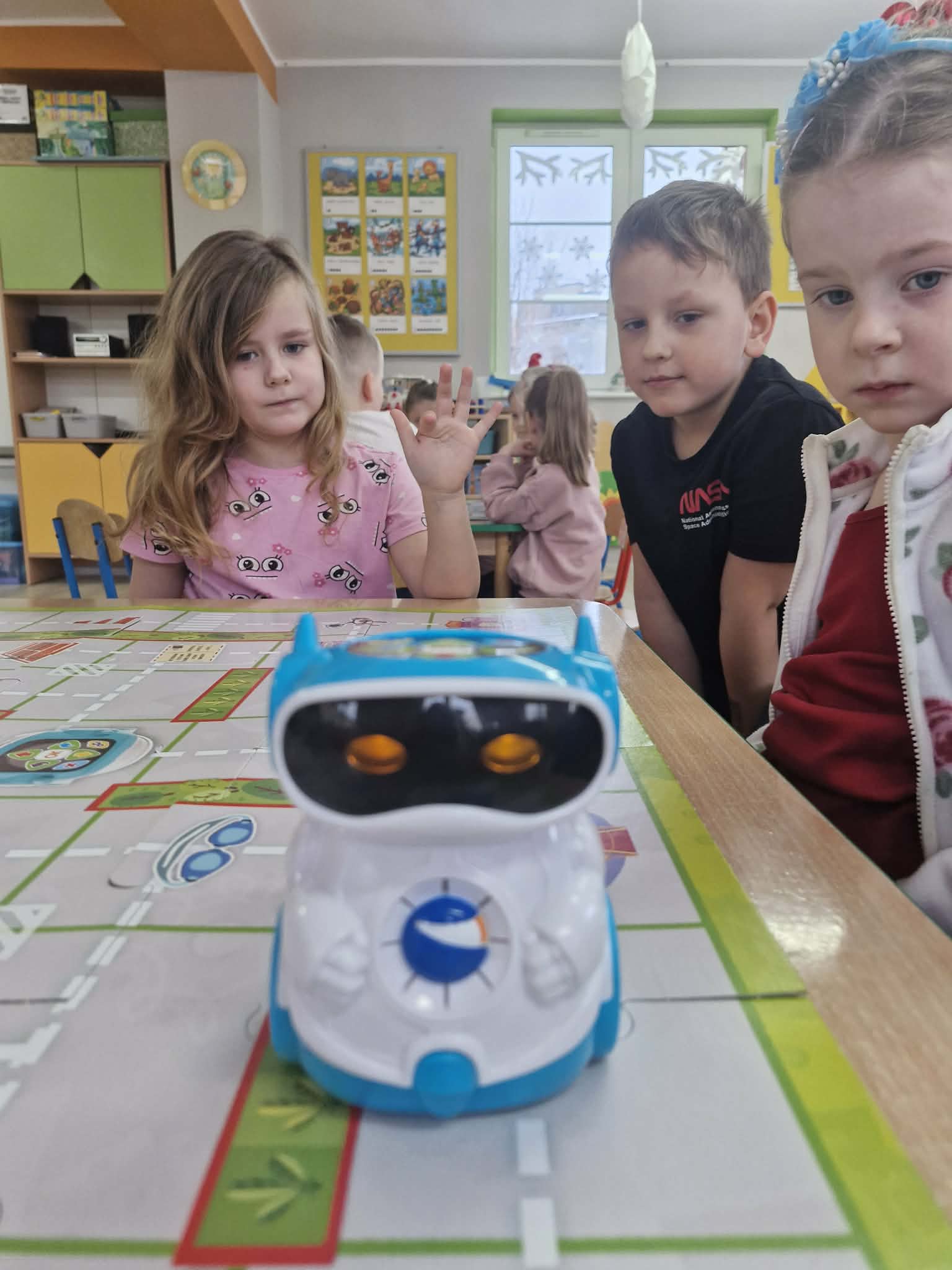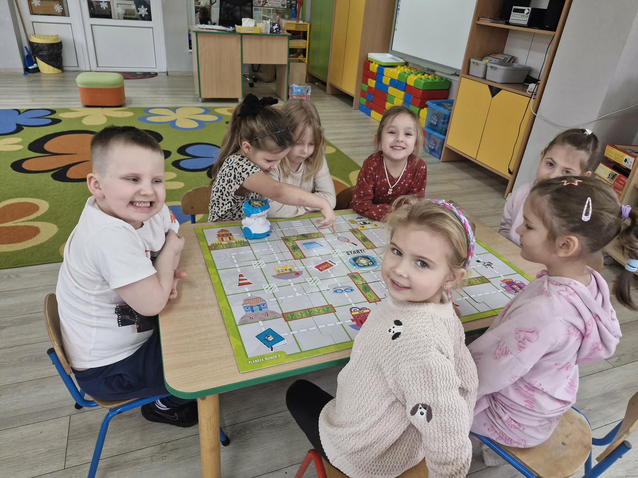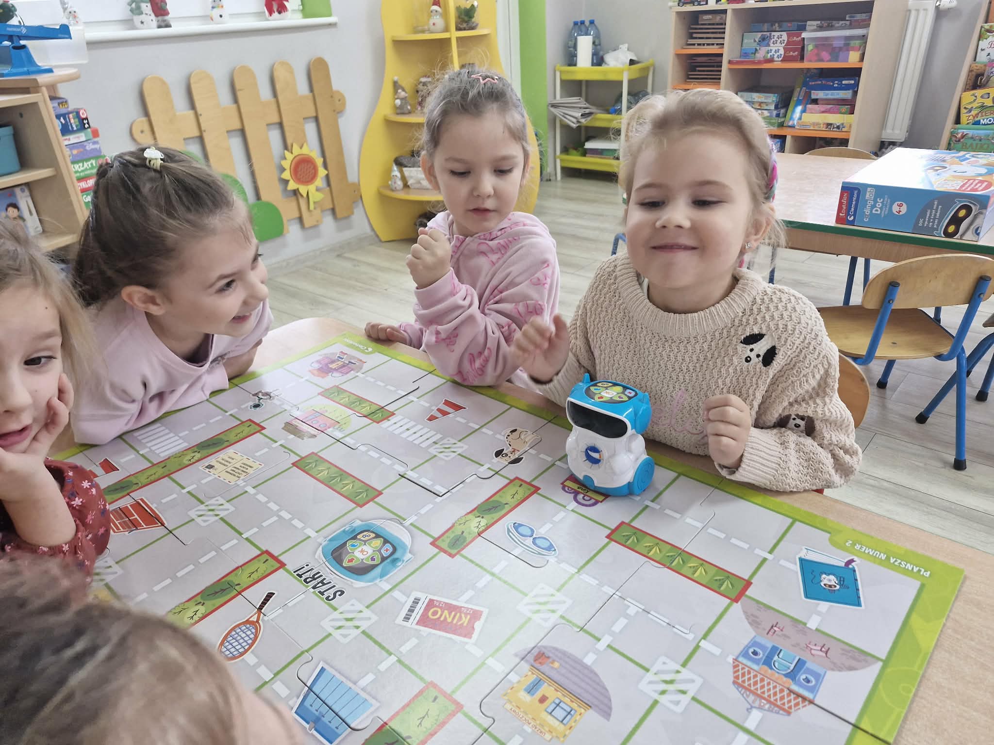 W styczniu dzieci z grupy "Biedronek" poznały działanie mówiących robotów do nauki kodowania Doc. Przedszkolaki programowały roboty, przemieszczały je po planszy używając do tego specjalnych przycisków oraz kodowały robota zgodnie z kodem podanym na specjalnych kartach.