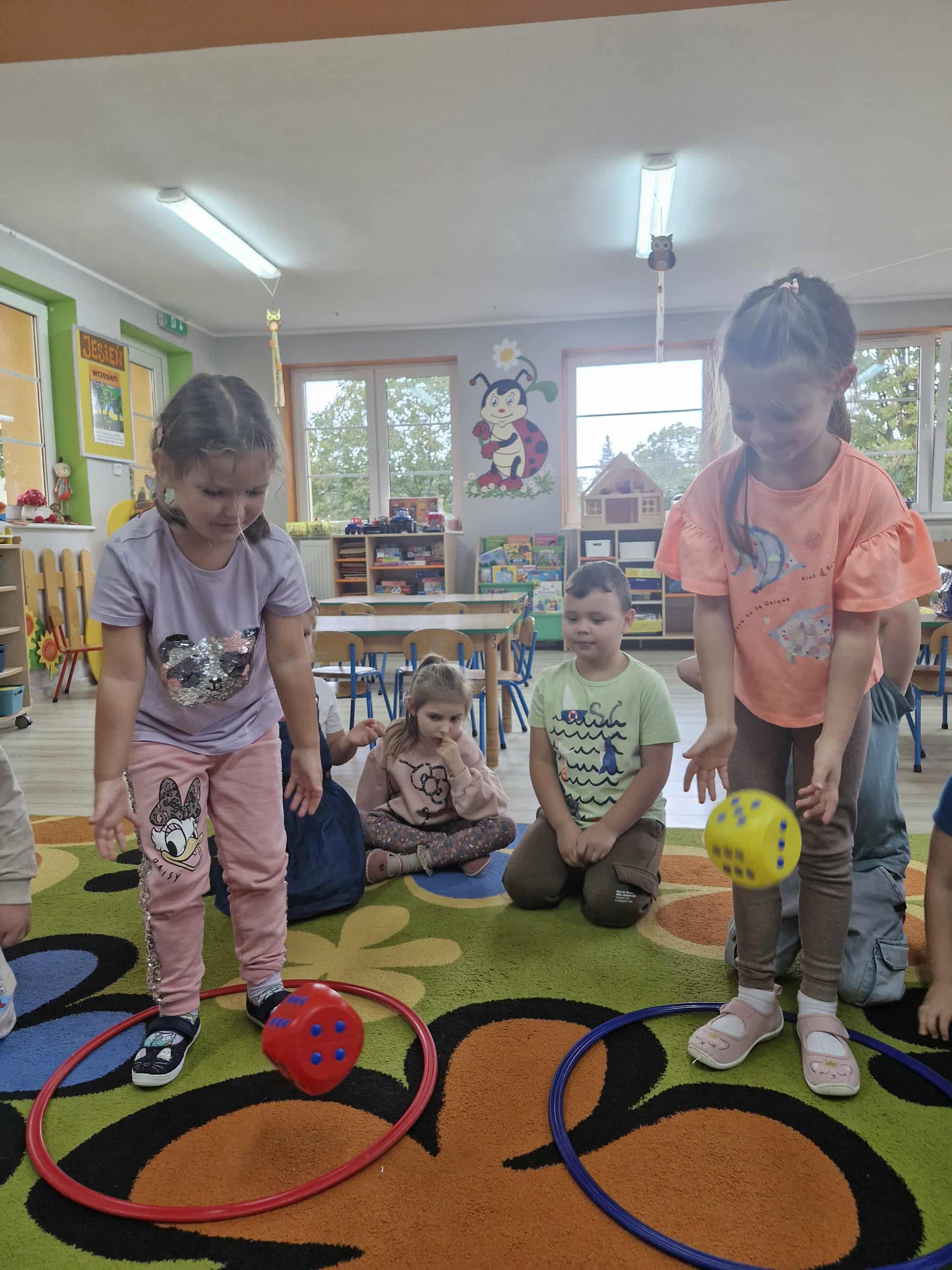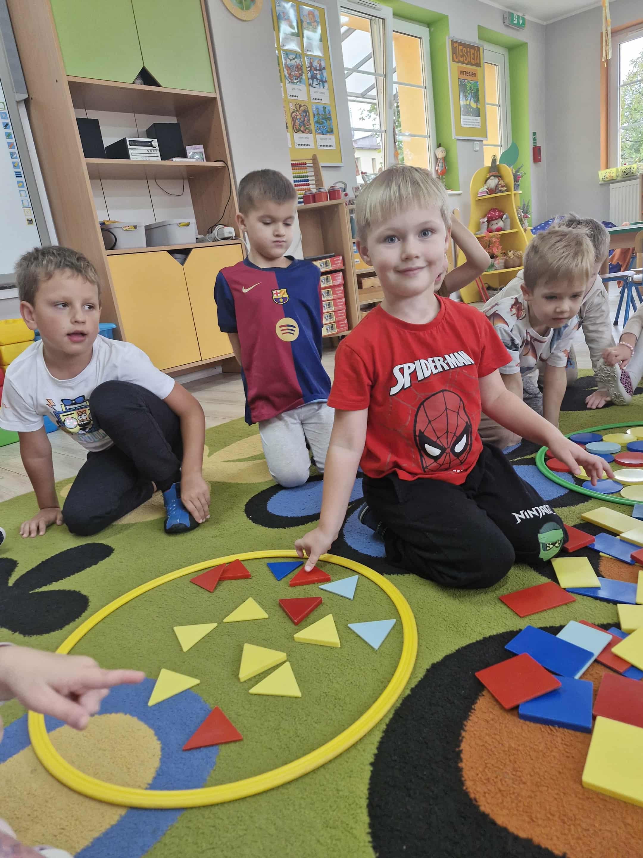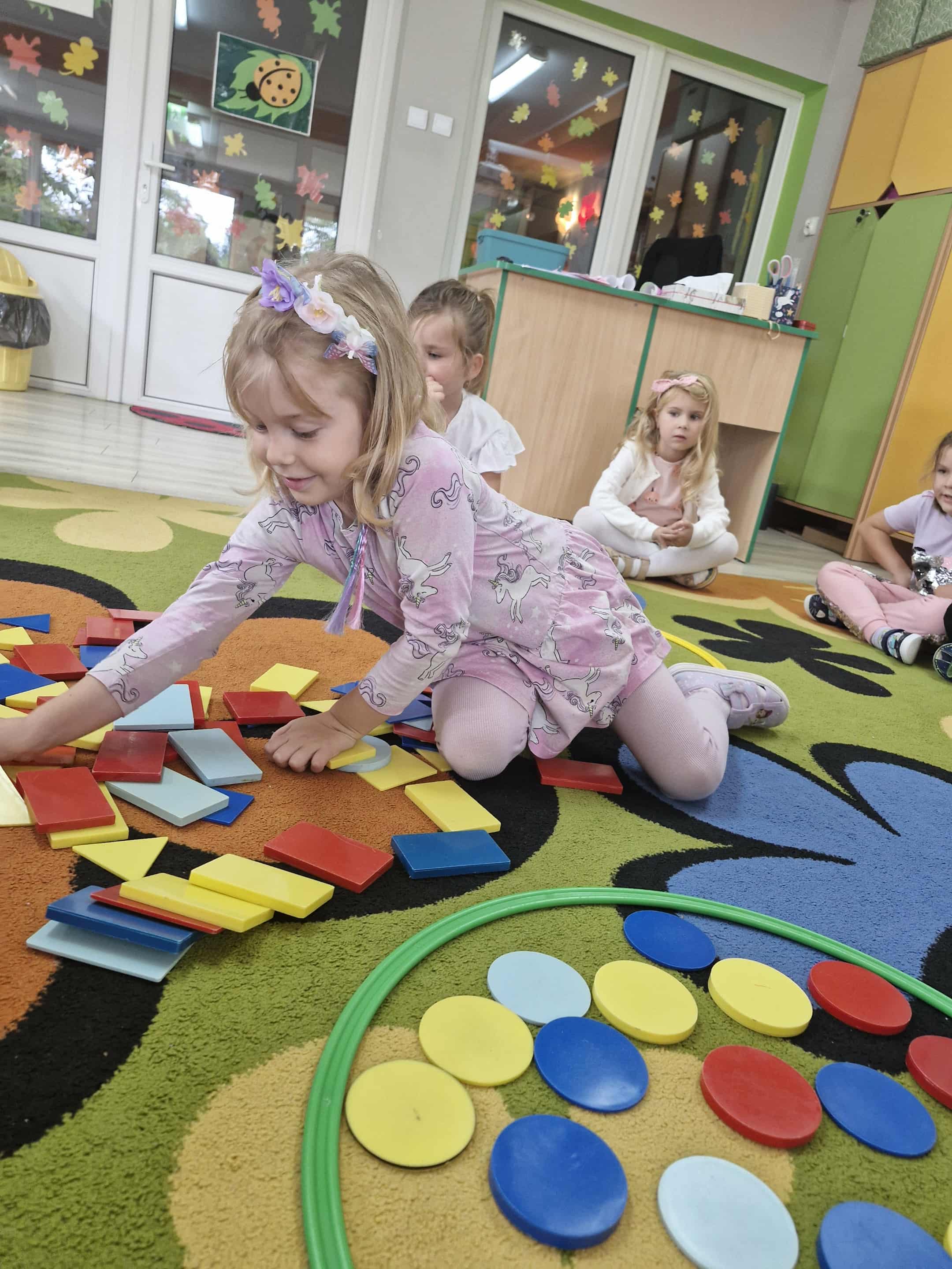7 października w grupie Biedronek i 8 października w grupie Pszczółek odbyły się pierwsze zajęcia projektu „Słyszę, liczę i koduję” realizowane w ramach Kutnowskich Grantów Oświatowych. Dzieci utrwalały znajomość figur geometrycznych, kształtowały umiejętność przeliczania, klasyfikowały elementy ze względu na ich wielkość oraz układały ciągi rytmów. Na koniec Biedronki wykonały pracę plastyczną: stworzyły geometryczny obrazek pajacyka.