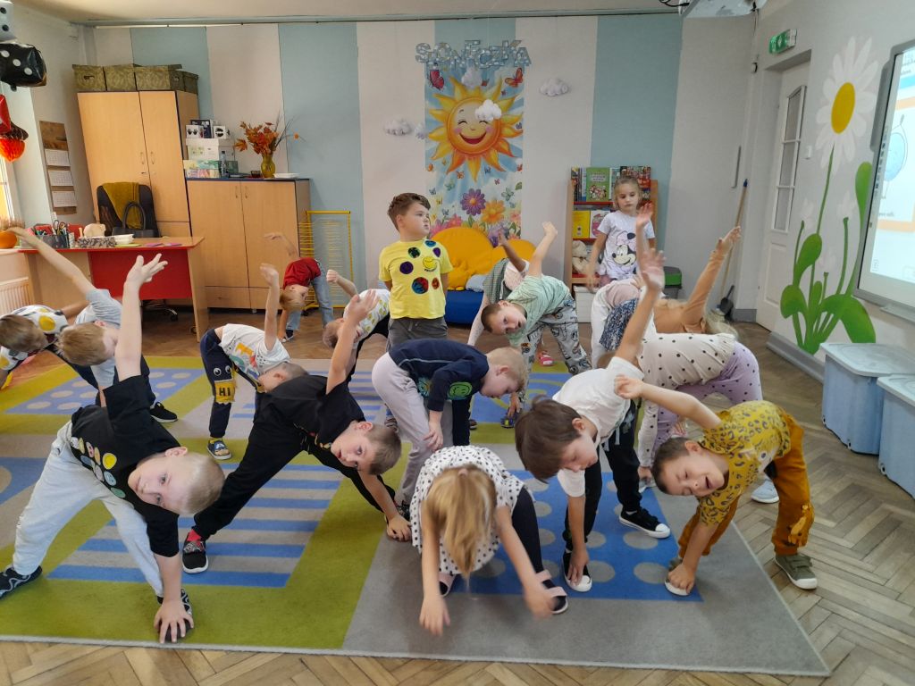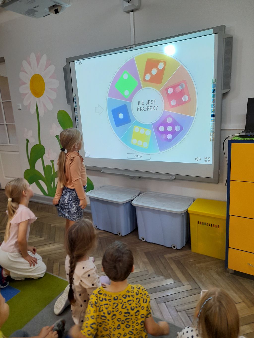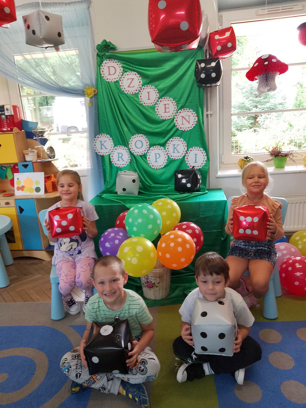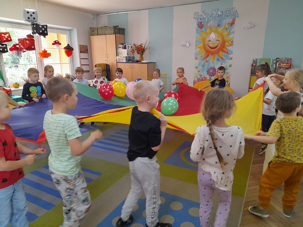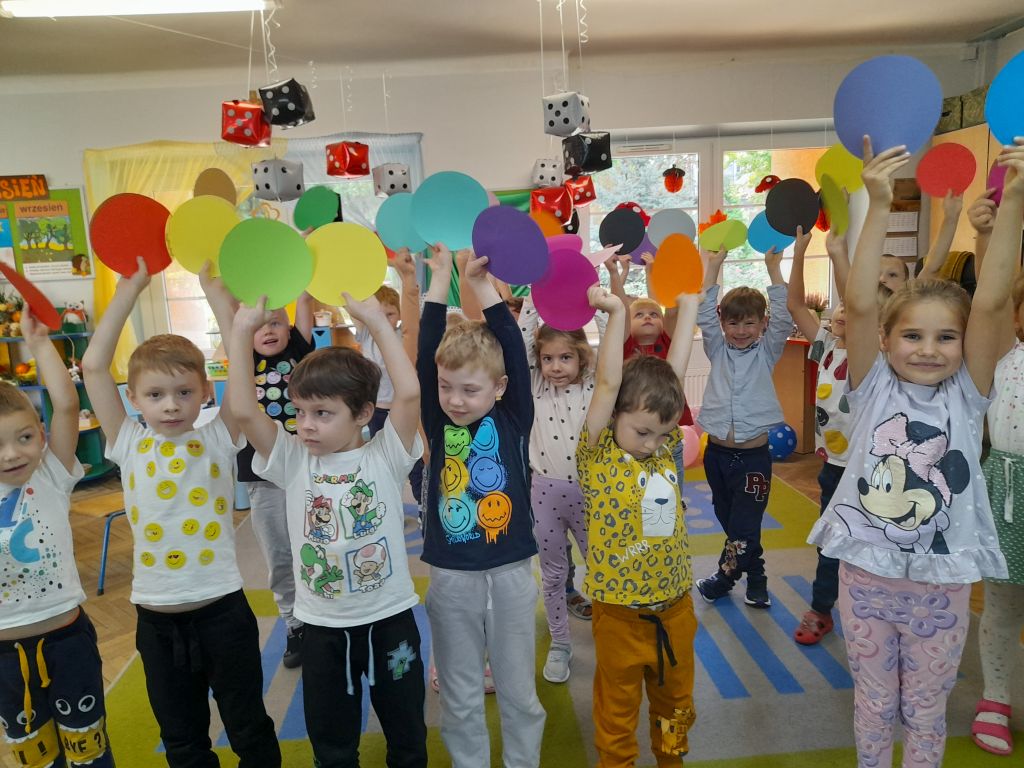 15.09.2025 r. dzieci obchodziły święto kreatywności czyli "Dzień Kropki". Inspiracją do wspólnego świętowania była bajka pt. "Kropka". Przedszkolaki z radością uczestniczyły w zabawach z kropką w roli głównej: układały kropkę z kolorowych kubeczków, brały udział w grach interaktywnych z wykorzystaniem tablicy multimedialnej, w kropkowej gimnastyce, zabawach przy muzyce, a także z wykorzystaniem chusty animacyjnej i balonów w kropki. Wykonały również pracę plastyczną tworząc kropkowe dzieła.