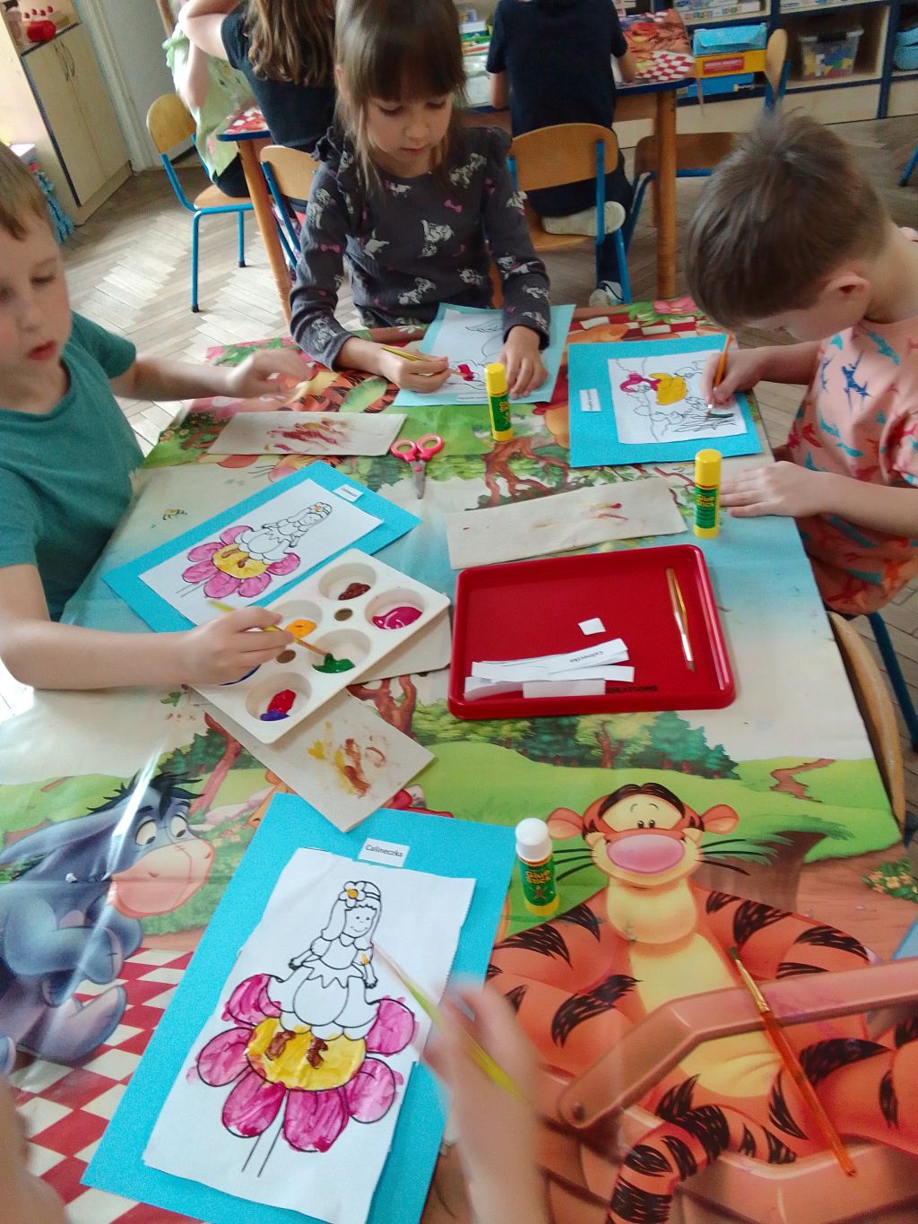 W dniu 5 maja "Słoneczka" zaprosiły panią psycholog, która przeczytała jedną z bajek H. Ch. Andersena pt. "Księżniczka na ziarnku grochu" w ramach projektu edukacyjnego "Mały Miś w Świecie Wielkiej Literatury" (moduł nr 4 pod hasłem "Wśród baśni Andersena"). Były również bajkowe zagadki i malowanie farbami postaci z bajek Andersena.