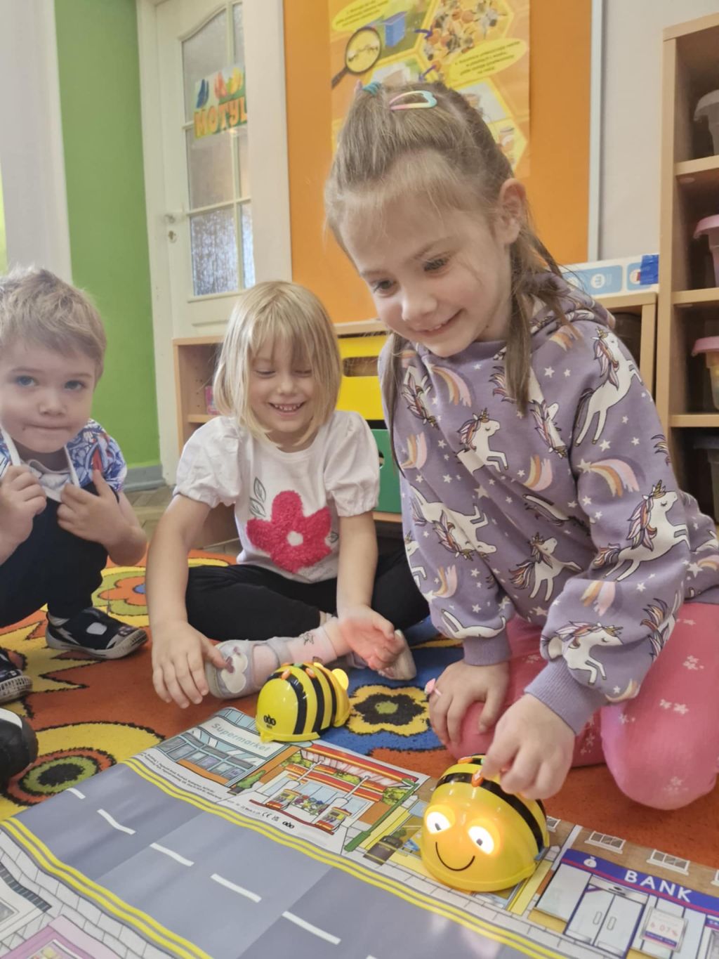 W trzecim tygodniu maja dzieci z grupy "Motylków" zdobywały wiedzę na temat małych pożytecznych owadów - pszczół. Przedszkolaki dowiedziały się, jak ważne są pszczoły w naszym ekosystemie, poznały budowę i rodzaje pszczół i wysłuchały szeregu ciekawych opowiadań o tych owadach i wykonały pracę plastyczną. Oczywiście nie mogło zabraknąć odwiedzin w punkcie dydaktycznym "Królestwo owadów" gdzie dzieci mogły zobaczyć piękną rzeźbę pszczoły oraz ule. Na zakończenie "Motylki" uczyły się kodowania wykorzystując do tego celu roboty w kształcie pszczół - BeeBoty.
