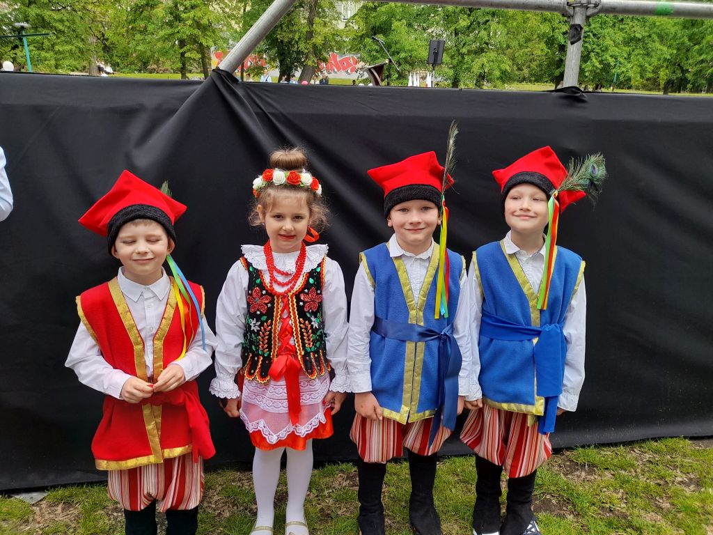 03.05.2025 r. dzieci z grupy "Słoneczka" i "Biedronki” wzięły udział w uroczystych obchodach 234. rocznicy uchwalenia Konstytucji 3 Maja. Przedszkolaki ubrane w barwne, ludowe stroje, zaprezentowały taniec narodowy - Krakowiak na scenie w parku Traugutta.