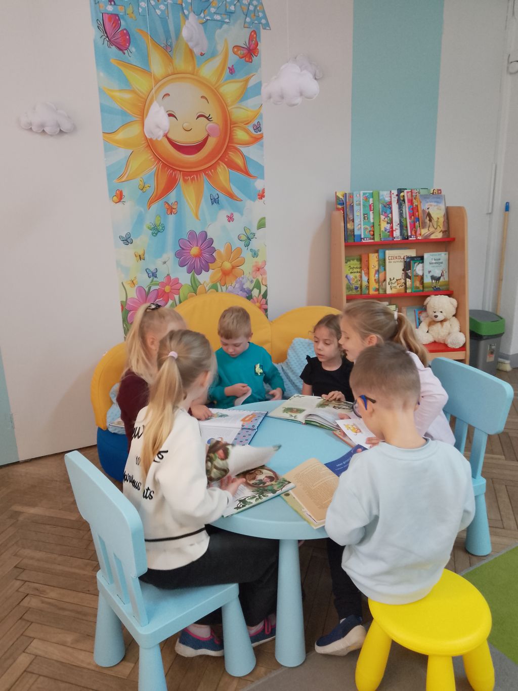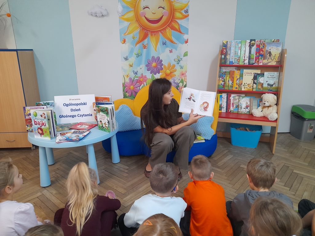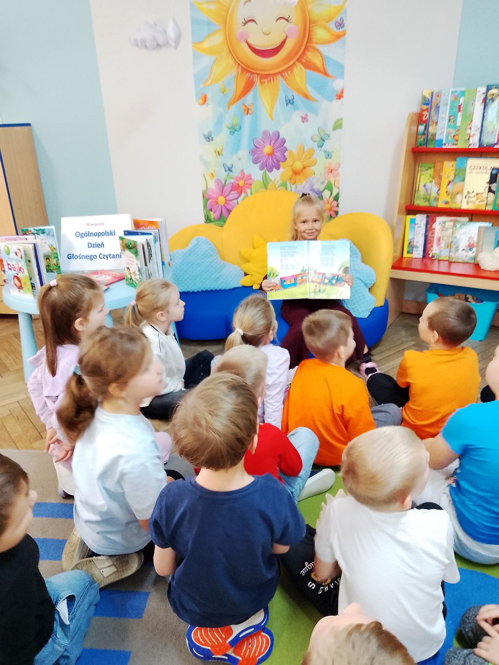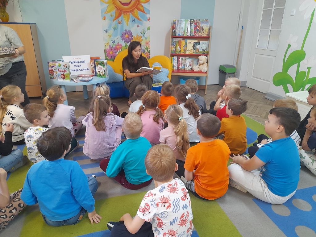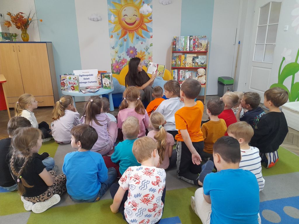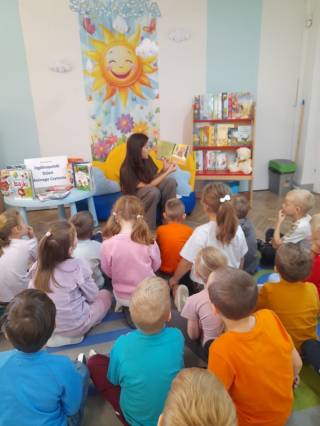 29 września obchodziliśmy w grupie Ogólnopolski Dzień Głośnego Czytania. Z tej okazji gościliśmy w grupie mamę Mikołaja, która przeczytała przedszkolakom opowieści z książek pt. "Basia i Przyjaciele" oraz "Self-regulation - Opowieści dla dzieci o tym, jak działać, gdy emocje biorą górę". Przedszkolaki z zainteresowaniem słuchały utworów literackich, wypowiadały się na podstawie ich treści, oglądały ilustracje w książkach, tworzyły własne rysunki do wysłuchanych opowieści.