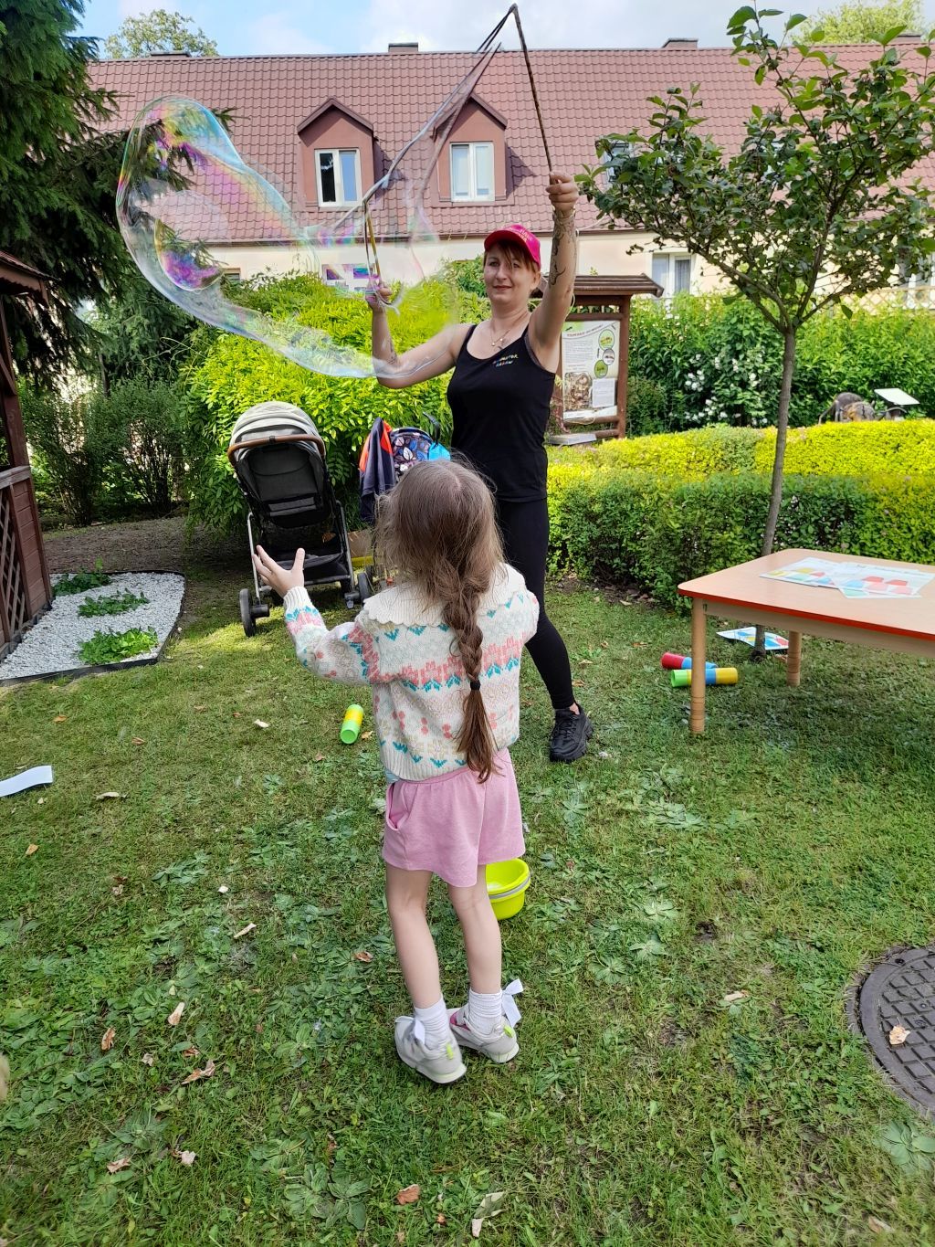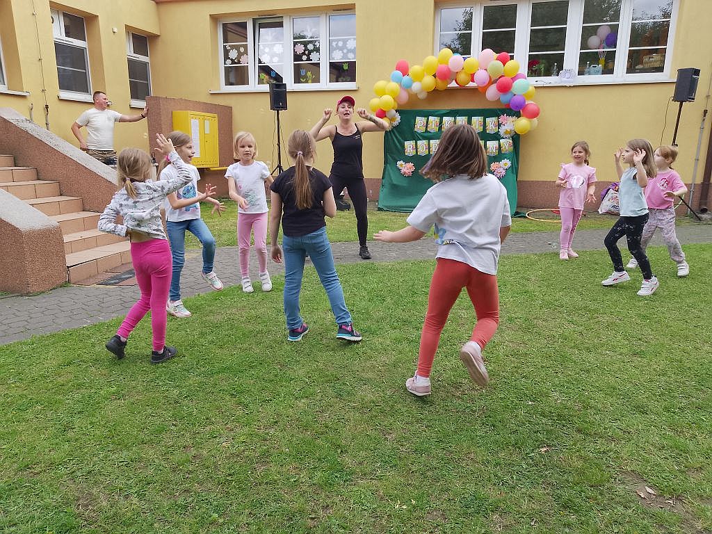 Dnia 12 czerwca 2025 r. odbył się w naszym przedszkolu Piknik Rodzinny zorganizowany w ramach obchodów Dnia Mamy i Taty. Piknik rozpoczęła dyrektor przedszkola - Pani Arleta Kacprzak, która serdecznie powitała zaproszonych gości. Ponadto wspólnie z Panią wicedyrektor złożyła podziękowania osobom i firmom, które aktywnie włączyły się w organizację pikniku. Uroczystość odbyła się w ogrodzie przedszkolnym, gdzie na gości czekały różne niespodzianki. W dobry humor wprowadziła wszystkich oprawa muzyczna, którą zapewnił didżej - rodzic naszej wychowanki oraz pojawienie się postaci z filmu "Strażak Sam". Dzieci z grupy "Motylki" zaprezentowały taniec z chustą. Następnie odbyły się zabawy i pląsy przy muzyce prowadzone przez nauczycieli przedszkola. Dużym powodzeniem cieszyły się zajęcia prowadzone przez Panią animator z firmy "Nadmuchane Marzenia". Były tańce, bańki mydlane oraz zabawy o charakterze sportowym, między innymi przeciąganie liny. Kolejną atrakcją były zabawy na dmuchanym zamku z firmy "Wynajem zamków i zjeżdżalni dmuchanych", jak również zaplatanie warkoczyków przez uczennice Branżowej Szkoły I stopnia Zakładu Doskonalenia Zawodowego w Warszawie - Centrum Kształcenia w Kutnie. Uczestnicy pikniku chętnie brali udział w loterii - Koło Fortuny zorganizowanej przez pracowników Szkoły Policealnej Awangarda. Wśród nagród były między innymi pluszaki, książki, słodycze. Ponadto wszyscy mogli bawić się z wykorzystaniem przyborów i sprzętów sportowych, odpoczywać w "Strefie relaksu" zorganizowanej przez firmę Kellanova, jak również wykonać zdjęcia na tle kolorowej ścianki ozdobionej balonami wykonanej przez rodziców z naszego przedszkola. Nie zabrakło także poczęstunku. W zaciszu ogrodu przedszkolnego można było zajadać popcorn oraz delektować się różnymi smakołykami. Był to dzień pełen wrażeń i radości. W miłej, rodzinnej atmosferze czas upłynął bardzo szybko.