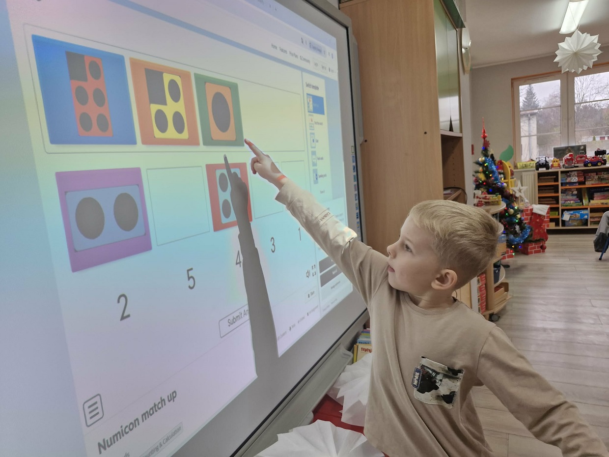 16 grudnia w grupie Biedronek oraz 17 grudnia w grupie Pszczółek odbyły się zajęcia pod hasłem "Poznajemy klocki Numicon" w ramach Kutnowskich Grantów Oświatowych. Przedszkolaki poznały możliwości jakie daje zabawa klockami Numicon: przeliczały, układały wzory, dopasowywały klocki i budowały wieże. Dodatkowo dzieci z grupy Biedronek rozwiązywały quizy matematyczne z klockami Numicon na tablicy multimedialnej.