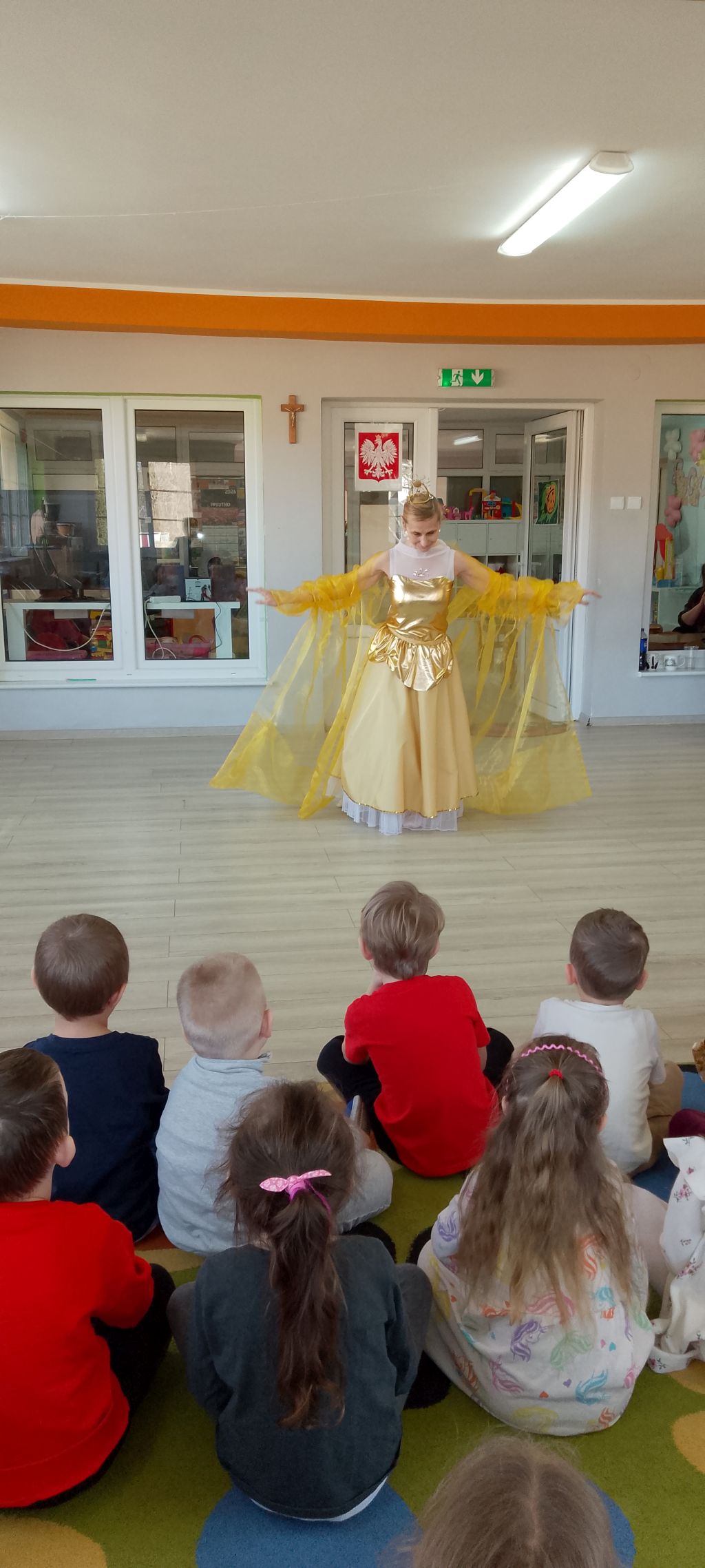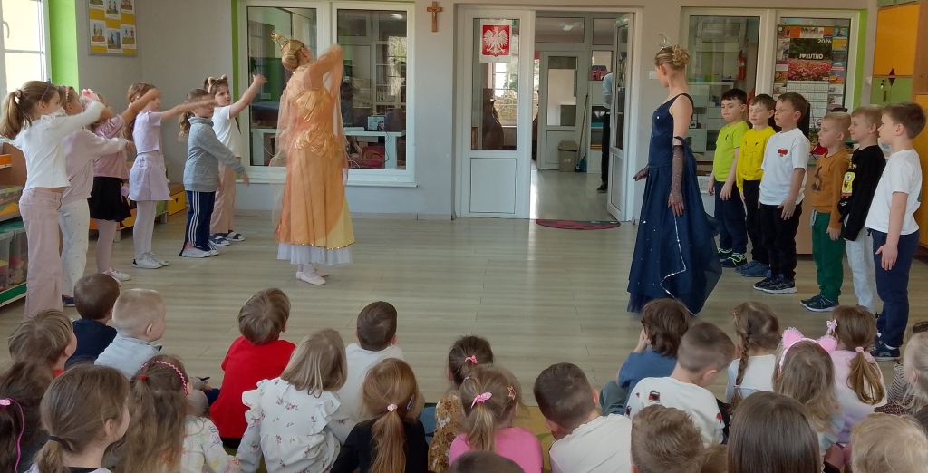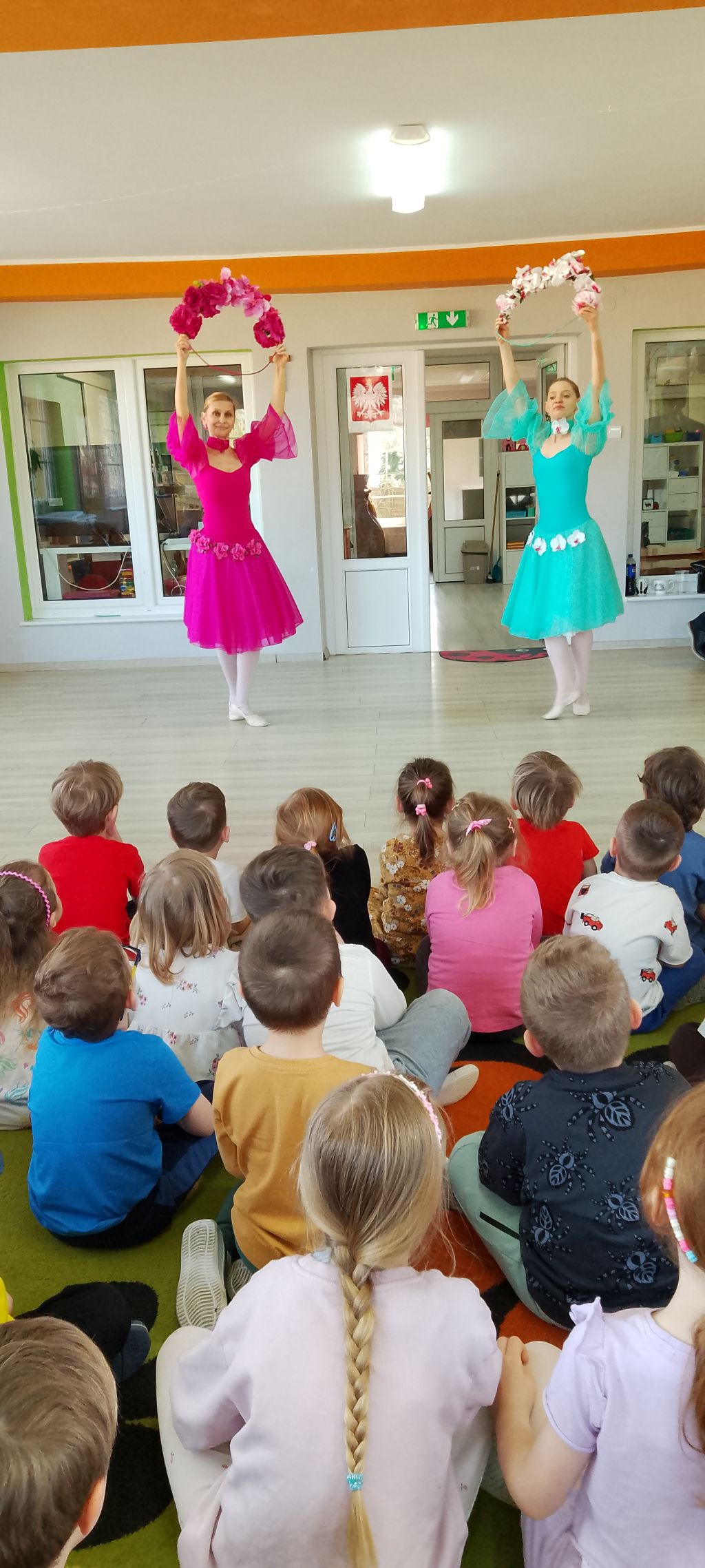 Dnia 05.03.2026 r. odbyło się w naszym przedszkolu przedstawienie baletowe pt. "Czarodziejski ogród". Było to kolejne spotkanie z baletem na terenie naszego przedszkola. Prowadzący zaprosił dzieci na jeden dzień do wiosennego ogrodu, gdzie tancerki zaprezentowały taniec do muzyki E. Griega "Poranek", tańce z baletu "Królewna Śnieżka", "Sen nocy letniej". Dzieci z radością uczestniczyły w zabawach tanecznych próbując naśladować pełne wdzięku ruchy baletnic. Ponadto poznały rodzaje tańców: solo, duet, zespół, kanon. Wszyscy z zachwytem oglądali przedstawienie nagradzając tancerki gromkimi brawami.