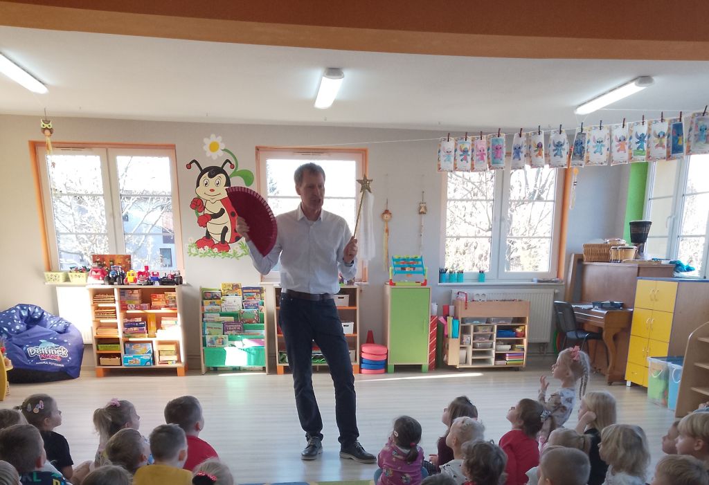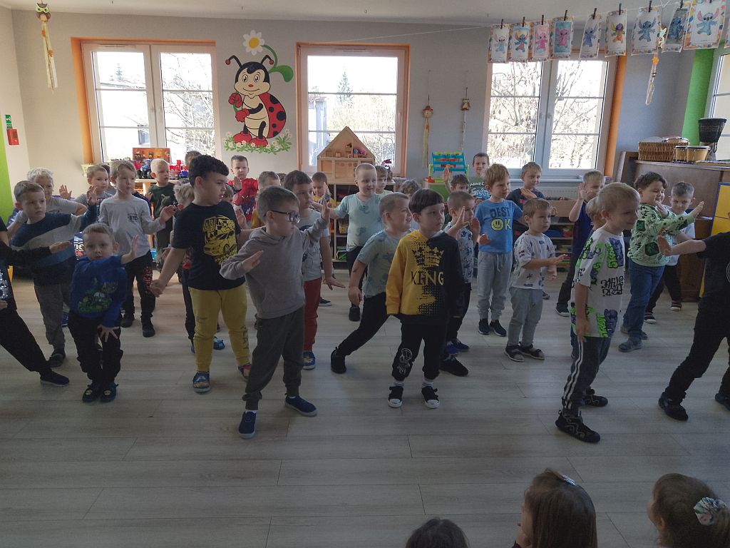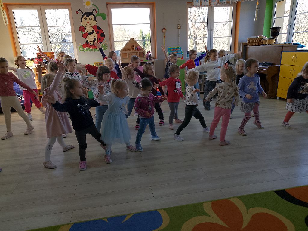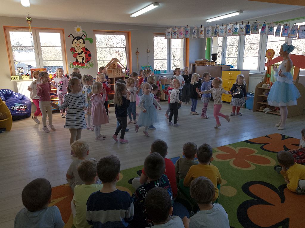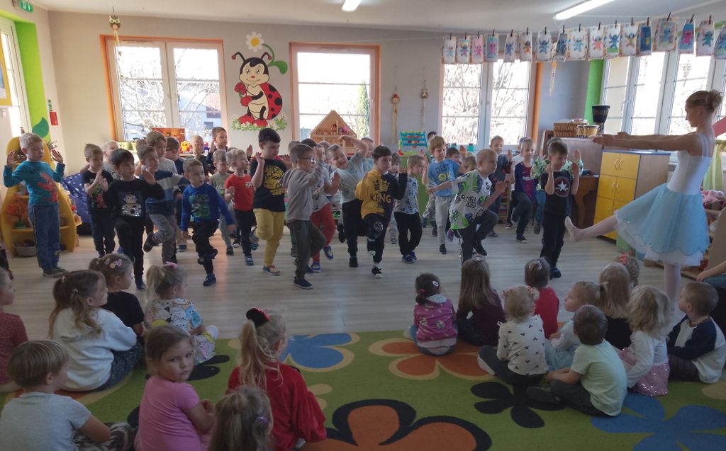 Dnia 06.11.2025 r. odbyło się w naszym przedszkolu przedstawienie baletowe pt. "Tańce z baśni". Tancerki zaprezentowały tańce z "Dziadka do orzechów" i "Śpiącej królewny". Ponadto dzieci z radością uczestniczyły w zabawach tanecznych - dziewczynki wykonały "Taniec lalek", a chłopcy "Taniec robotów". Przedszkolaki dowiedziały się również co to jest rekwizyt i do czego jest wykorzystywany.