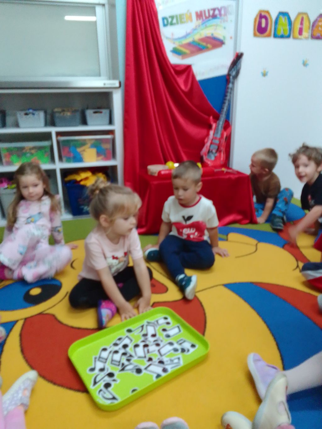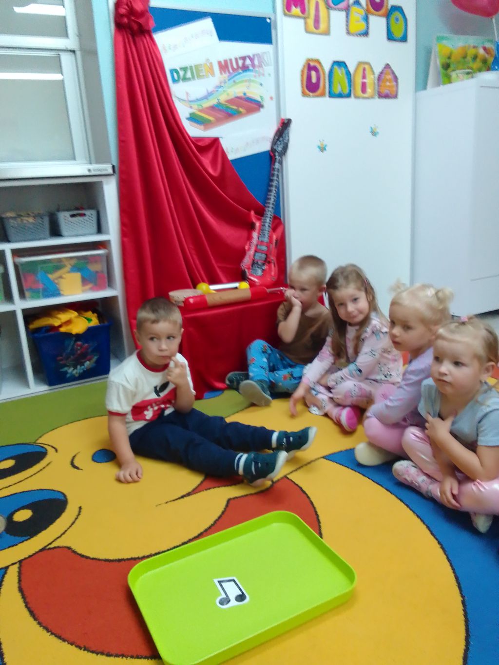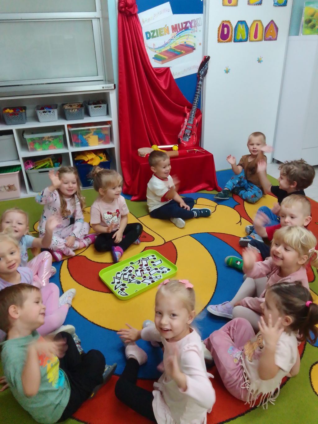 Muzyka ma swoje święto, które jest obchodzone 1 października. „Międzynarodowy Dzień Muzyki” to doskonała okazja, aby grać, tańczyć i śpiewać. W tym dniu również "Pszczółki" przeniosły się do krainy dźwięków, aby wspólnie bawić się muzyką. Przedszkolaki nie tylko uważnie słuchały utworów muzycznych, ale również aktywnie uczestniczyły w zabawach muzyczno – ruchowych, zabawach z chustą animacyjną, szukały nutek w sali oraz grały na instrumentach perkusyjnych.