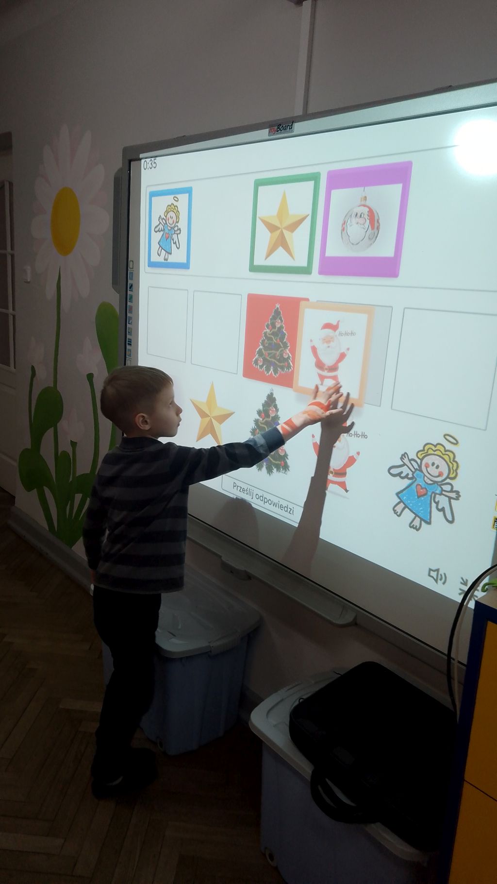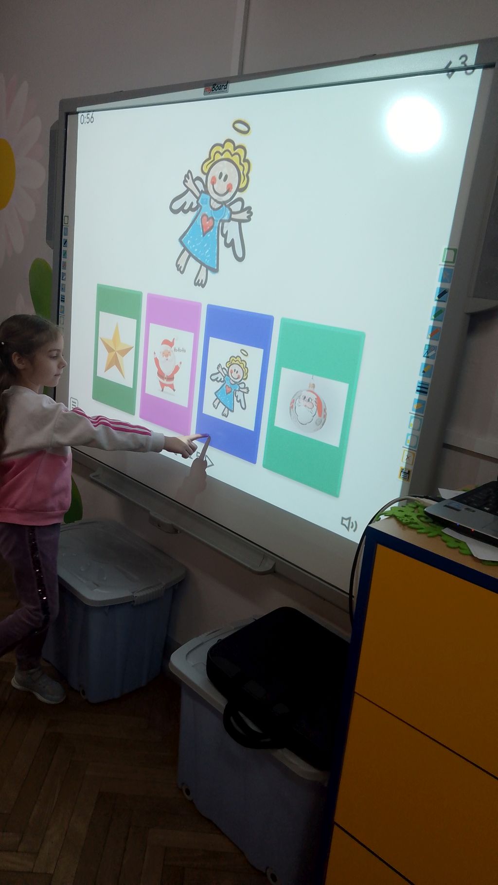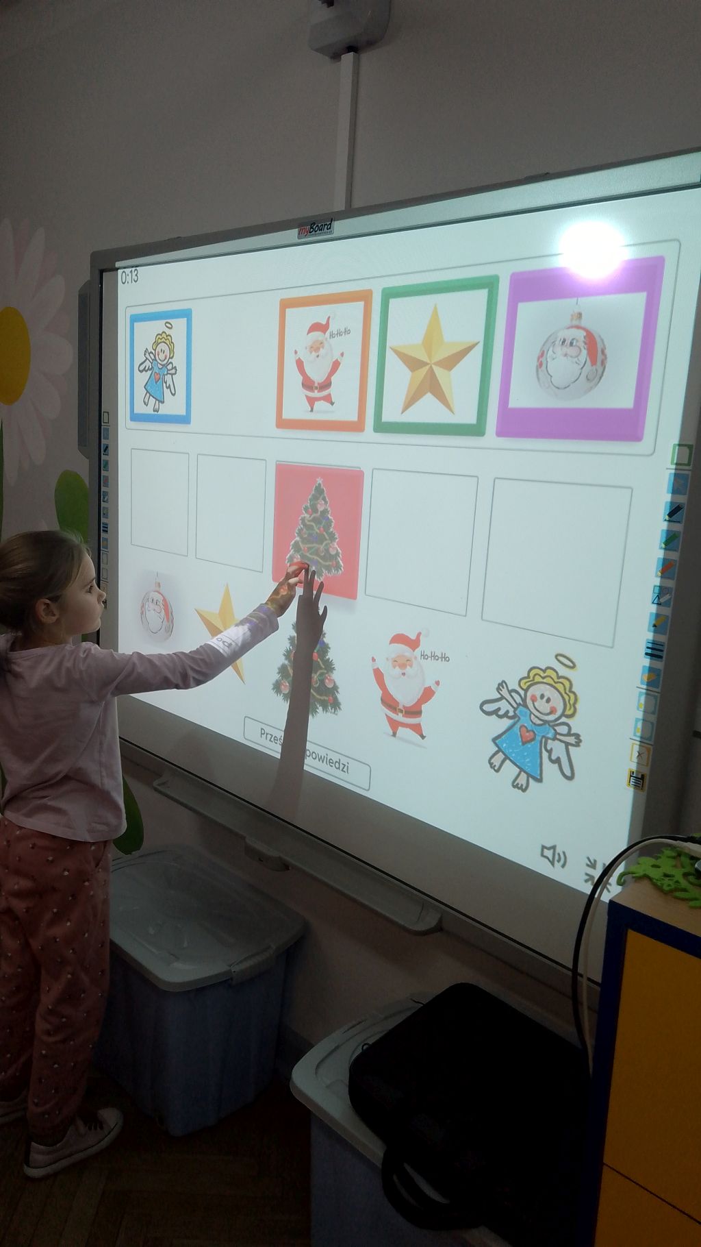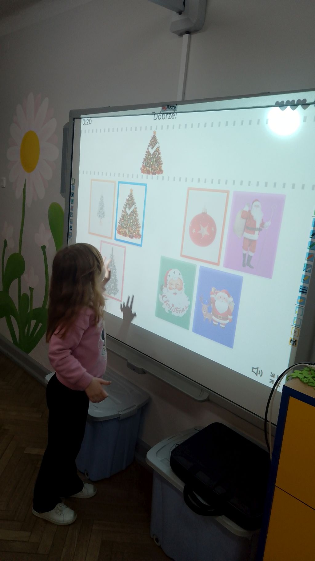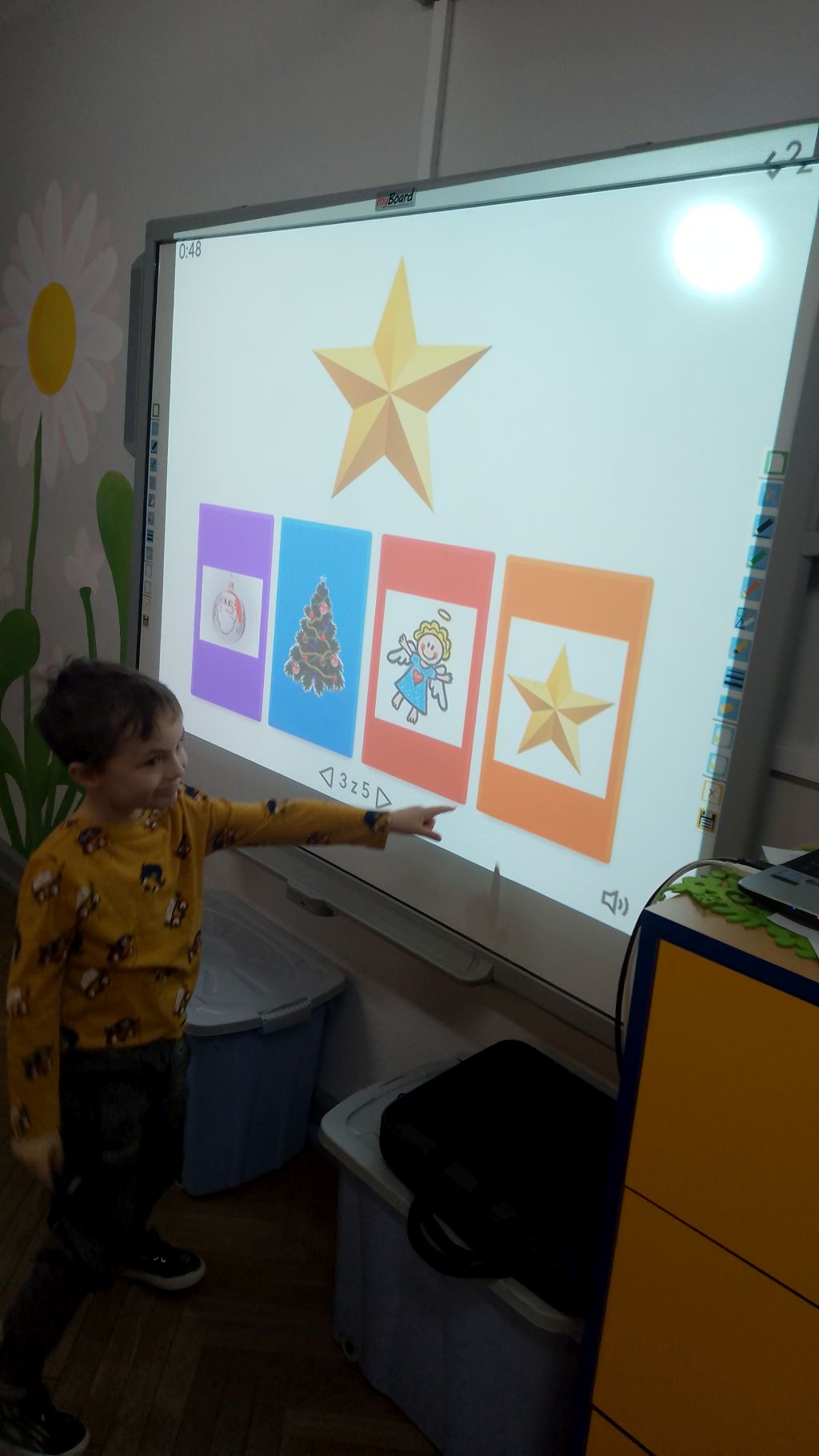 Dnia 18.12.2025 r. "Słoneczka" uczestniczyły w świątecznym quizie "Co wiemy o Świętach Bożego Narodzenia". Dzieci podczas zajęcia brały udział w licznych zabawach, grach interaktywnych z wykorzystaniem tablicy multimedialnej. Przedszkolaki świetnie się bawiły, a jednocześnie - zupełnie naturalnie, poprzez zabawę utrwalały wiadomości dotyczące tradycji i obyczajów związanych ze Świętami Bożego Narodzenia.