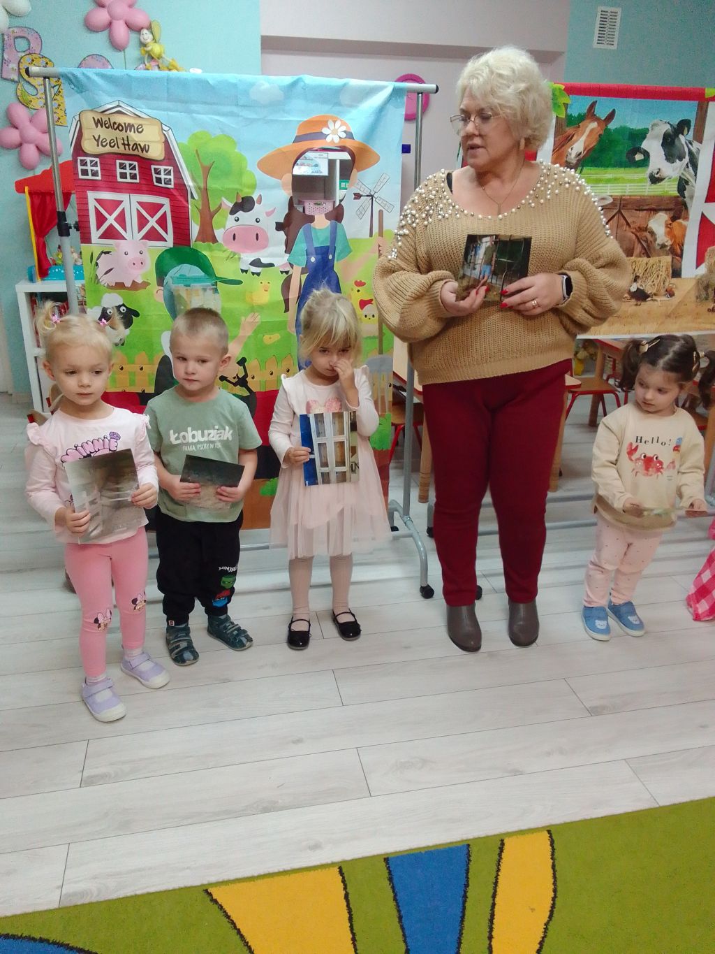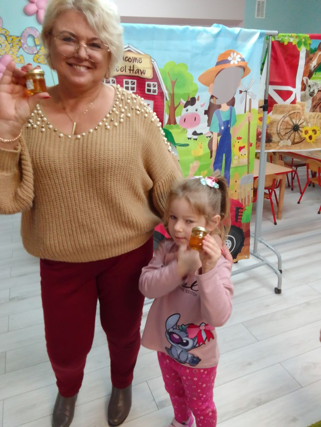 17 listopada w naszej grupie gościła Pani Agata, która razem ze swoją córką poprowadziła warsztaty rolnicze pod hasłem "Rolnik w przedszkolu". Dzieci dowiedziały się kim jest rolnik i jak wygląda jego praca, jakie zwierzęta mieszkają w gospodarstwie, co rośnie na polu a co w ogrodzie. Były również pamiątkowe zdjęcia i mini słoiczek miodu z pasieki Pani Agaty.