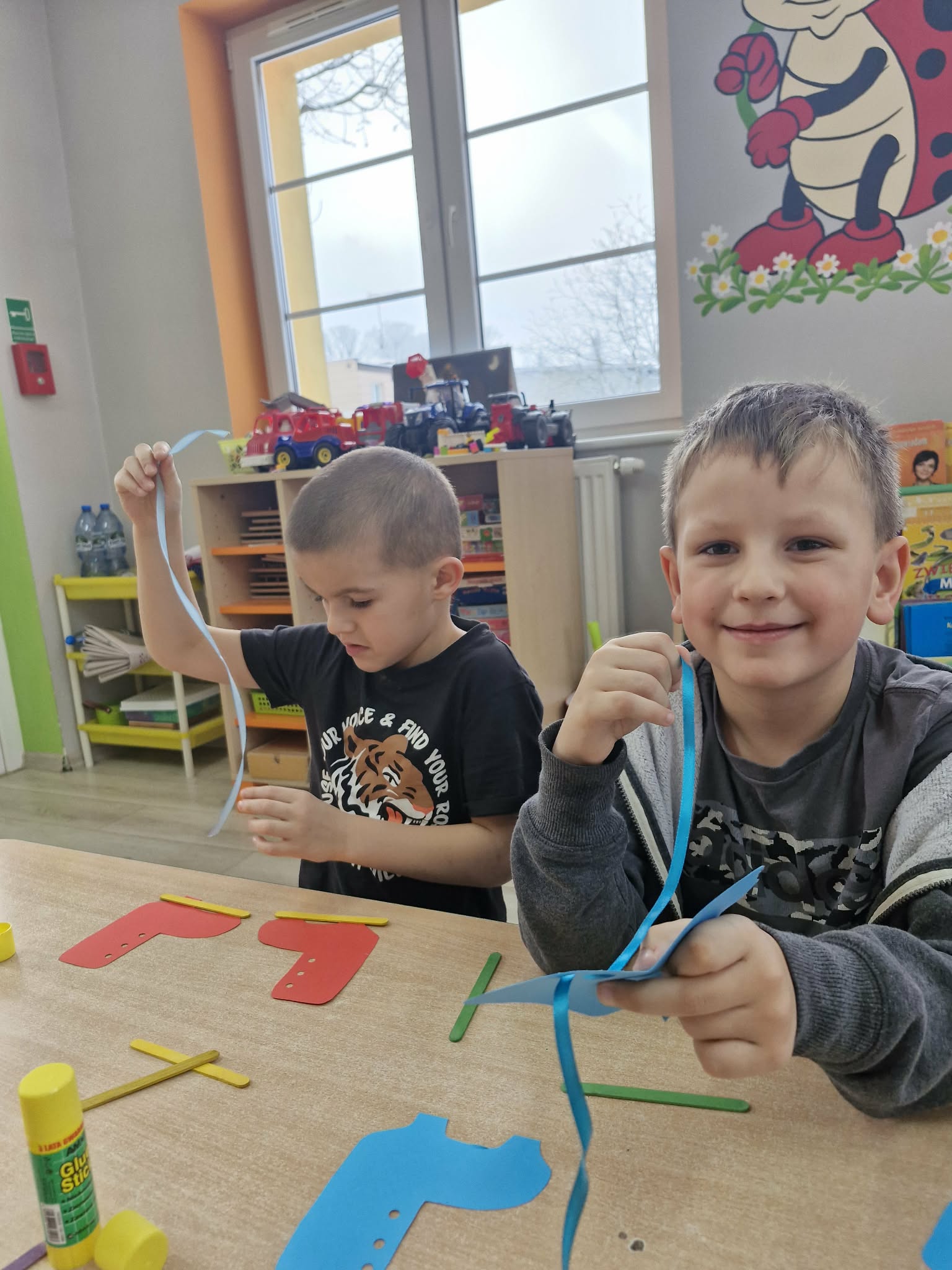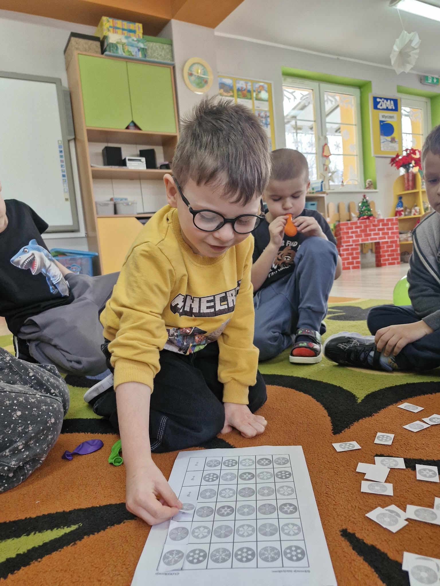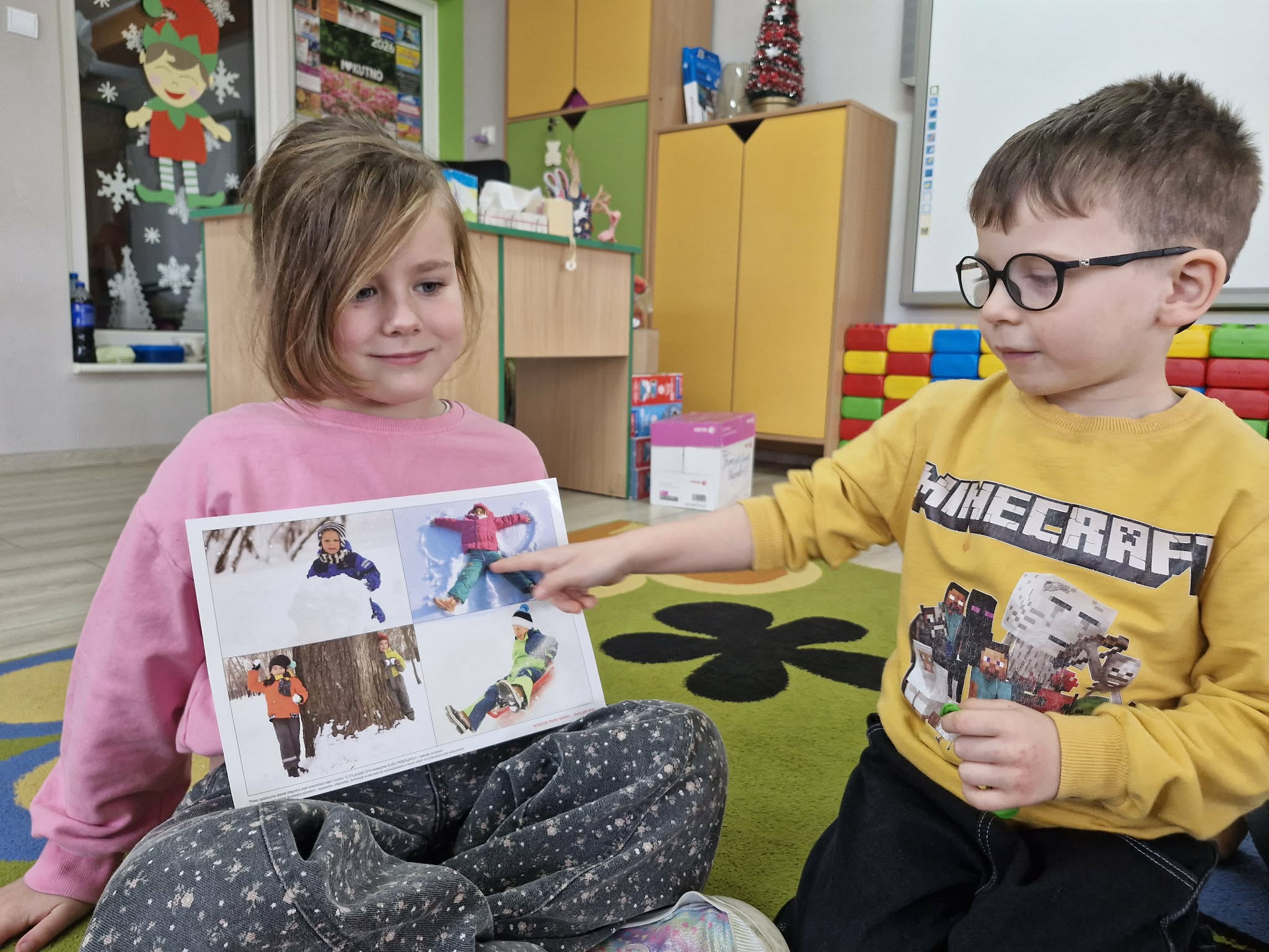 9 stycznia w grupie "Biedronek" odbyły się zajęcia w ramach innowacji pedagogicznej "Pięknie mówimy i rękę ćwiczymy" pod tytułem "Sporty zimowe". Podczas zajęć dzieci wykonały szereg ćwiczeń usprawniających aparat artykulacyjny, wypowiadały się na temat sportów zimowych, ćwiczyły język, dmuchały balony, a także układały ciągi rytmów wykorzystując do tego kartoniki ze śnieżynkami. Na koniec zajęć przedszkolaki wykonały pracę plastyczną; łyżwy, wykorzystując do tego kolorowy papier techniczny, patyczki laryngologiczne i wstążeczki.