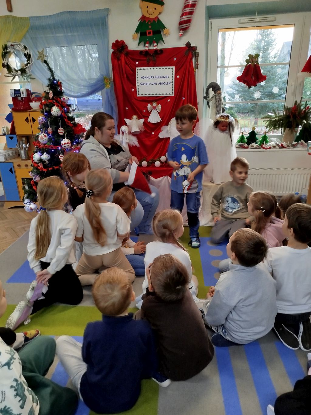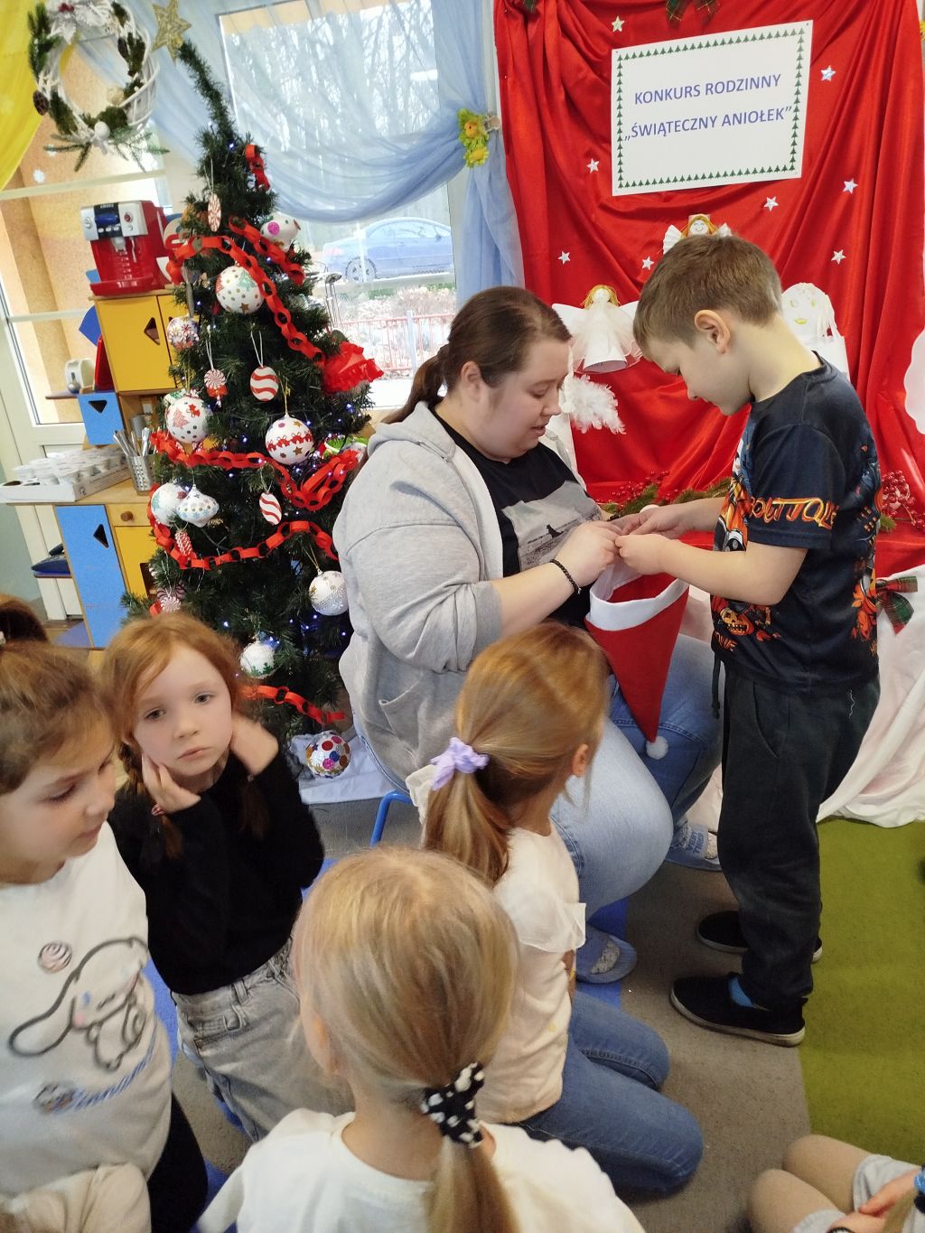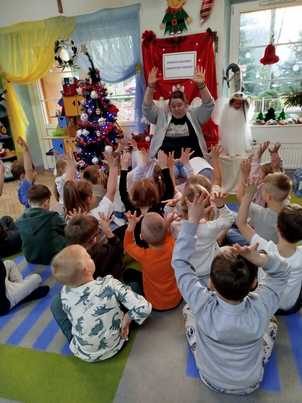 Dnia 17.12.2025 r. dzieci z grupy IV "Słoneczka" uczestniczyły w zajęciach prowadzonych przez z Panią psycholog - pracownika przedszkola pt. "Świąteczny dziennik emocji" w ramach projektu edukacyjnego "Urok Świat Bożego Narodzenia naszego regionu". Podczas zajęć dzieci rozmawiały na temat towarzyszących im podczas Świąt Bożego Narodzenia emocji, wykonały pracę, która pokazywała jak czują się podczas dni odliczających do Świąt oraz poznawały i porównywały swoje preferencje dotyczące obchodzenia Świąt w ich domach. Dzieci bardzo chętnie brały także udział w zabawie pt. "Świąteczne kalambury".