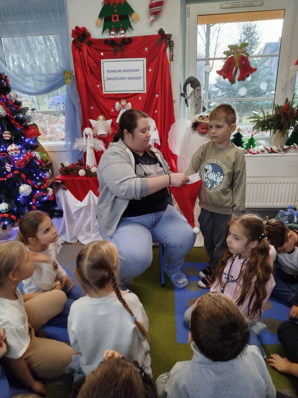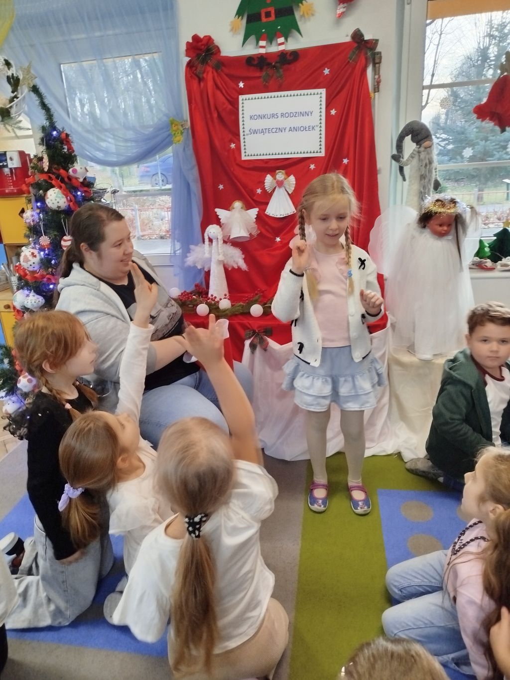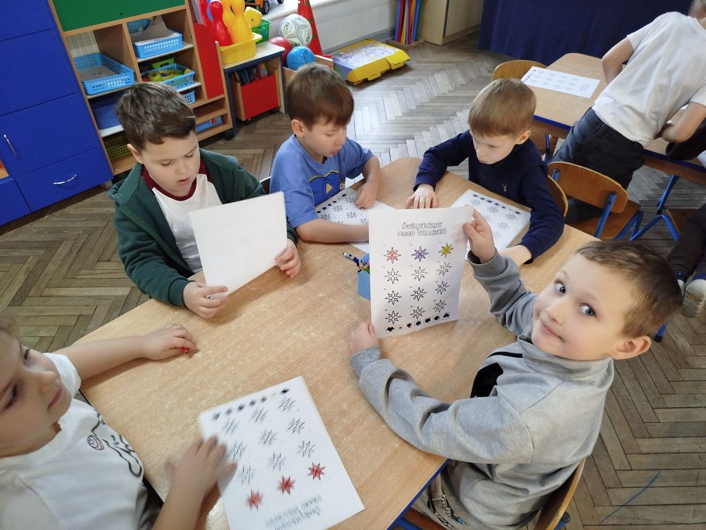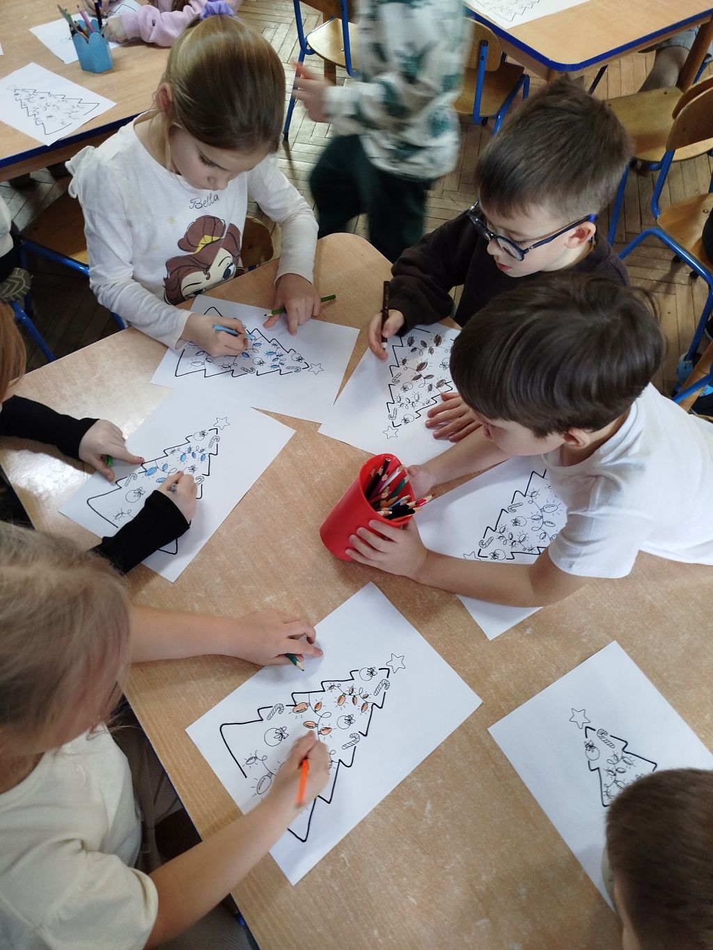 Dnia 17.12.2025 r. dzieci z grupy IV "Słoneczka" uczestniczyły w zajęciach prowadzonych przez z Panią psycholog - pracownika przedszkola pt. "Świąteczny dziennik emocji" w ramach projektu edukacyjnego "Urok Świat Bożego Narodzenia naszego regionu". Podczas zajęć dzieci rozmawiały na temat towarzyszących im podczas Świąt Bożego Narodzenia emocji, wykonały pracę, która pokazywała jak czują się podczas dni odliczających do Świąt oraz poznawały i porównywały swoje preferencje dotyczące obchodzenia Świąt w ich domach. Dzieci bardzo chętnie brały także udział w zabawie pt. "Świąteczne kalambury".