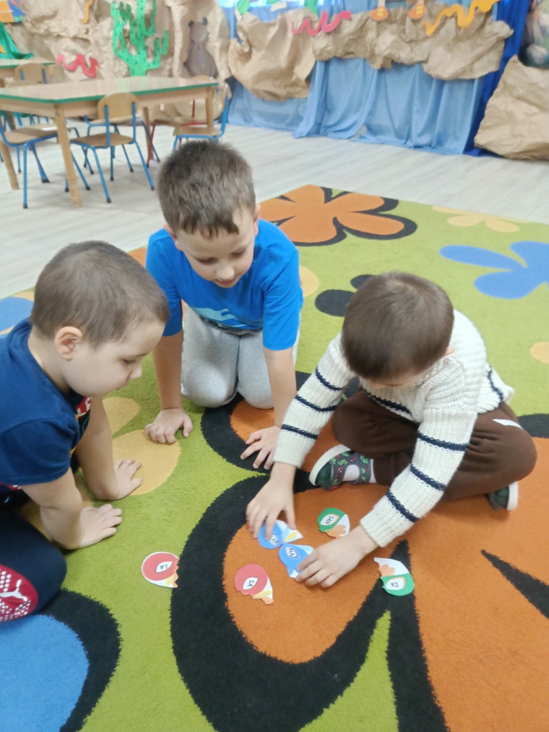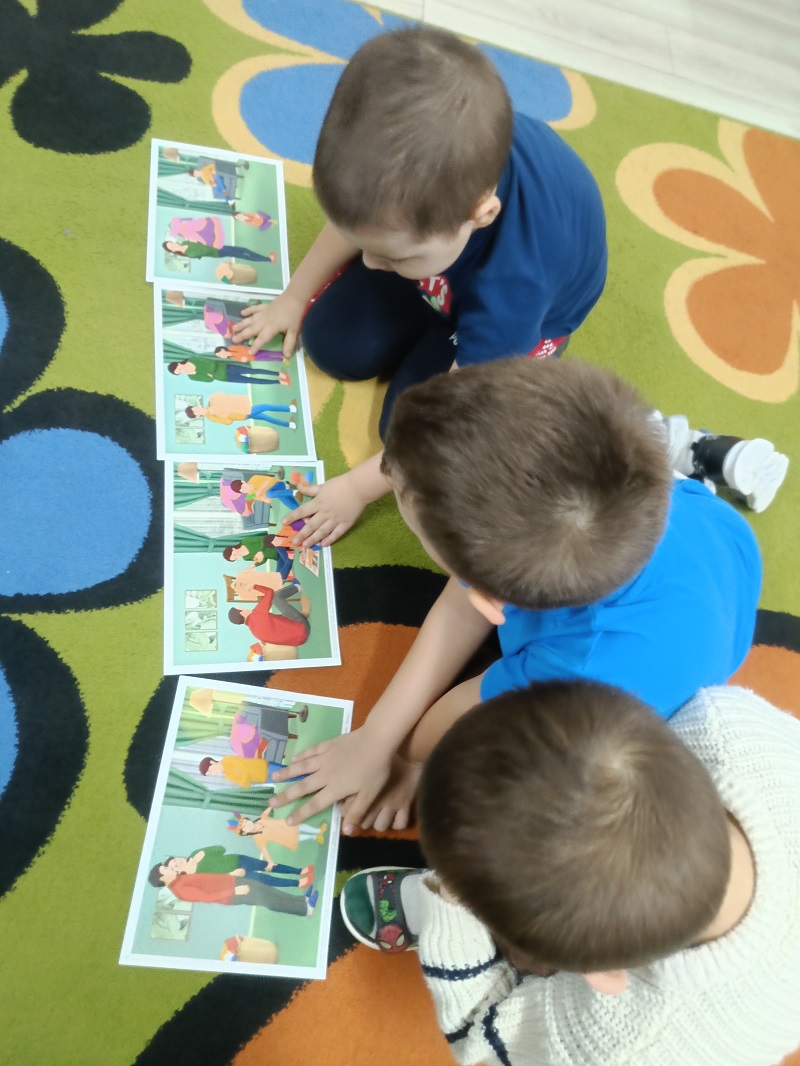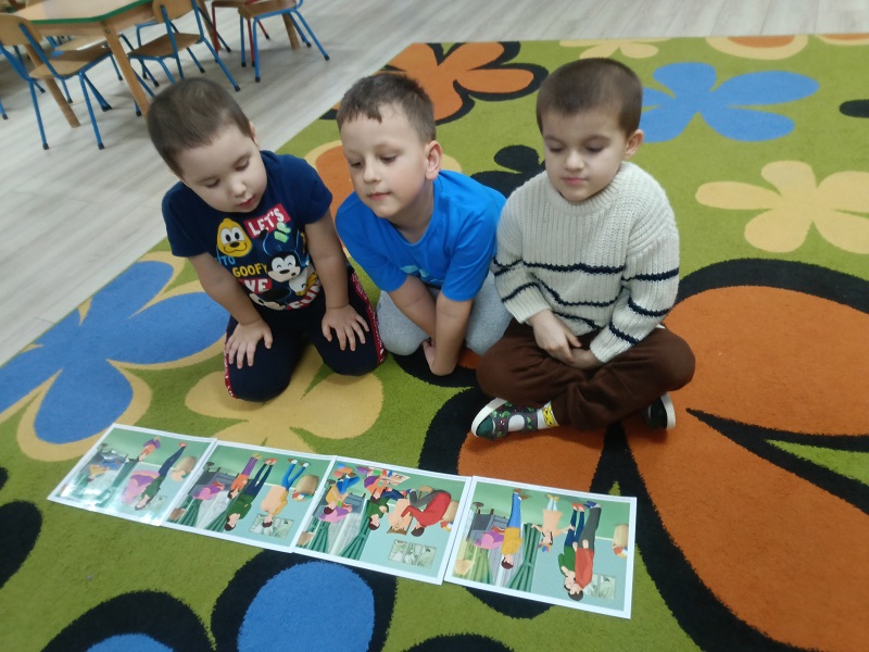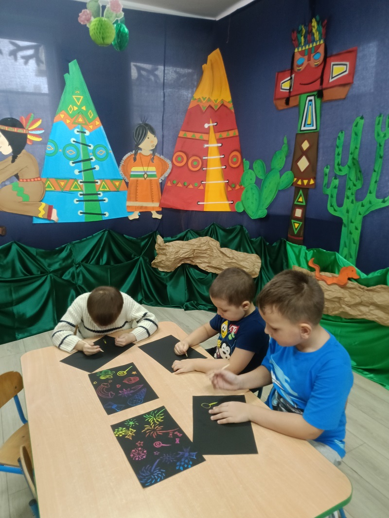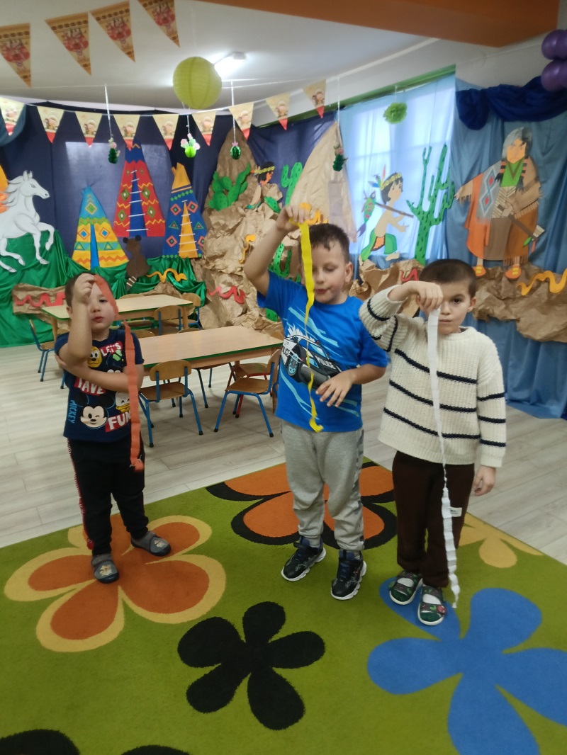 Podczas zajęć logopedyczno-plastycznych dzieci usprawniały aparat artykulacyjny w karnawałowym stylu. Ćwiczyły wargi i język wykorzystując zabawy: "maski karnawałowe", "balonowe cmokanie" oraz wykonywały ćwiczenia oddechowe "konfetti i trąbki". Przedszkolaki dmuchały na piórka i bibułę, łączyły wyrażenia dwuwyrazowe, układały historyjkę obrazkową, dotyczącą balu karnawałowego w odpowiedniej kolejności. Następnie rozmawiały o strojach karnawałowych i wykonały wydzierankę karnawałową.