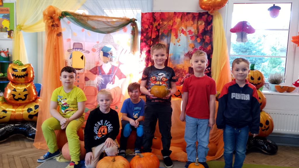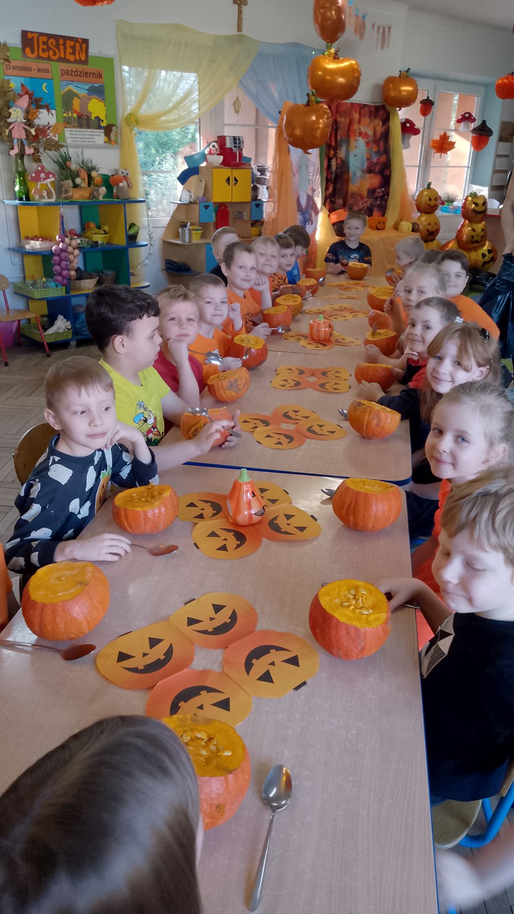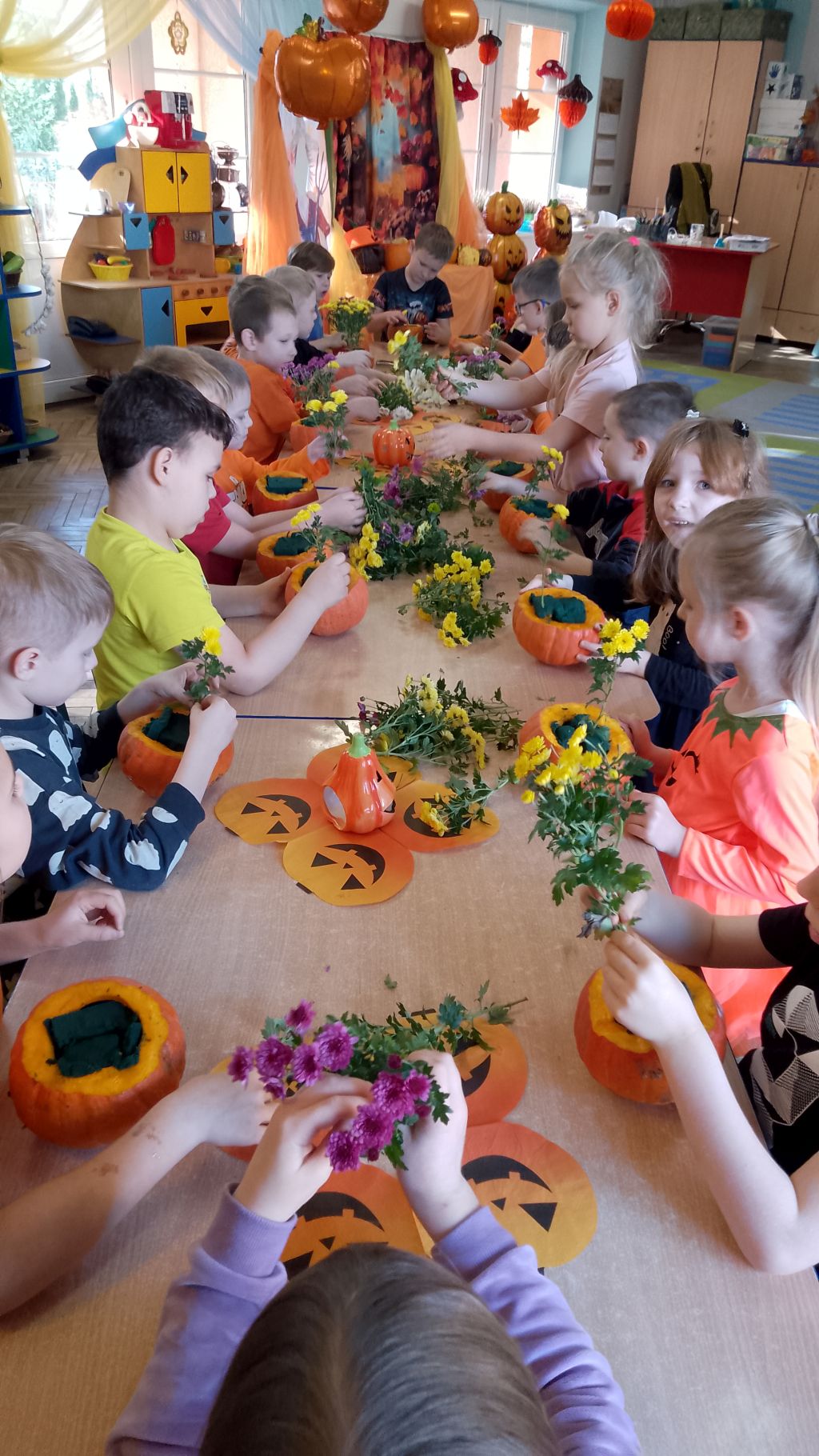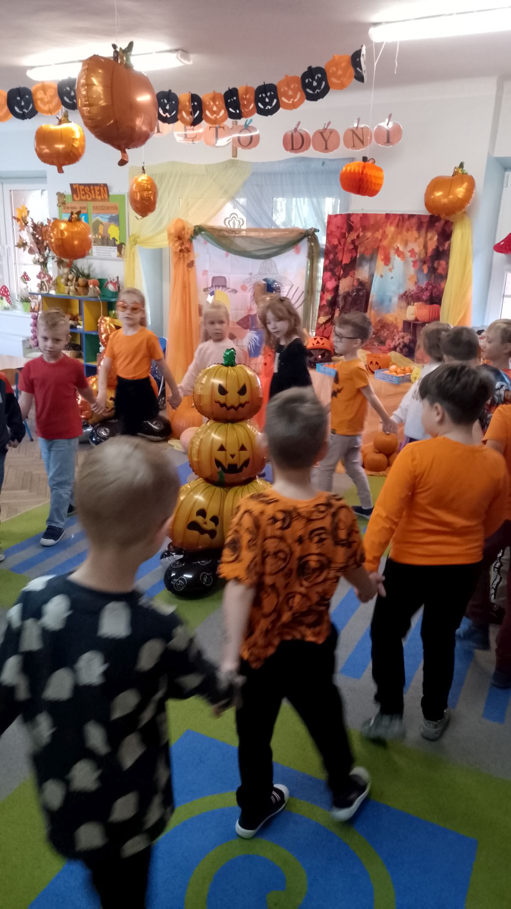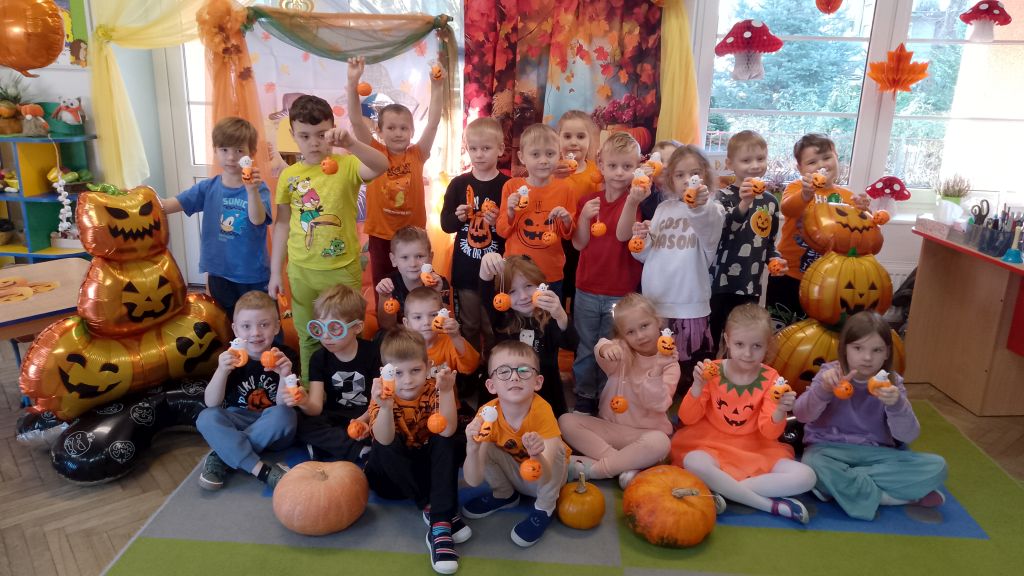 31 października "Słoneczka" obchodziły Święto Dyni. Tego dnia królowały dyniowe stroje, dekoracje dyniowe i oczywiście dynie w roli głównej. Dzień Dyni pozwolił nam poznać wielką różnorodność dyń i wzbogacił naszą wiedzę na ich temat. Dzieci uczestniczyły w licznych zabawach z udziałem dyni: slalom dyniowy, skoki przez dynię, dyniowe kręgle. Były również dyniowe zagadki i tańce. Wspólnie wydrążyliśmy nasze warzywo aby poznać wnętrze dyni oraz jej walory smakowe i zdrowotne. Tego dnia odbyły się również warsztaty florystyczne nt. "Dyniowe bukiety", podczas których dzieci przygotowywały jesienne dekoracje z dyni i kwiatów. Ten dzień był pełen wrażeń i radości.