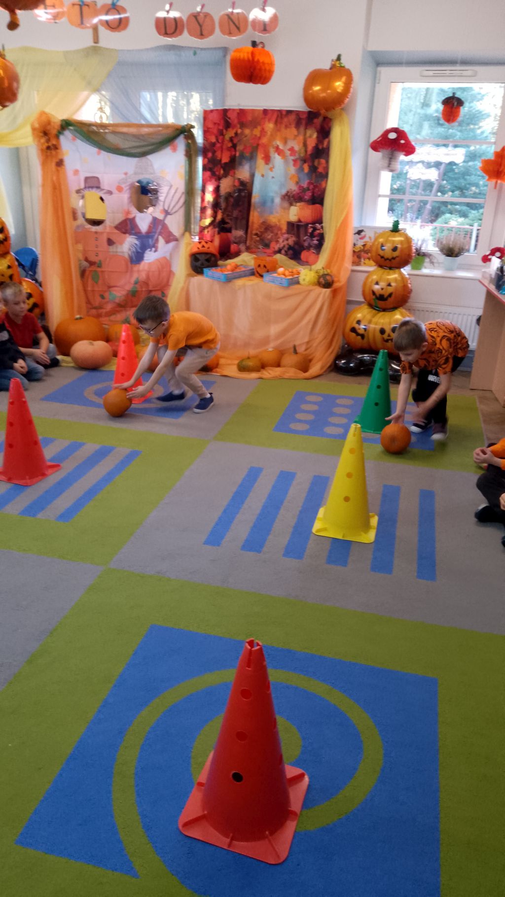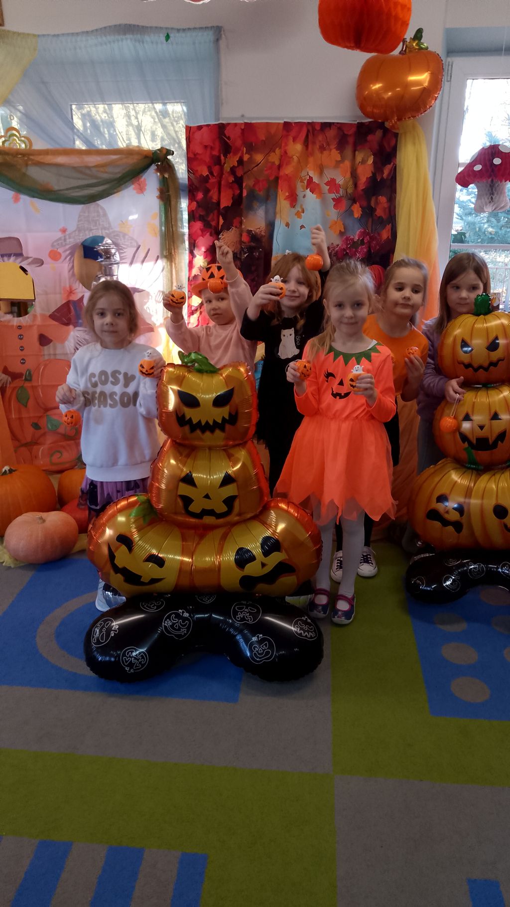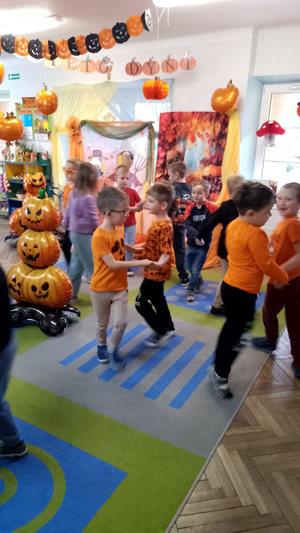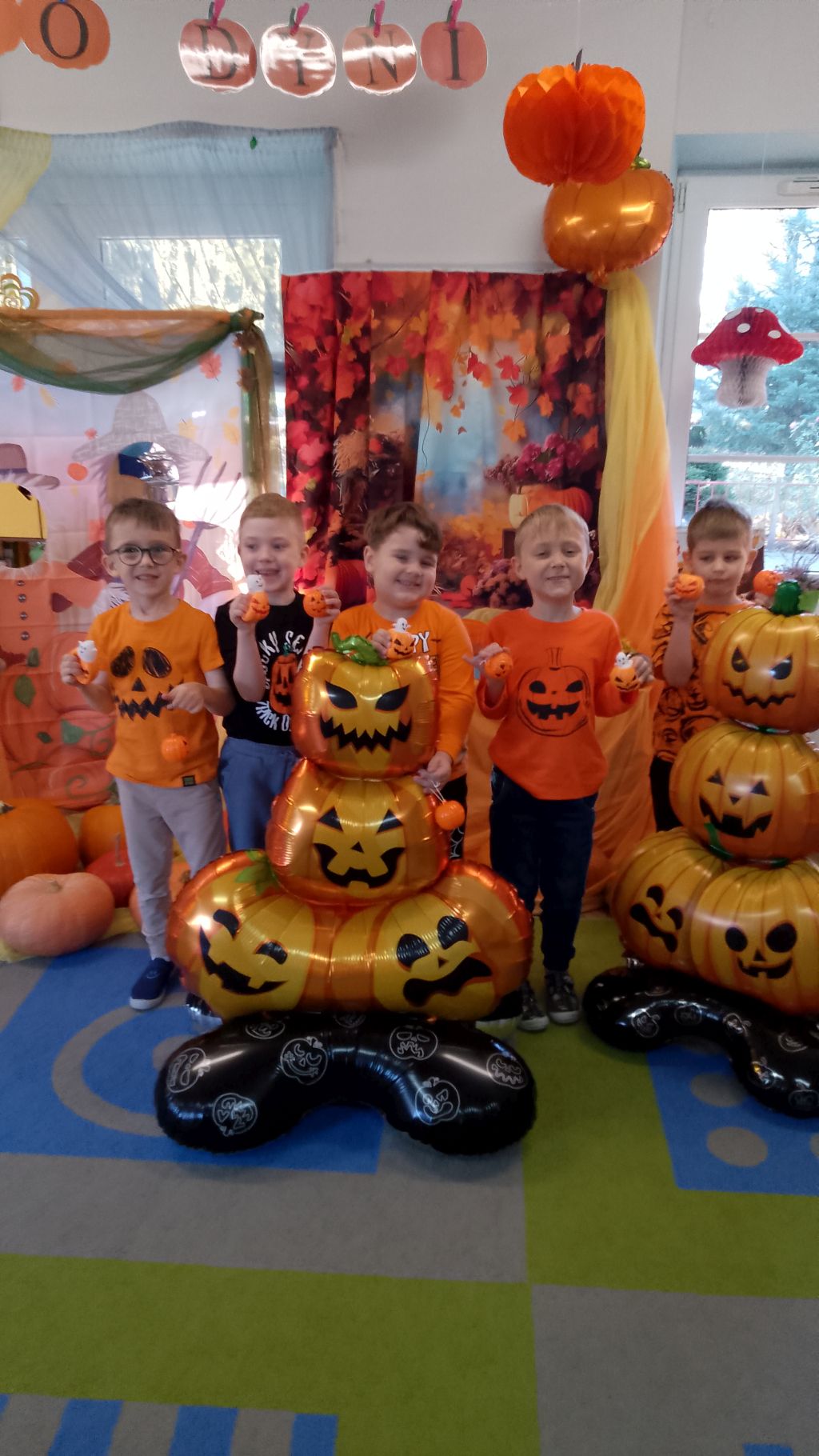 31 października "Słoneczka" obchodziły Święto Dyni. Tego dnia królowały dyniowe stroje, dekoracje dyniowe i oczywiście dynie w roli głównej. Dzień Dyni pozwolił nam poznać wielką różnorodność dyń i wzbogacił naszą wiedzę na ich temat. Dzieci uczestniczyły w licznych zabawach z udziałem dyni: slalom dyniowy, skoki przez dynię, dyniowe kręgle. Były również dyniowe zagadki i tańce. Wspólnie wydrążyliśmy nasze warzywo aby poznać wnętrze dyni oraz jej walory smakowe i zdrowotne. Tego dnia odbyły się również warsztaty florystyczne nt. "Dyniowe bukiety", podczas których dzieci przygotowywały jesienne dekoracje z dyni i kwiatów. Ten dzień był pełen wrażeń i radości.