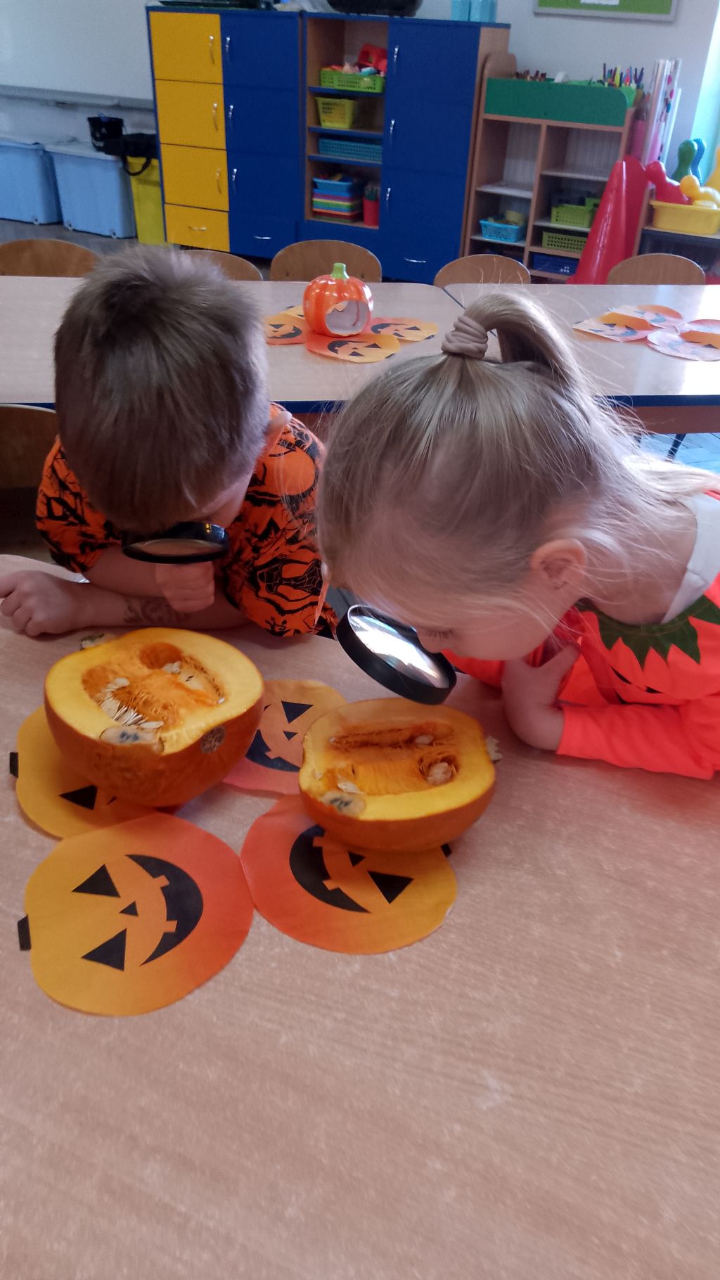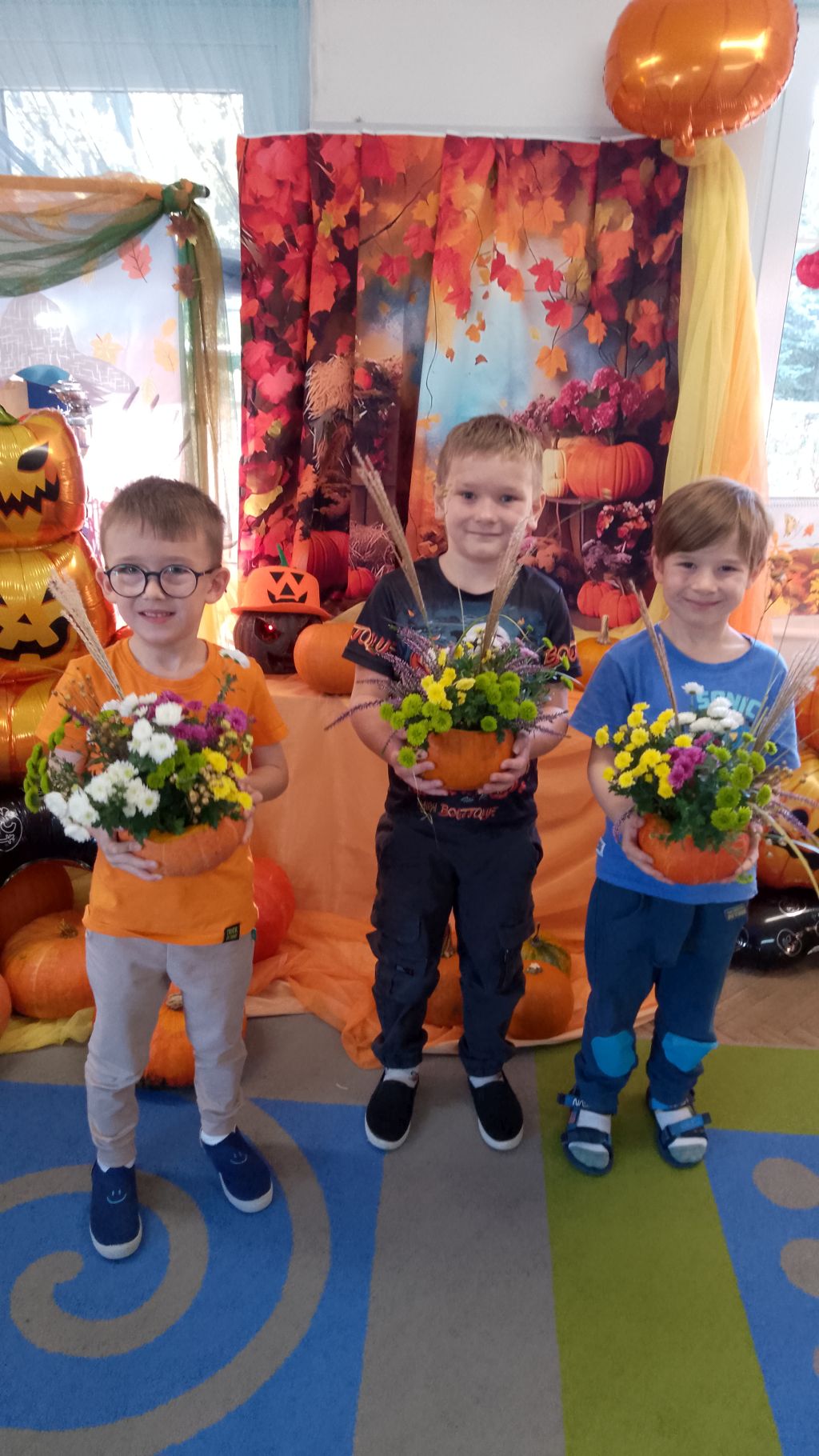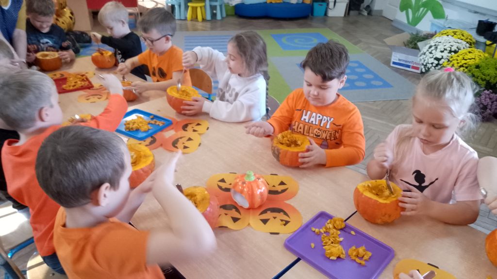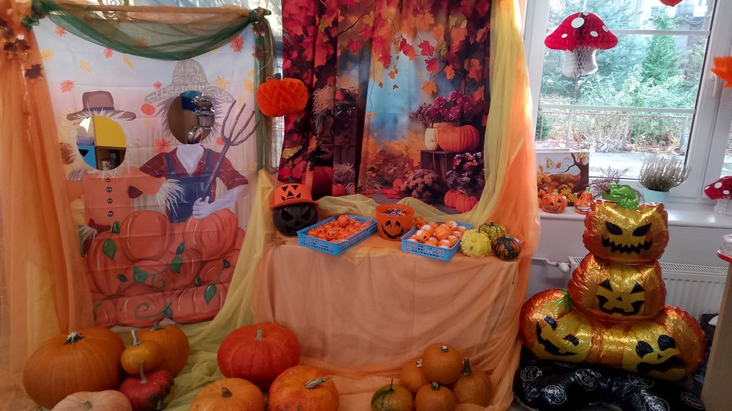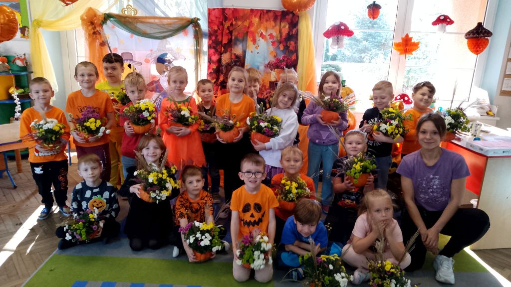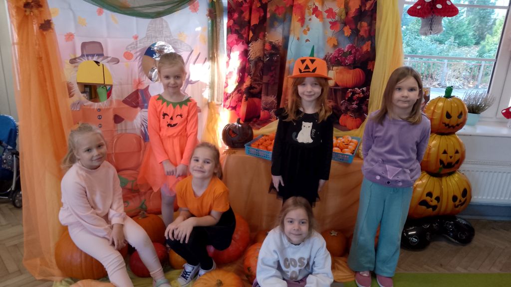 31 października "Słoneczka" obchodziły Święto Dyni. Tego dnia królowały dyniowe stroje, dekoracje dyniowe i oczywiście dynie w roli głównej. Dzień Dyni pozwolił nam poznać wielką różnorodność dyń i wzbogacił naszą wiedzę na ich temat. Dzieci uczestniczyły w licznych zabawach z udziałem dyni: slalom dyniowy, skoki przez dynię, dyniowe kręgle. Były również dyniowe zagadki i tańce. Wspólnie wydrążyliśmy nasze warzywo aby poznać wnętrze dyni oraz jej walory smakowe i zdrowotne. Tego dnia odbyły się również warsztaty florystyczne nt. "Dyniowe bukiety", podczas których dzieci przygotowywały jesienne dekoracje z dyni i kwiatów. Ten dzień był pełen wrażeń i radości.