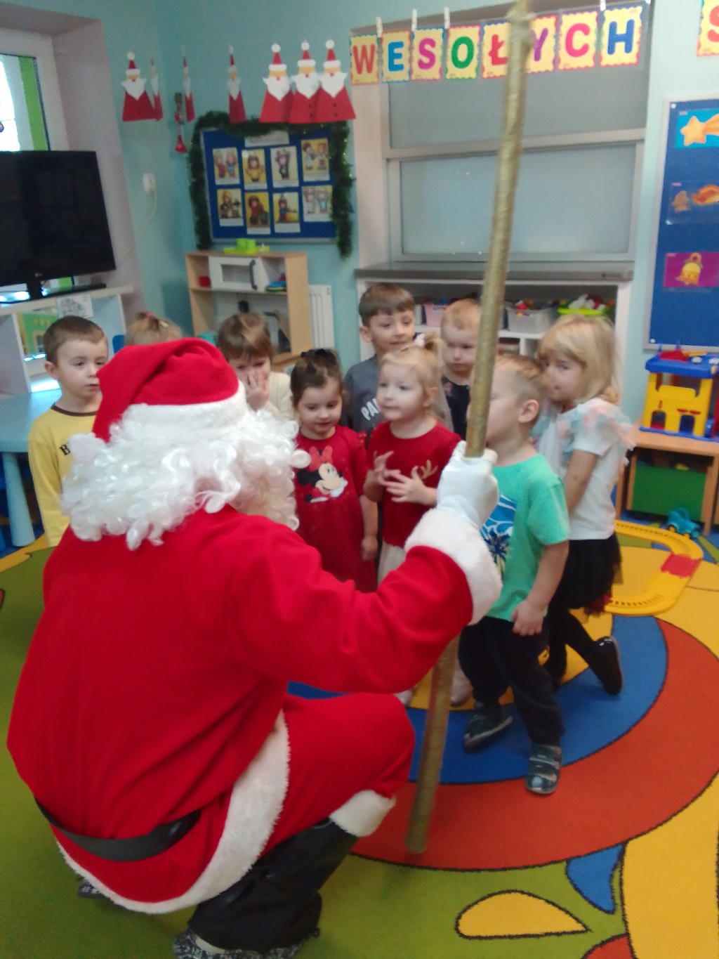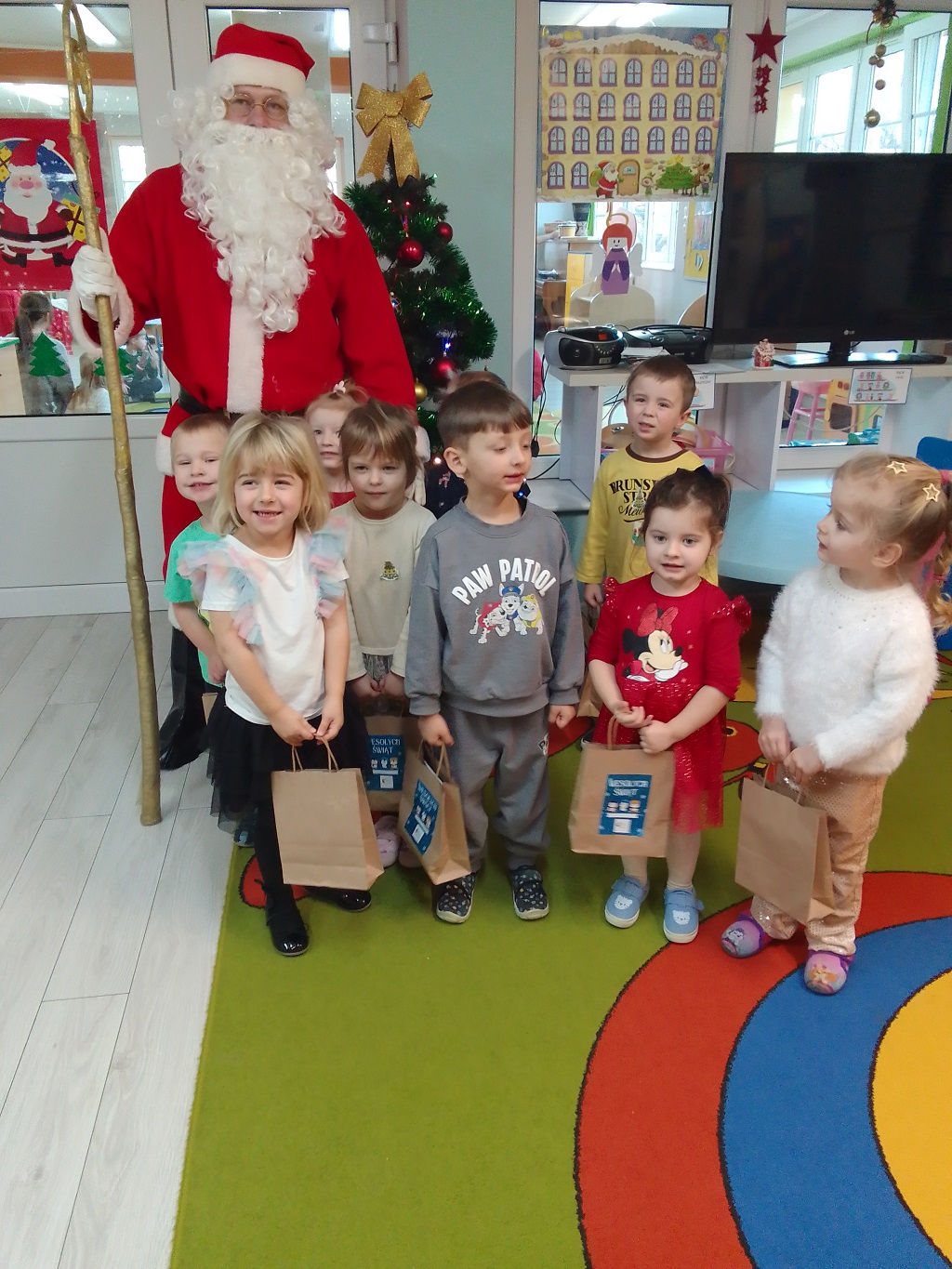 19 grudnia nasze przedszkole odwiedził długo oczekiwany gość - Święty Mikołaj oraz przedstawiciele Szkoły Policealnej Awangarda. Na jego wizytę czekały wszystkie dzieci. Dzieci powitały Mikołaja piosenką "Mikołaj". Zaproszony Gość obdarował wszystkie dzieci prezentami, a potem wykonał z nimi pamiątkowe zdjęcia.