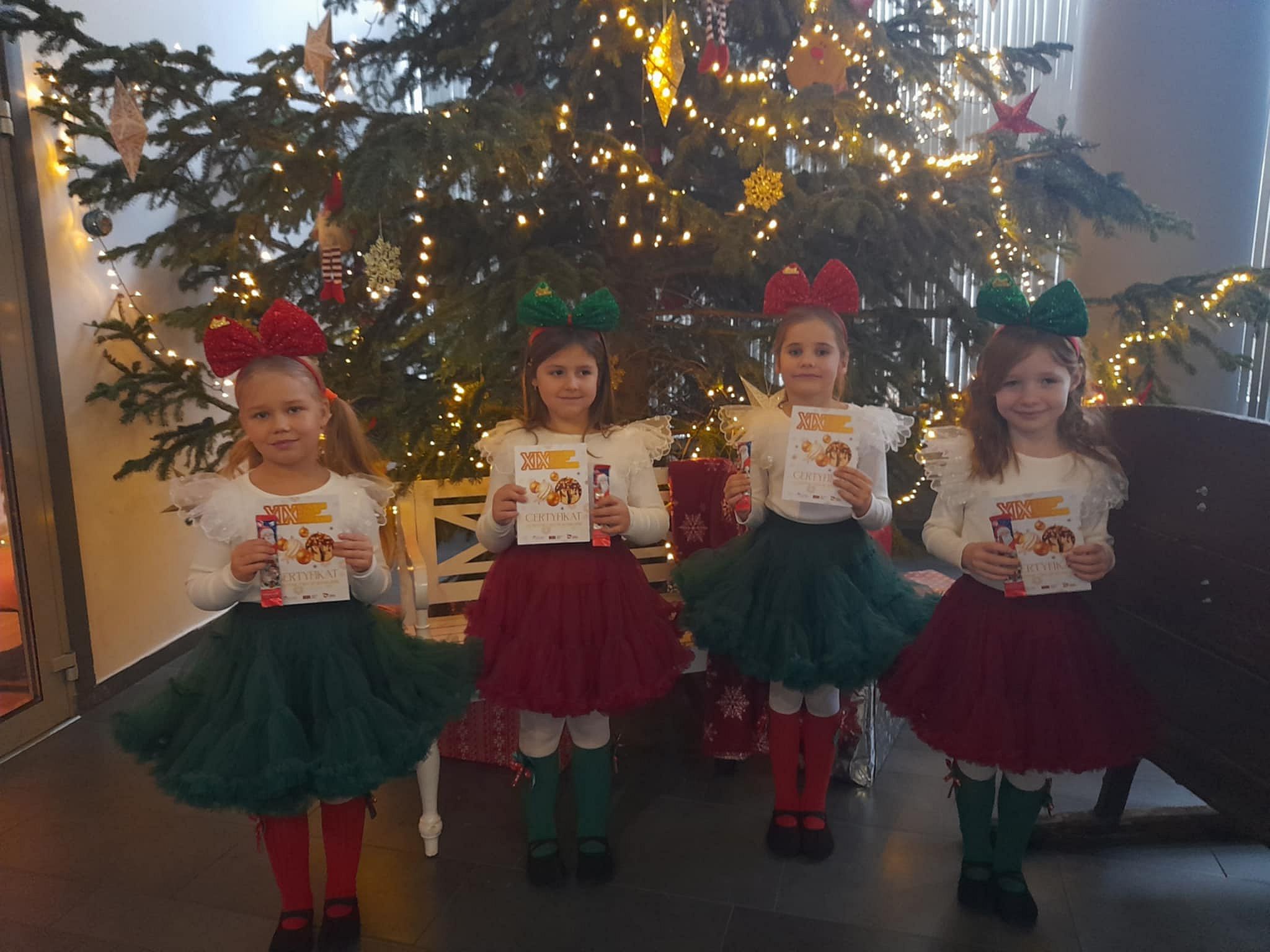 18.12.2025 r. dzieci z grupy IV wzięły udział w XIX Kutnowskim Konkursie Kolęd i Pastorałek 2025. Na scenie Kutnowskiego Domu Kultury zaprezentował się zespół "Słoneczka" w składzie Emma, Marysia, Tosia i Nadia. Dziewczynki zaśpiewały piosenkę pt. "Najpiękniejsze dni w roku". Za udział w konkursie otrzymały certyfikaty i świąteczne batoniki.