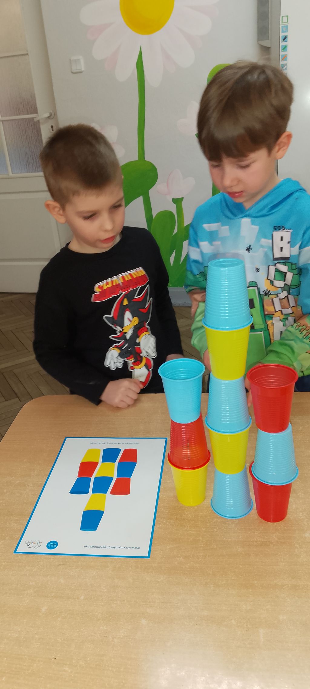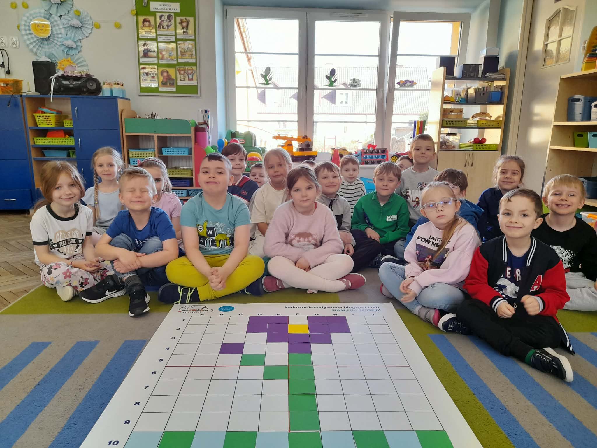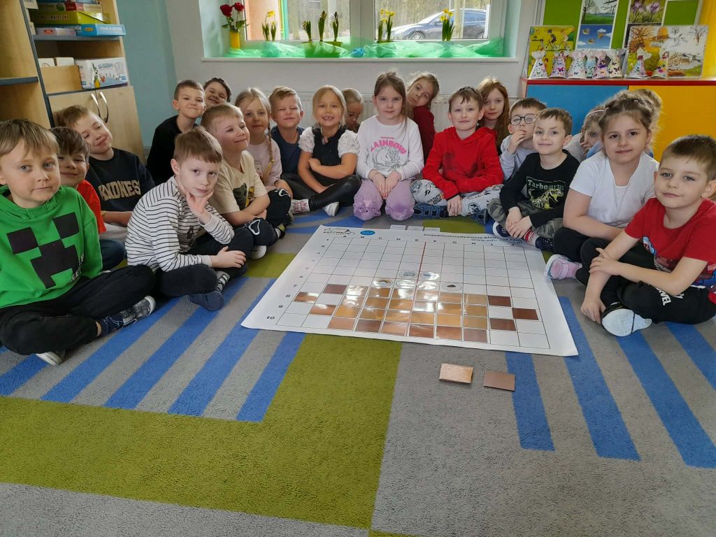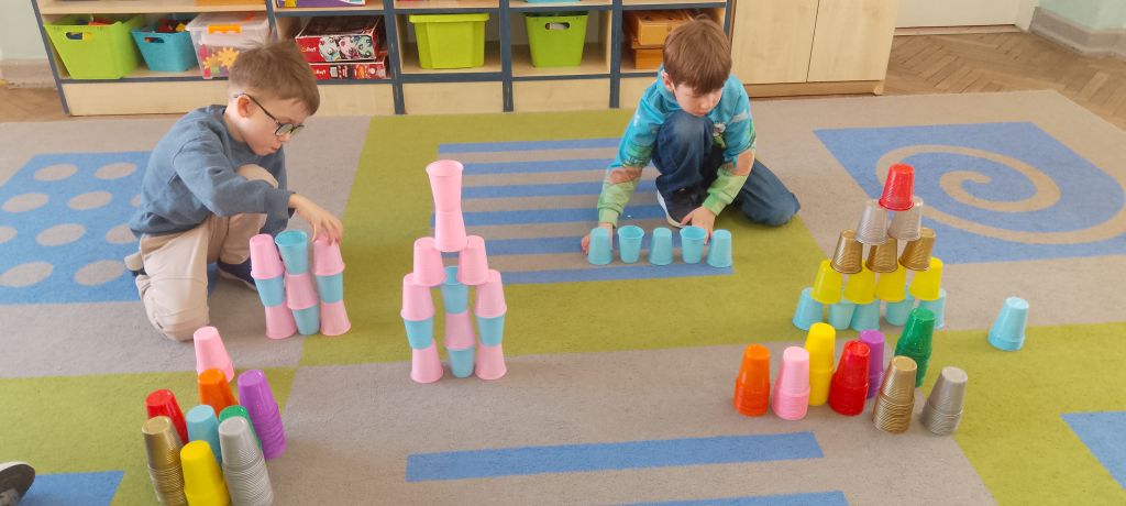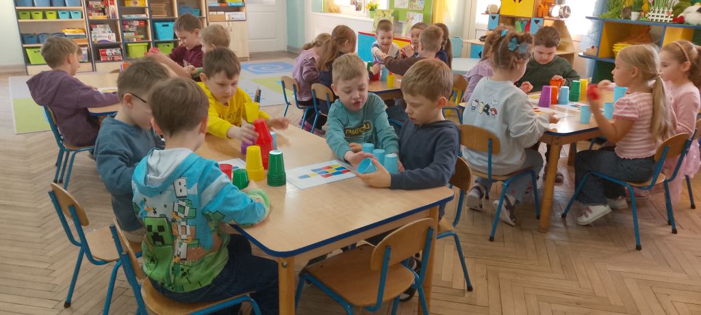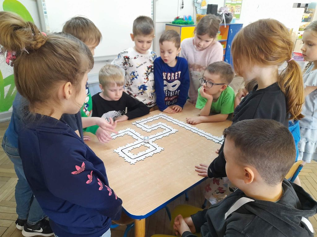 W marcu 2026 r. dzieci z grupy "Słoneczek" brały udział w zabawach z elementem kodowania w ramach programu "Uczymy dzieci programować. Dzieci bawiły się z wykorzystaniem kolorowych kubków - ustawiały wieże na podstawie podanego kodu, liczyły elementy. Chętne "Słoneczka" określały wynik dodawania i odejmowania. Realizowały również własne pomysły ustawiając dowolne konstrukcje. Ponadto uczestniczyły w zajęciach z wykorzystaniem maty do kodowania i tablicy multimedialnej ("W marcu jak w garncu”, "Prezenty od Wiosny"), korzystały z cyklu "Filmy, gry i zabawy multimedialne dla przedszkolaków" (Wyd. PWN). Dużo radości dostarczyły dzieciom zabawy z Ozobotami - robotami do kodowania. Podczas organizowanych zabaw dzieci rozwijały umiejętności matematyczne, planowania, odczytywania kodów, logiczne myślenie, percepcję wzrokową.