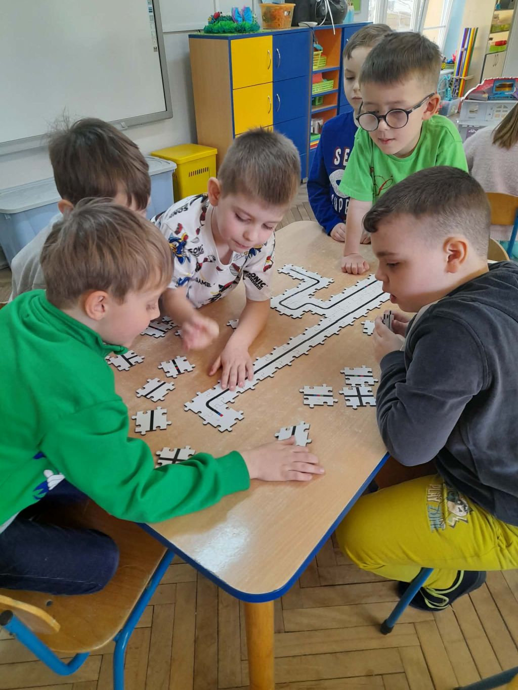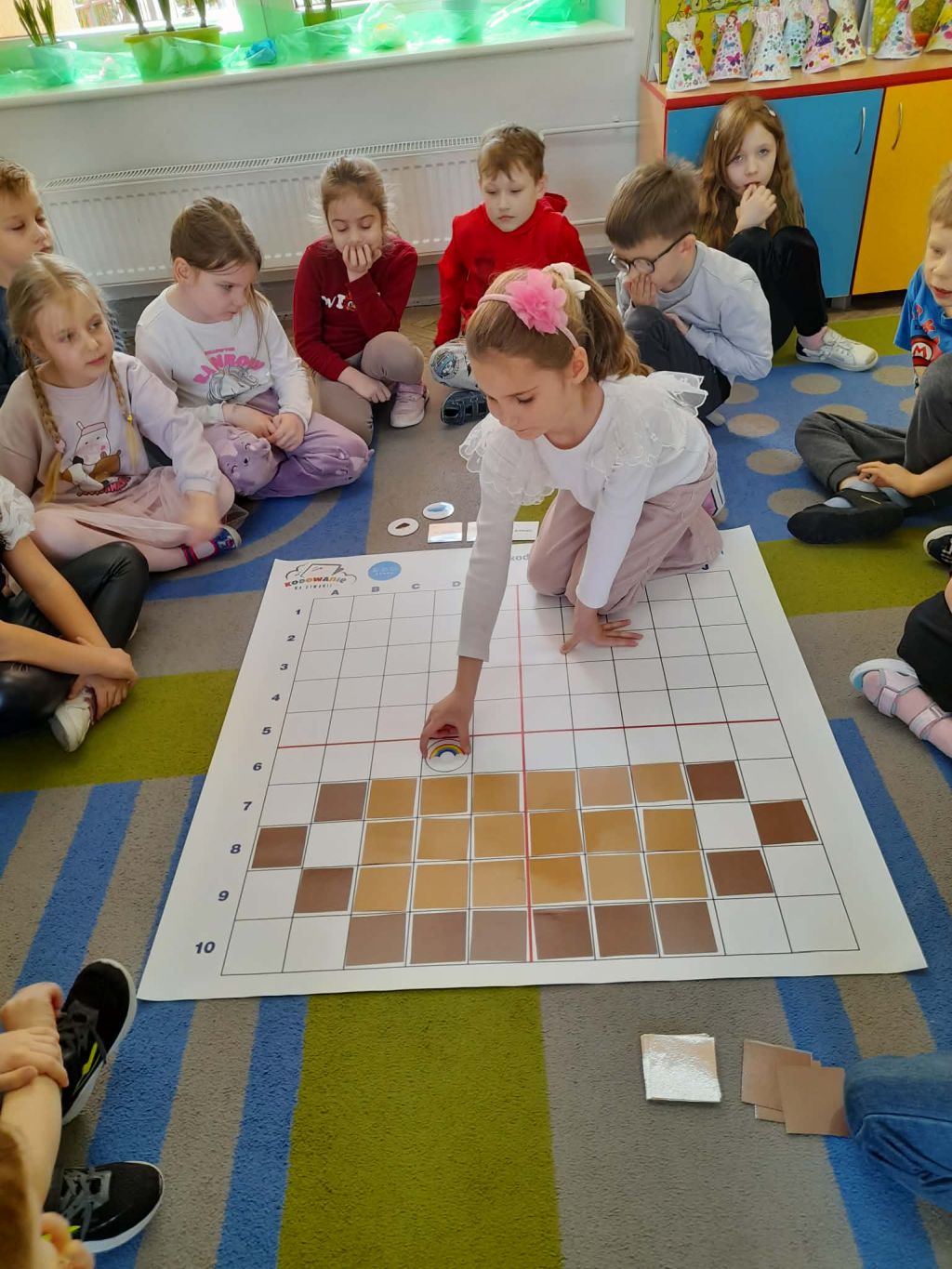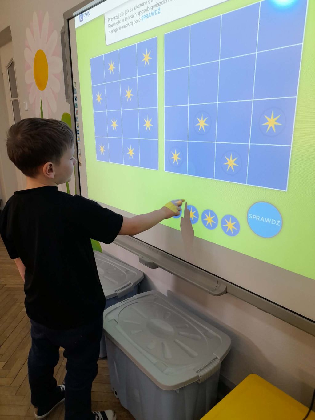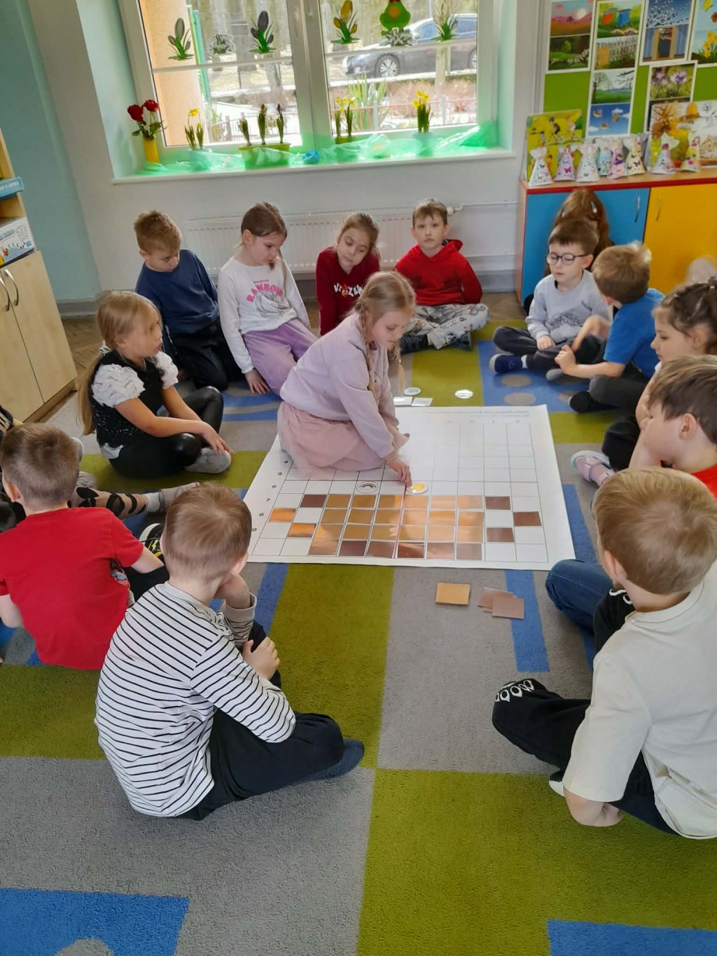 W marcu 2026 r. dzieci z grupy "Słoneczek" brały udział w zabawach z elementem kodowania w ramach programu "Uczymy dzieci programować. Dzieci bawiły się z wykorzystaniem kolorowych kubków - ustawiały wieże na podstawie podanego kodu, liczyły elementy. Chętne "Słoneczka" określały wynik dodawania i odejmowania. Realizowały również własne pomysły ustawiając dowolne konstrukcje. Ponadto uczestniczyły w zajęciach z wykorzystaniem maty do kodowania i tablicy multimedialnej ("W marcu jak w garncu”, "Prezenty od Wiosny"), korzystały z cyklu "Filmy, gry i zabawy multimedialne dla przedszkolaków" (Wyd. PWN). Dużo radości dostarczyły dzieciom zabawy z Ozobotami - robotami do kodowania. Podczas organizowanych zabaw dzieci rozwijały umiejętności matematyczne, planowania, odczytywania kodów, logiczne myślenie, percepcję wzrokową.
