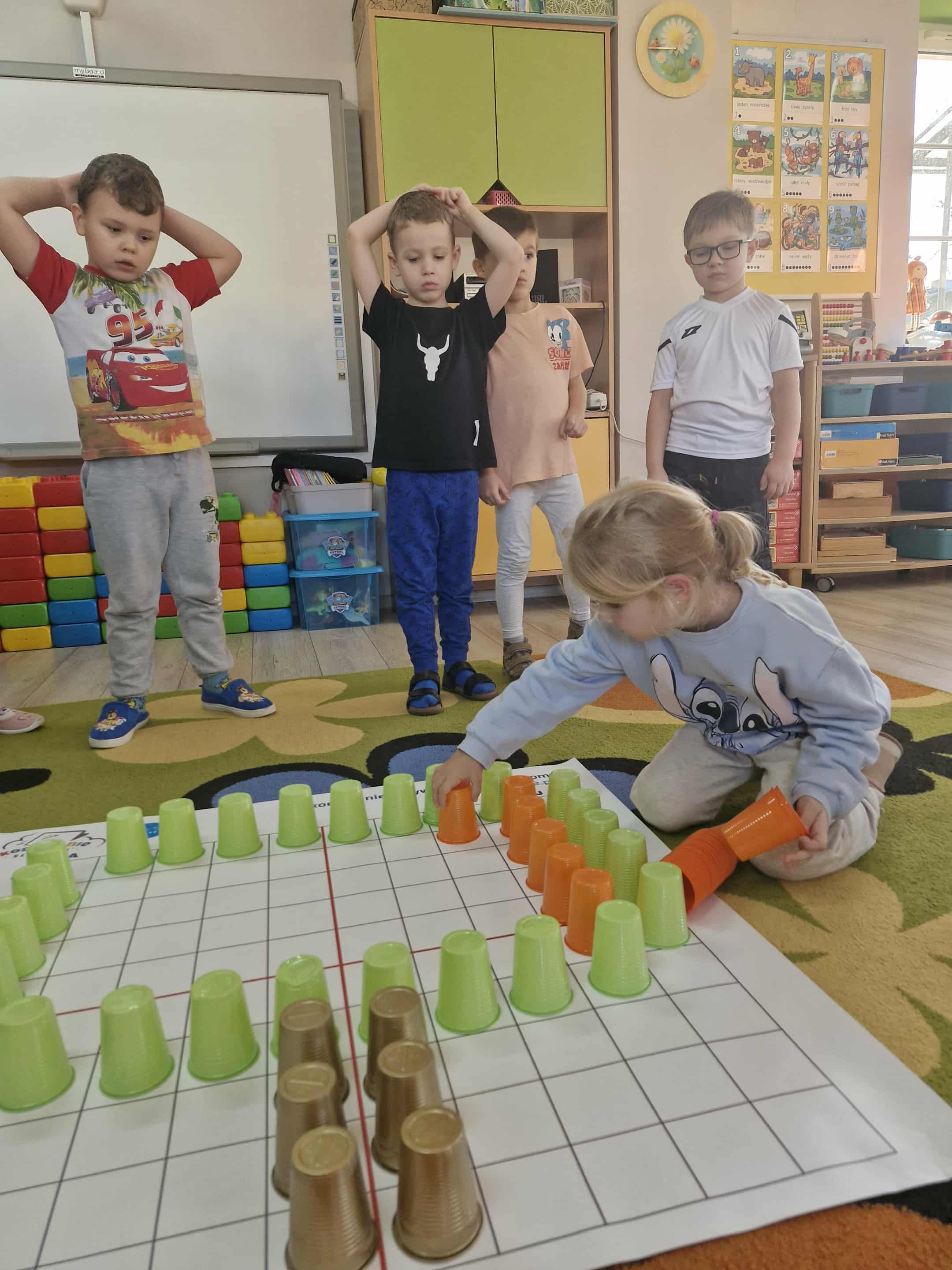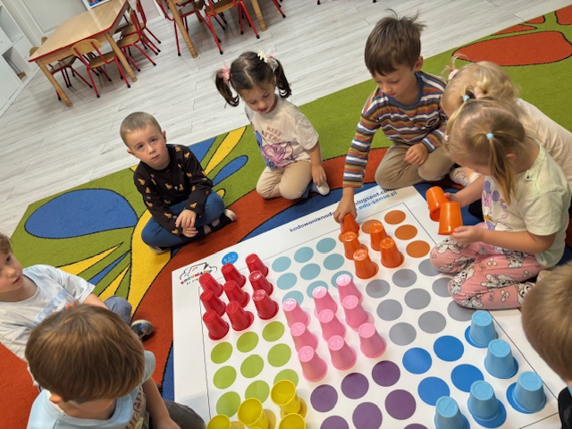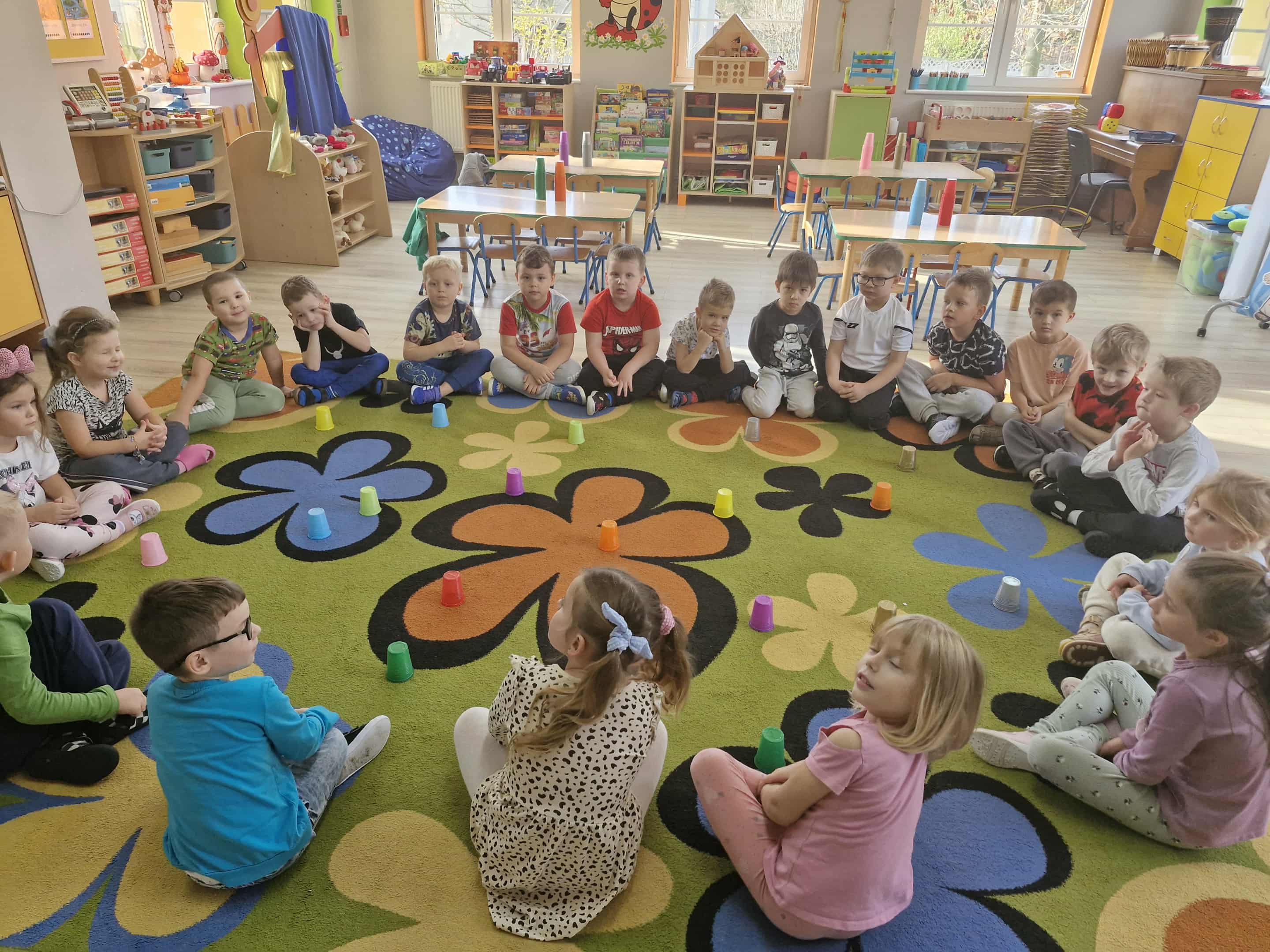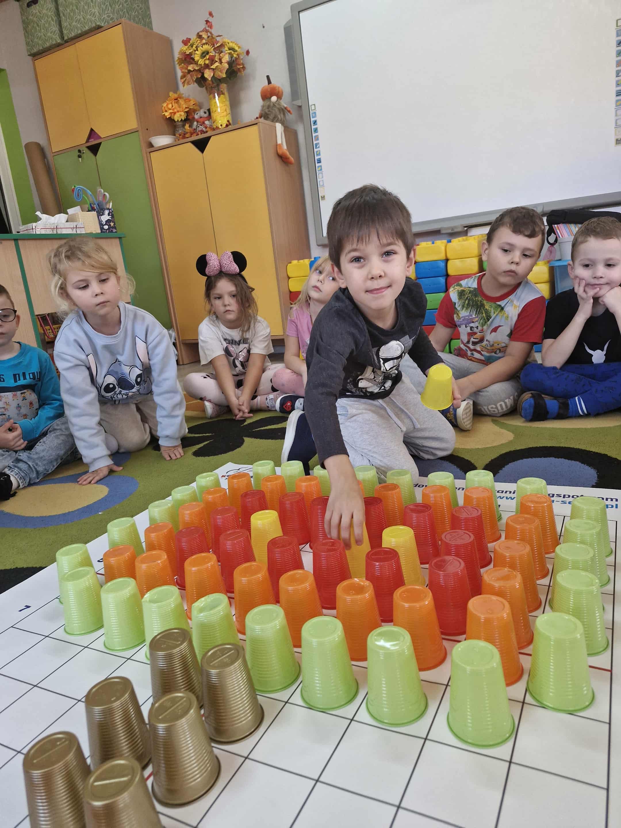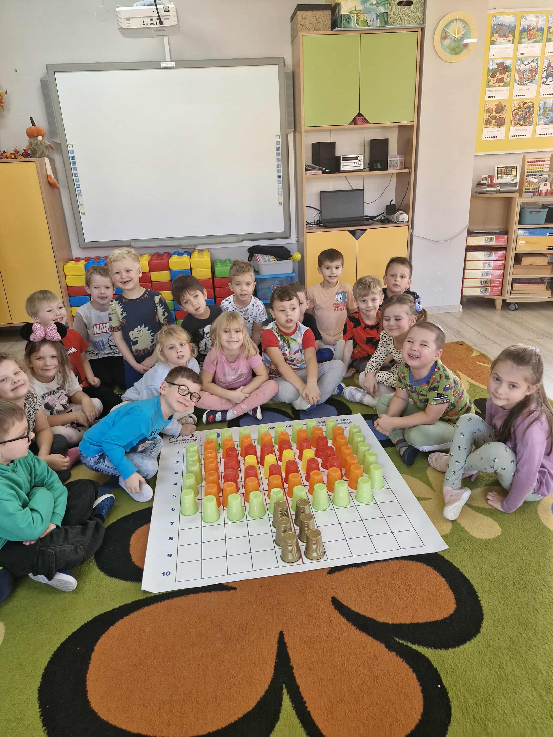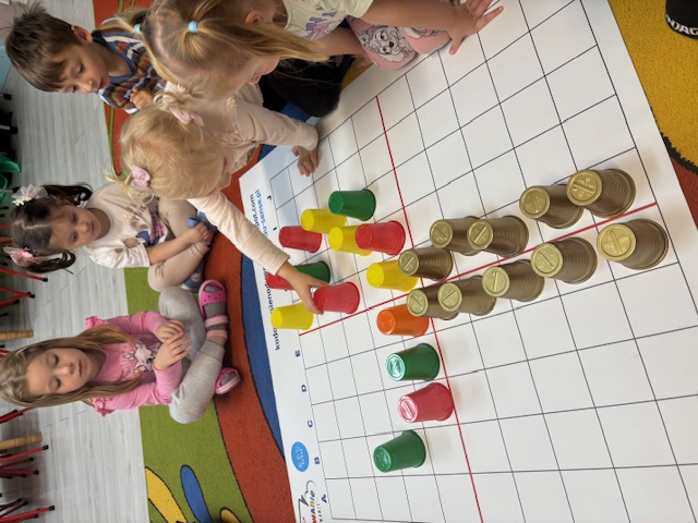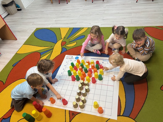 4 listopada dzieci z grupy "Biedronek", a 5 listopada dzieci z grupy "Pszczółek" wzięły udział w zajęciach z wykorzystaniem maty do kodowania oraz kolorowych kubeczków zorganizowanych w ramach Kutnowskich Grantów Oświatowych "Sięgaj gdzie wzrok nie sięga" pod hasłem "Słyszę, liczę i koduję". Dzieci budowały wieże z kubeczków, wzięły udział w kubeczkowej zabawie ruchowej, odkodowywały obrazek z wykorzystaniem maty do kodowania oraz spróbowały swoich sił w zakodowaniu obrazków.